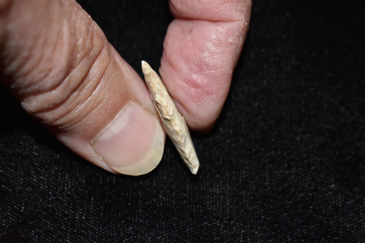 1" shallow notched bird point found in Illinois River Valley, Ex Tim Terwelp