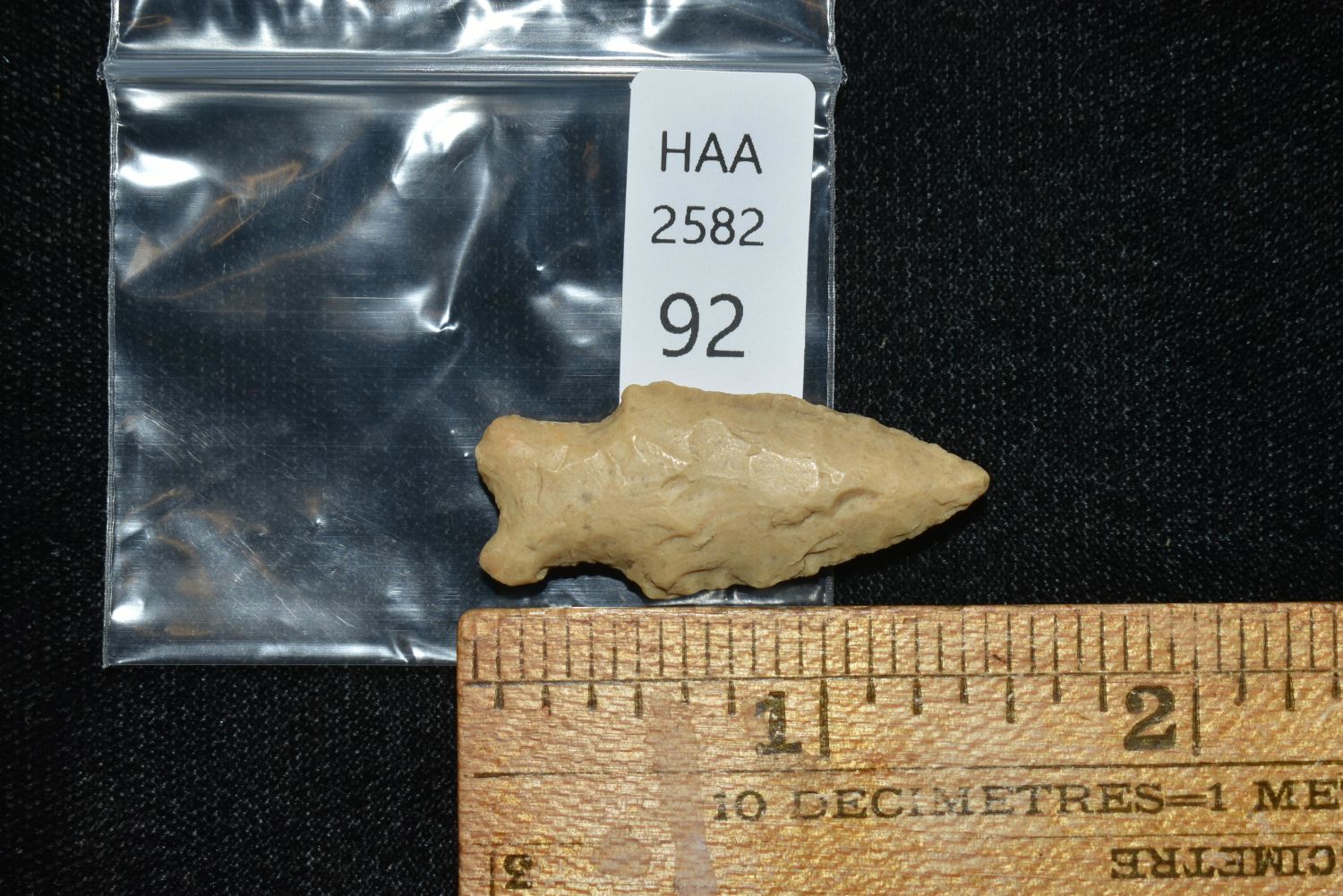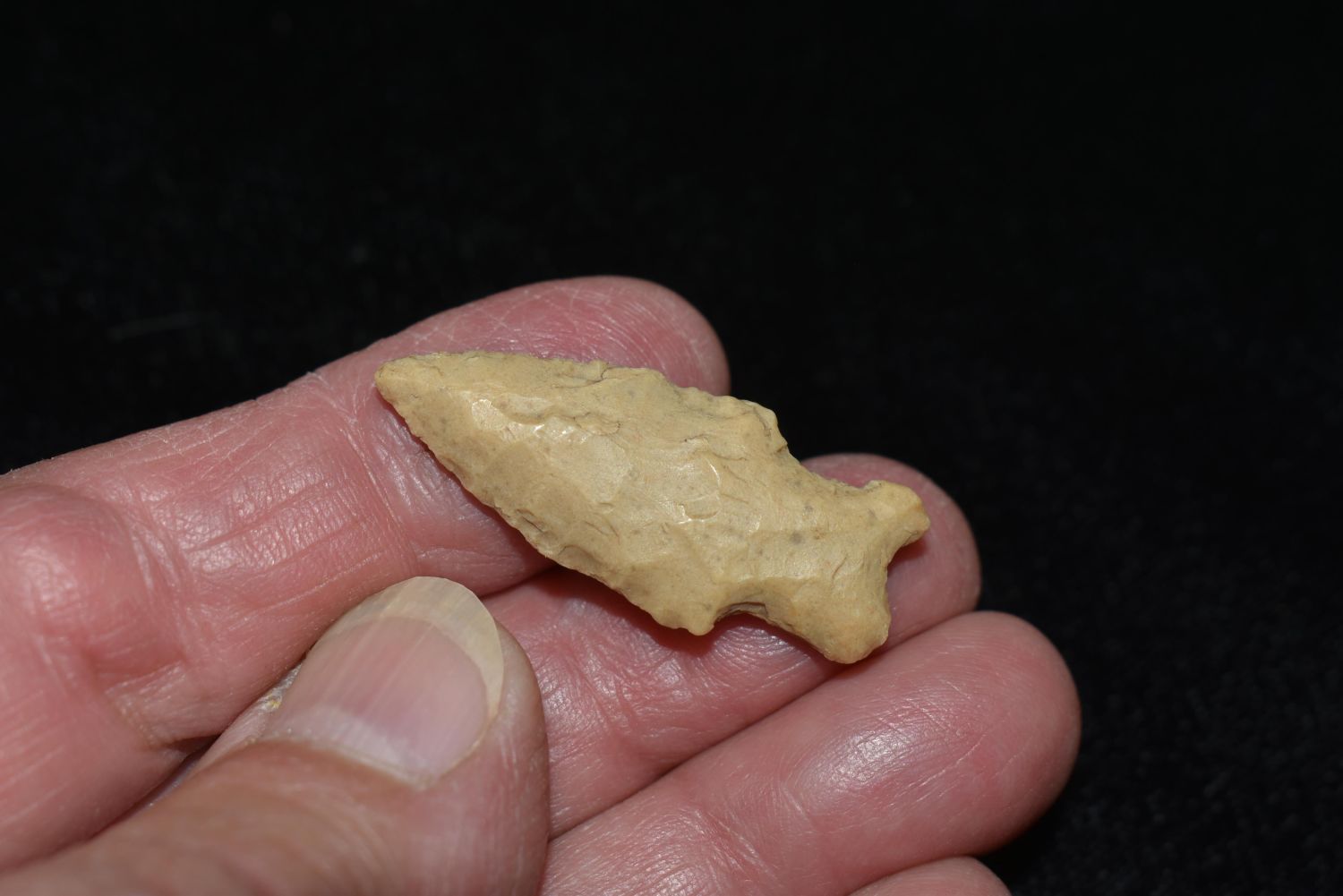 1 3/8" bird point, nice flaking, found in Illinois River Valley, ex Tim Terwelp