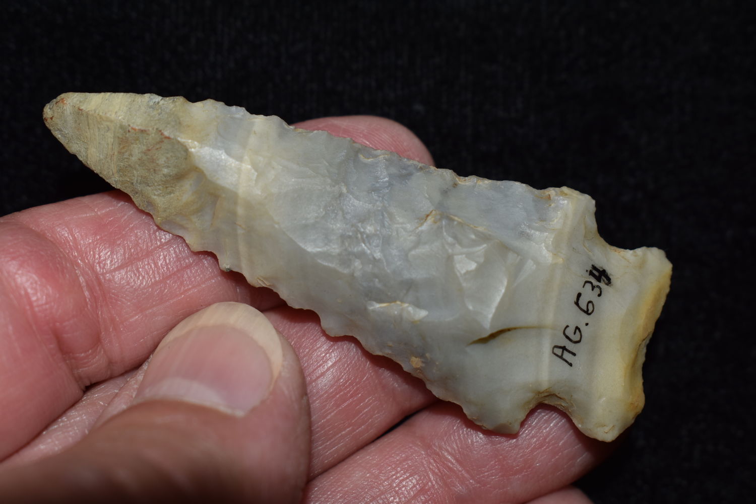2 1/2″ Serrated Kirk, found near Hopkinsville, Kentucky, Pictured on Pg. 324 – The Art Gerber Story, Minor Restoration to the tip, Authentic Native American Artifact