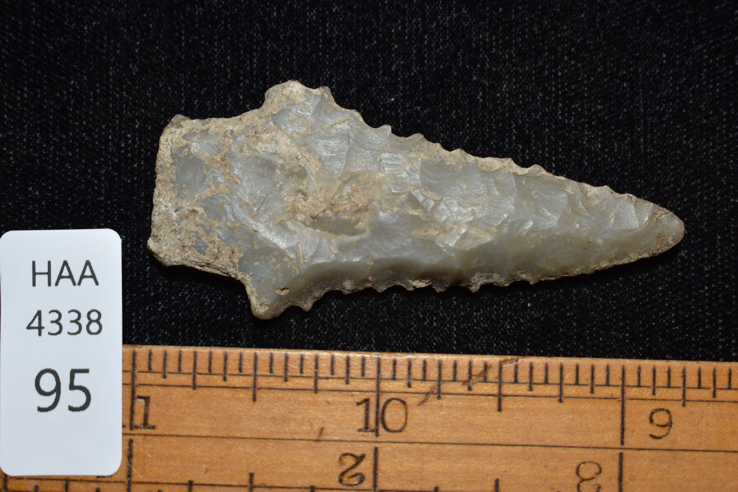 2 1/4″ Serrated Kirk, found near Hopkinsville, Kentucky, Pictured on Pg. 324 – The Art Gerber Story, Authentic Native American Artifact