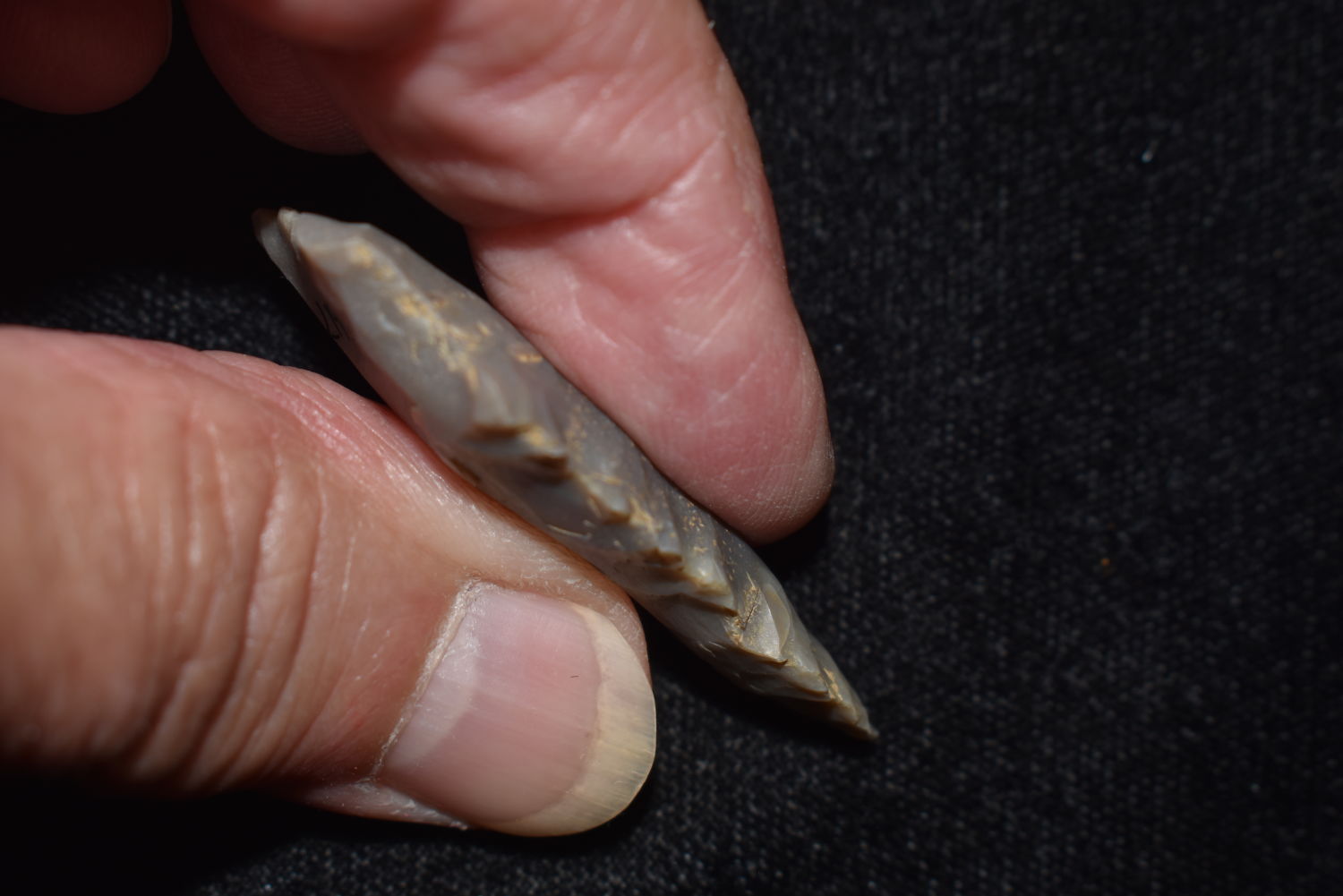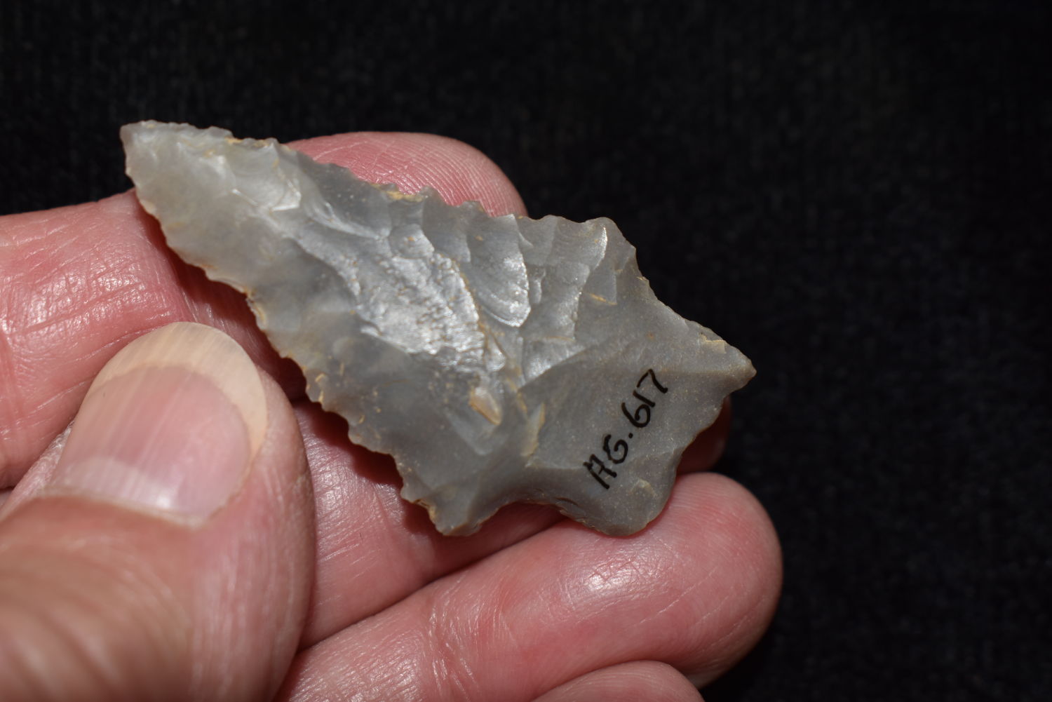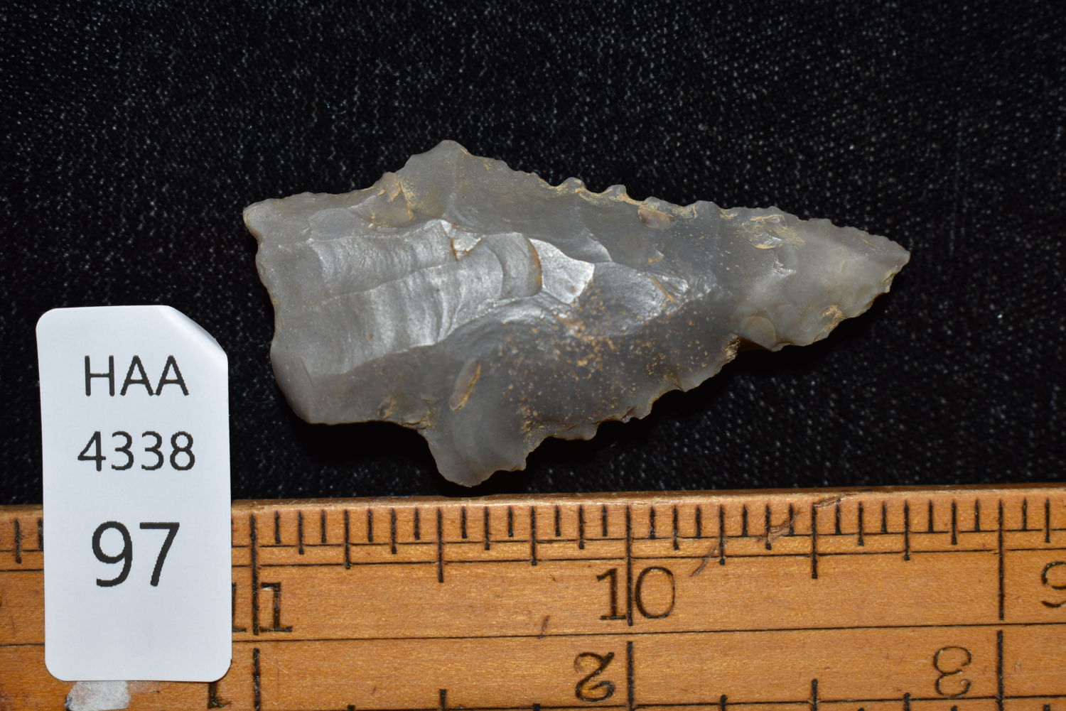 1 7/8″ Serrated Kirk, found near Hopkinsville, Kentucky, Pictured on Pg. 324 – The Art Gerber Story, Authentic Native American Artifact