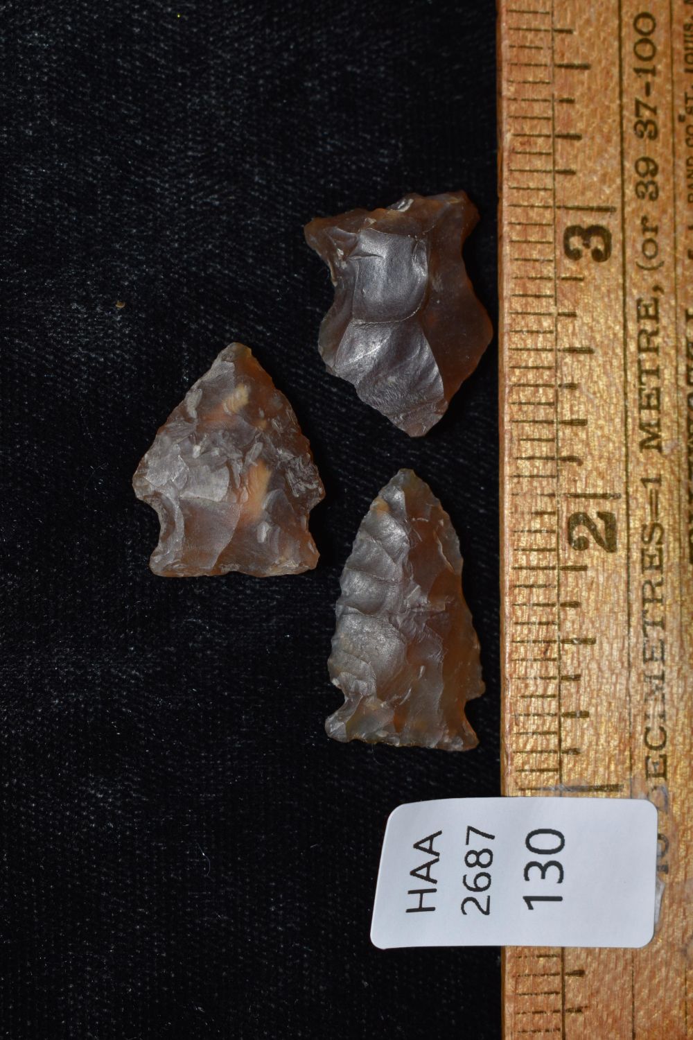 3 Knife River Bird Points Walsh County North Dakota Ex Norm Machart Largest is 1"