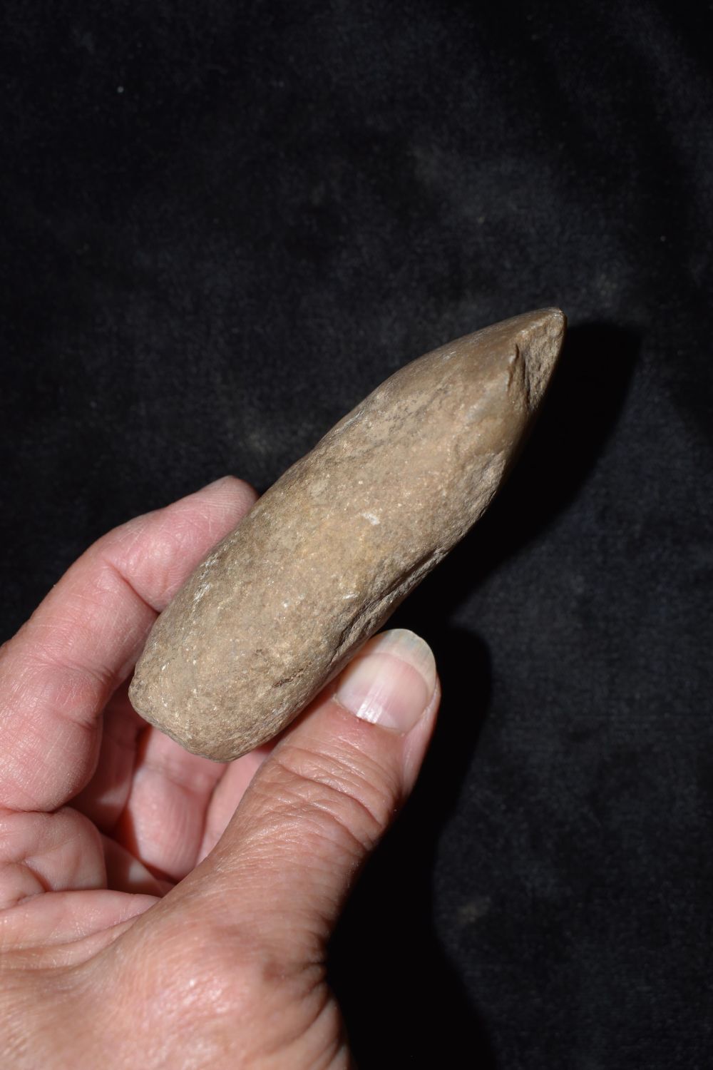 3 5/8" Flared bit celt made of quartzite Will Co Illinois
