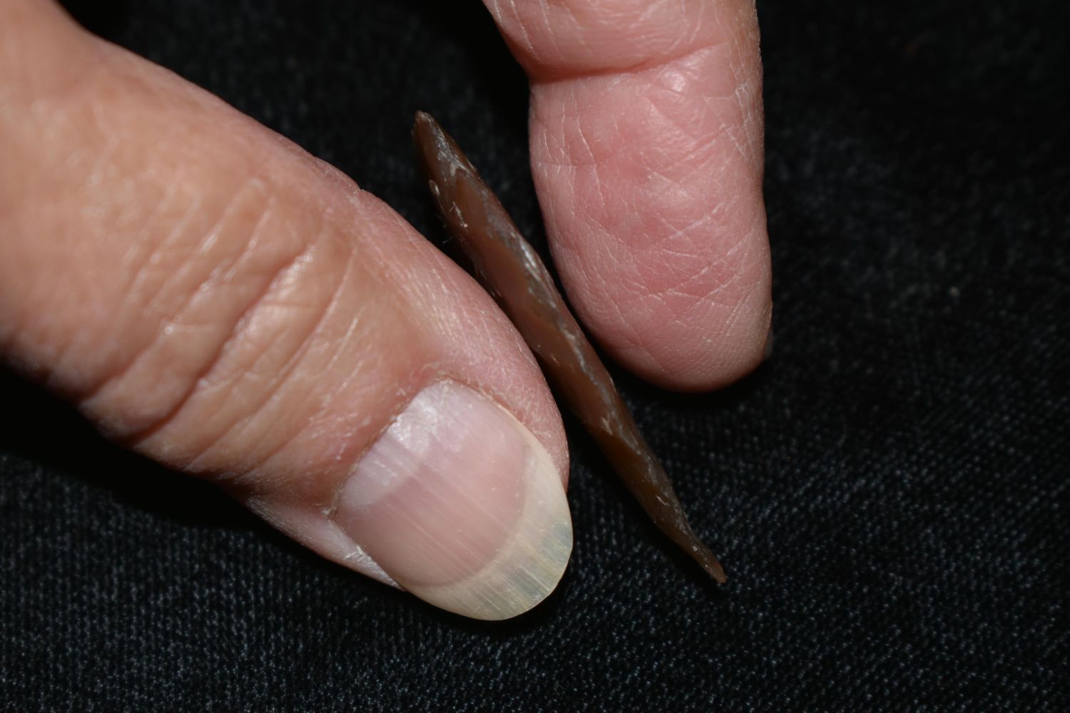 1 1/2" Bird Point Super Thin made of Knife River Flint Found By Fred Kronenburg in Makoti North Dakota (Ward County)