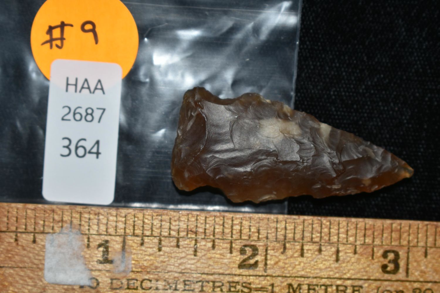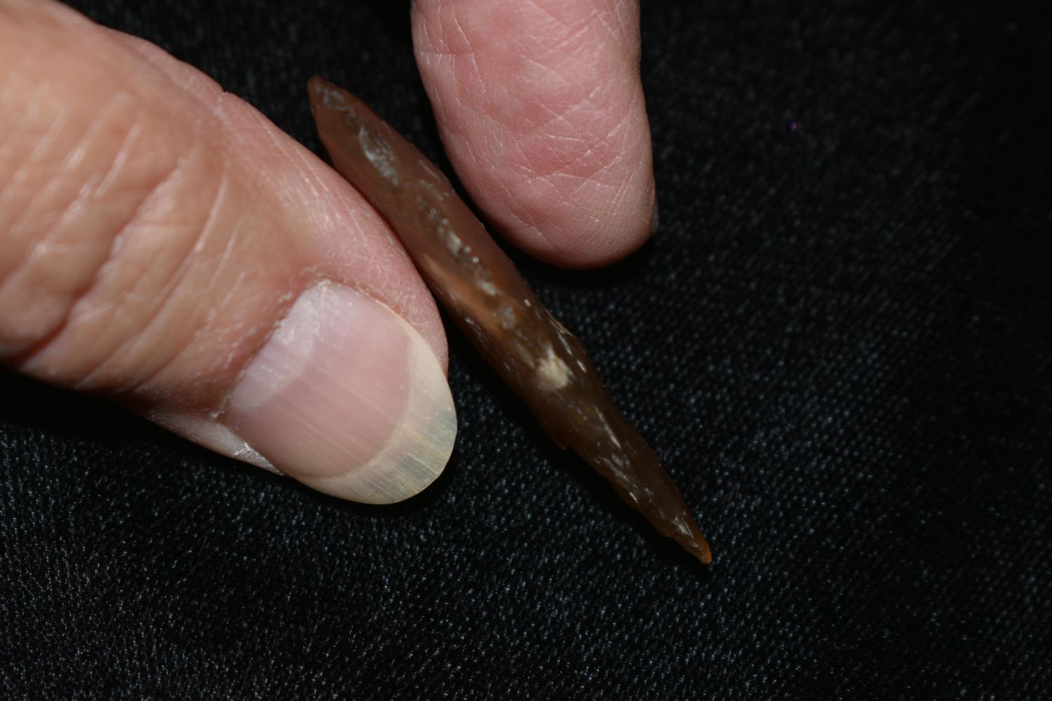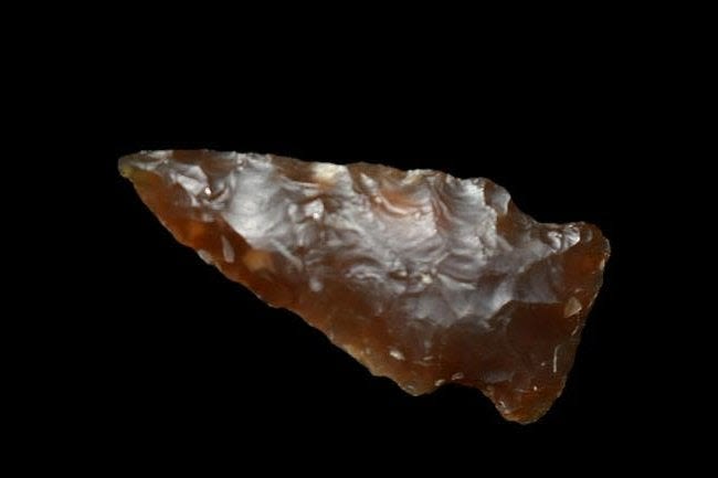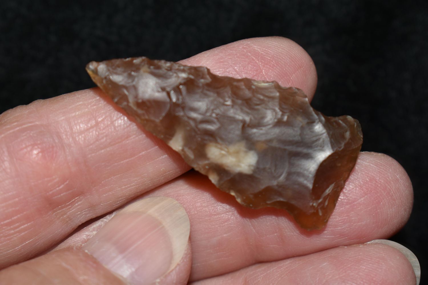 1 5/8" Side Notch made of Knife River Flint Found By Fred Kronenburg in Makoti North Dakota (Ward County)