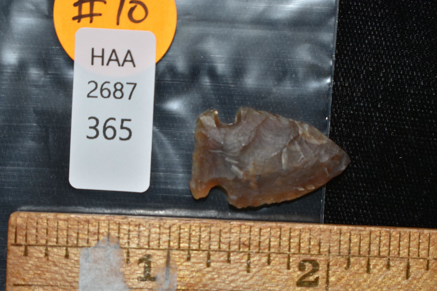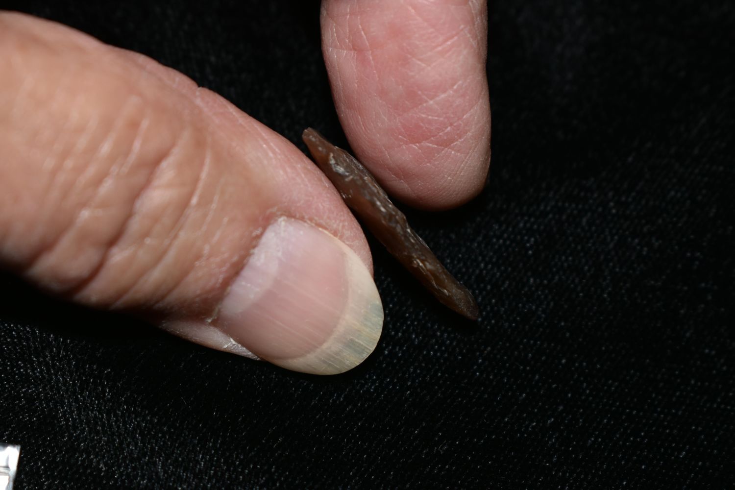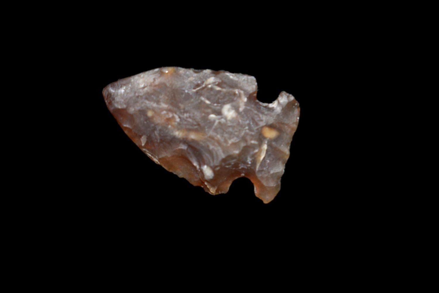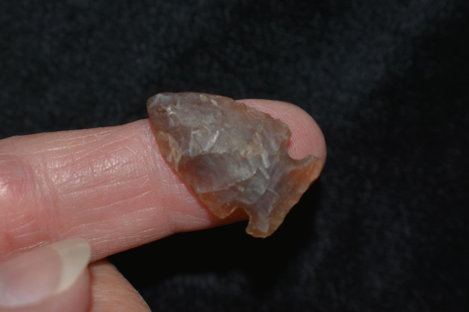 1" Side Notch Bird Point made of Knife River Flint Found By Fred Kronenburg in Makoti North Dakota (Ward County)