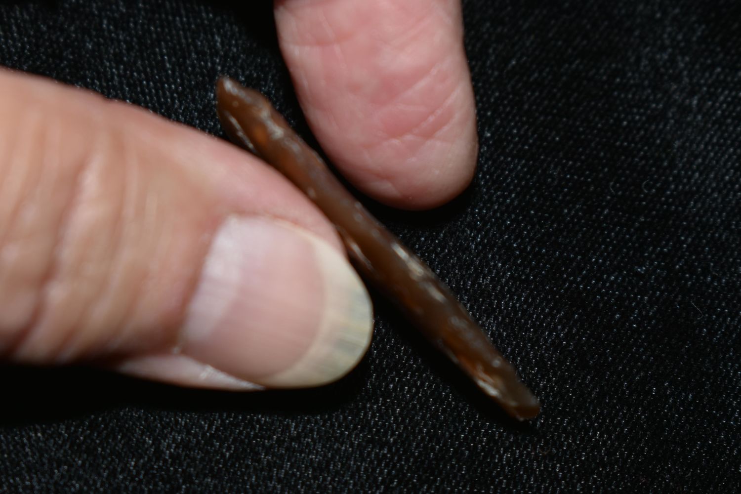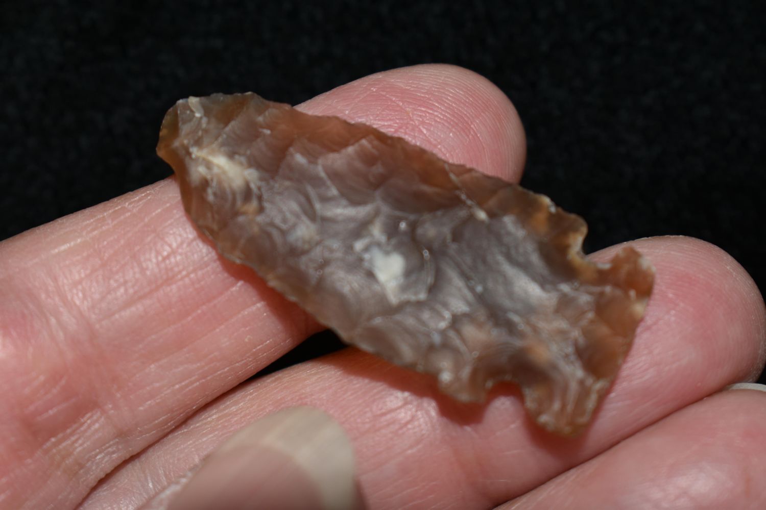 1 1/2" Side Notch Bird Point made of Knife River Flint Found By Fred Kronenburg in Makoti North Dakota (Ward County)