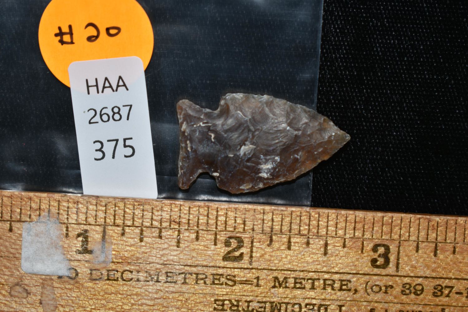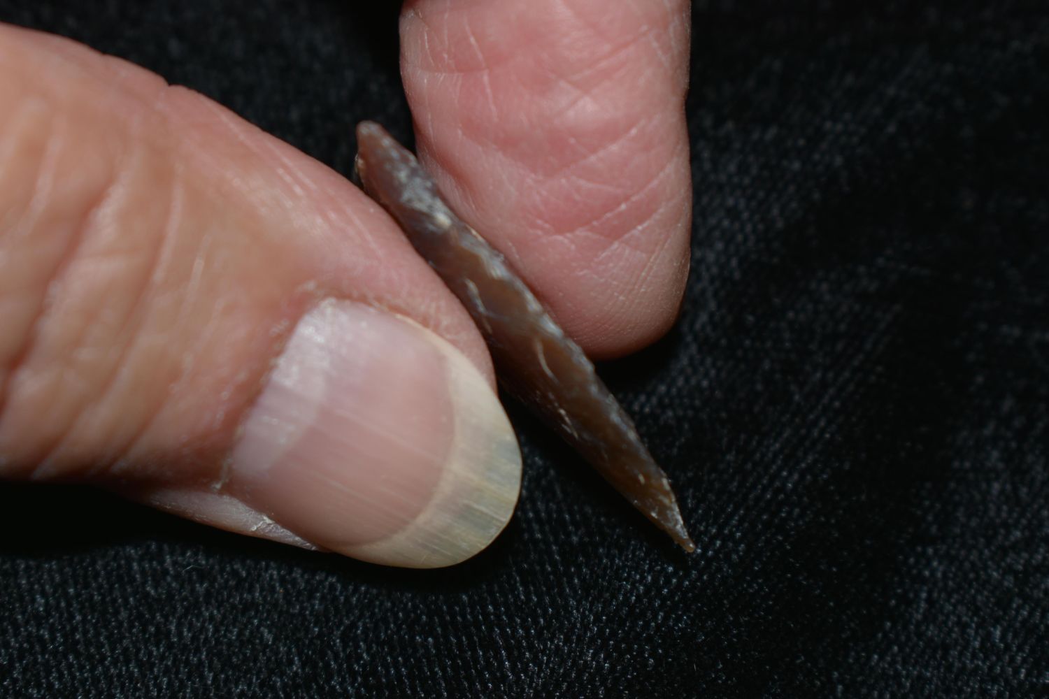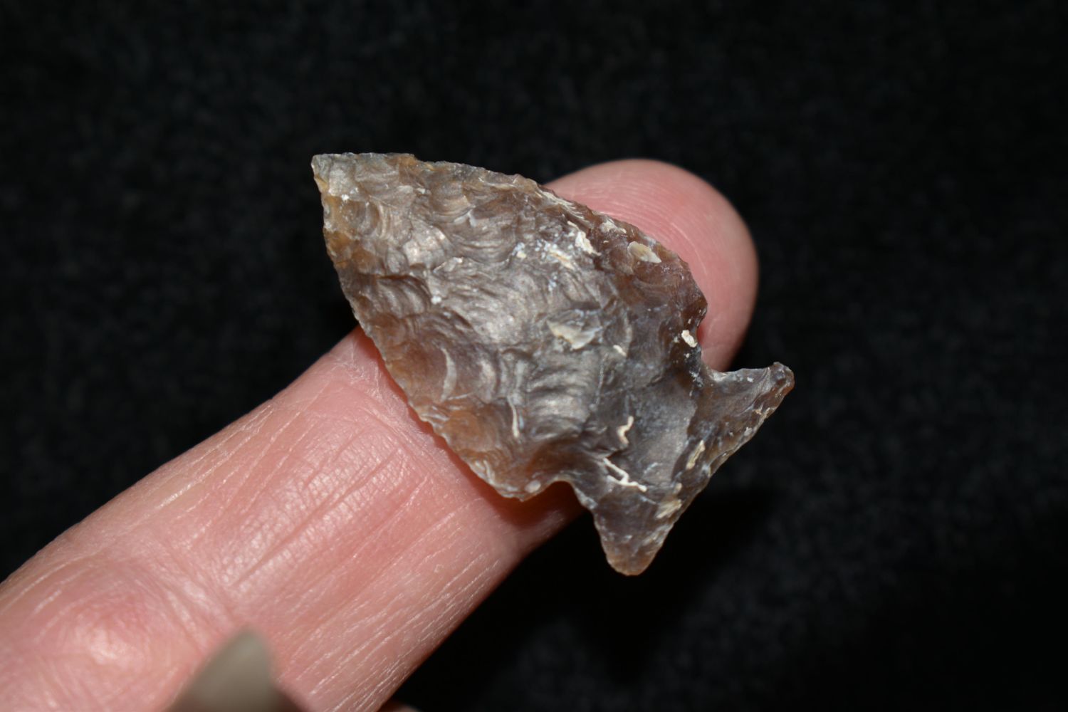 1 1/8" Bird Point made of Knife River Flint Found By Fred Kronenburg in Makoti North Dakota (Ward County)