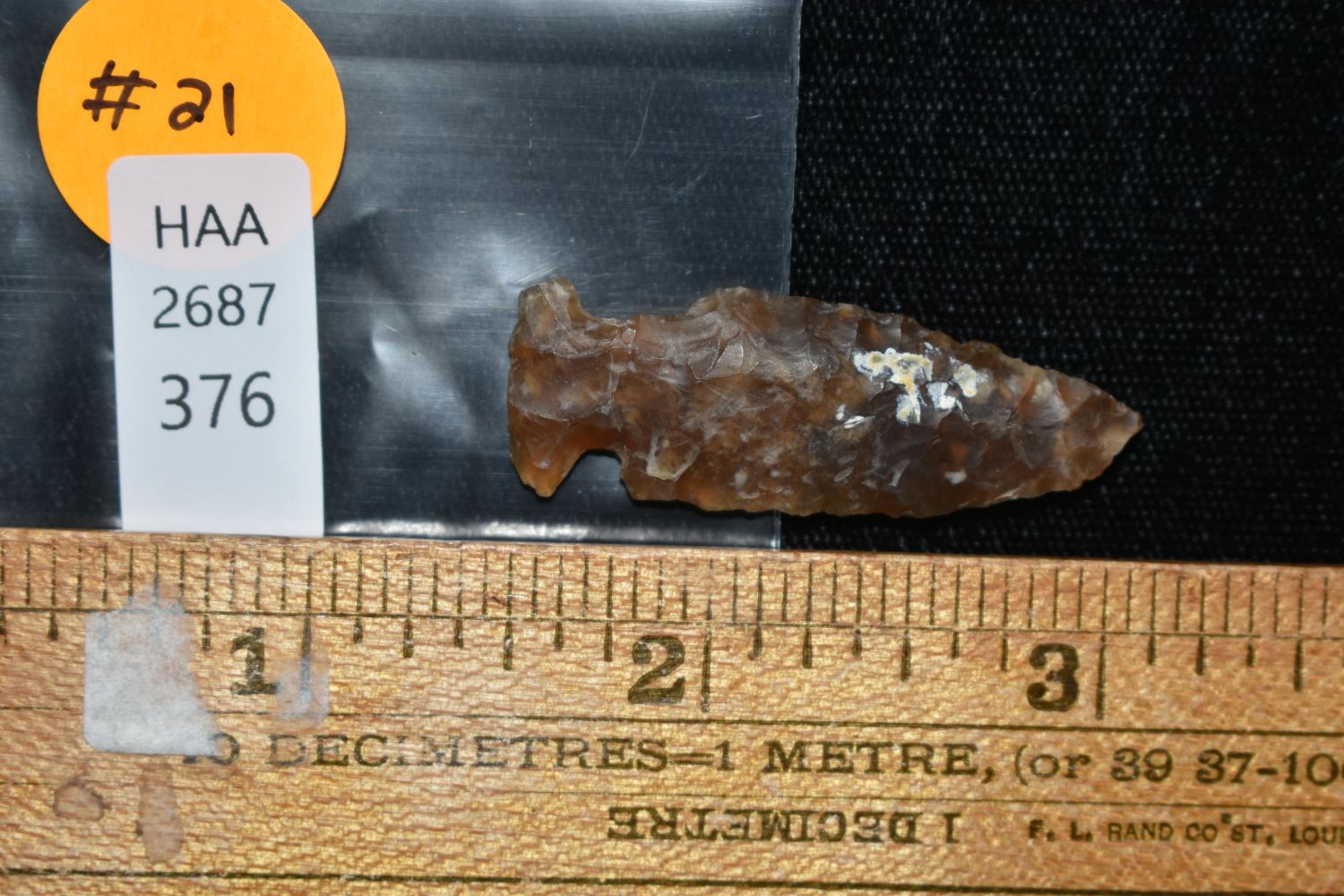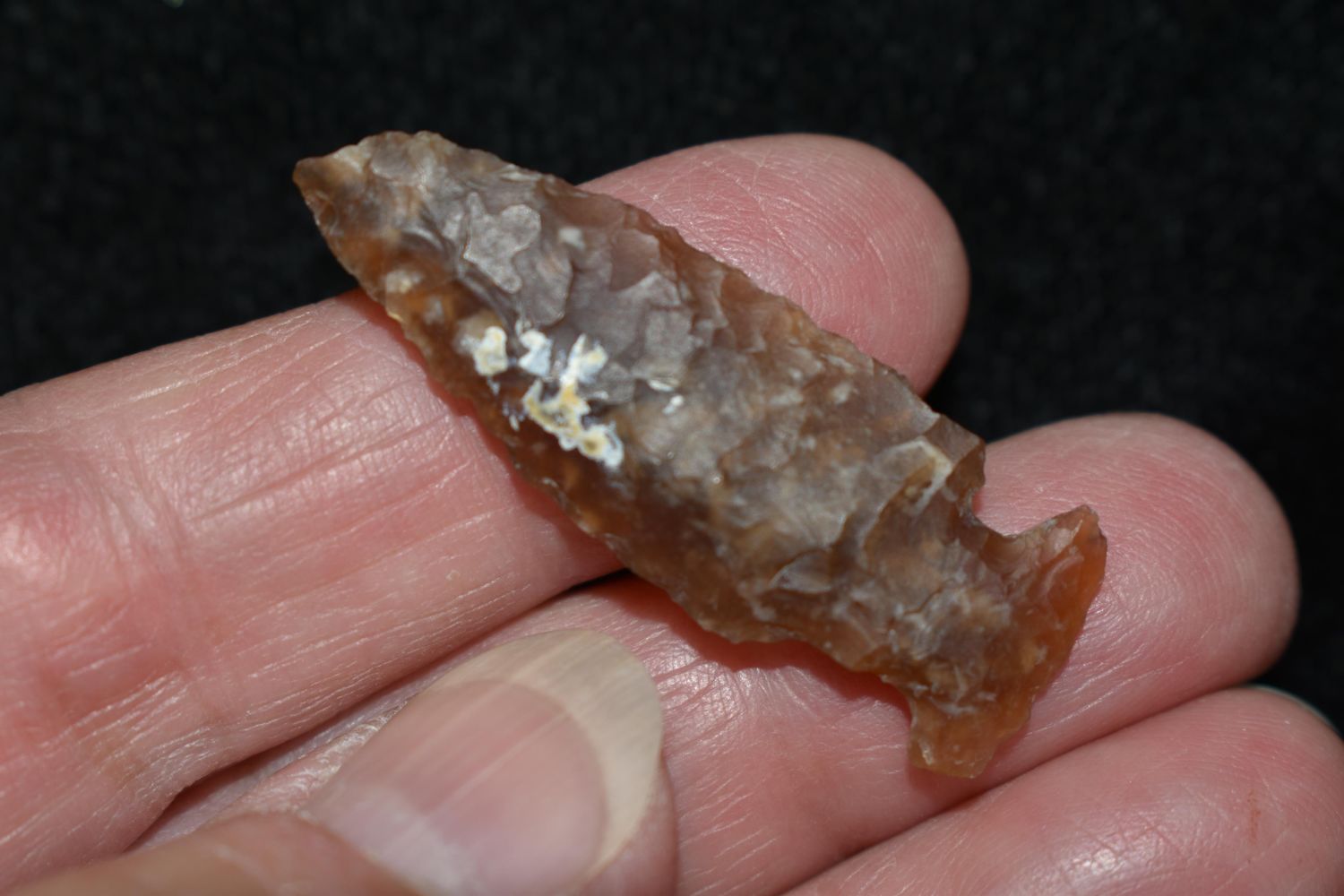 1 5/8" Bird Point made of Knife River Flint Found By Fred Kronenburg in Makoti North Dakota (Ward County)