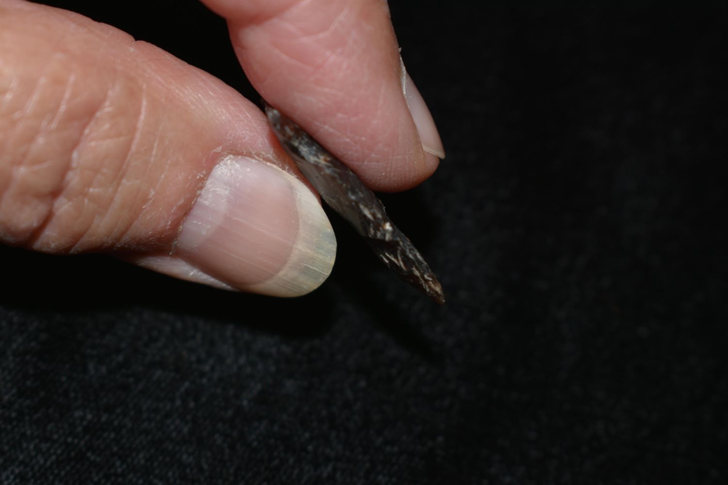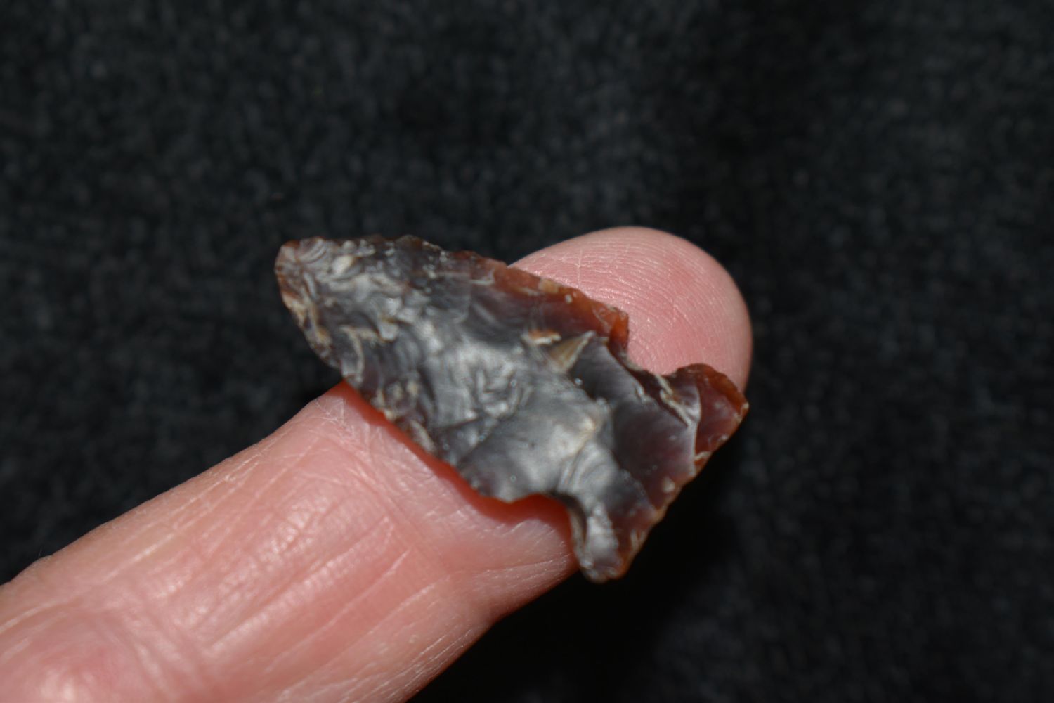 1 1/16" Bird Point made of Knife River Flint Found By Fred Kronenburg in Makoti North Dakota (Ward County)