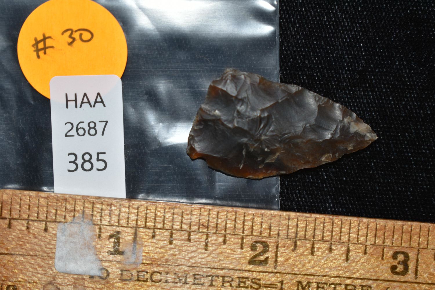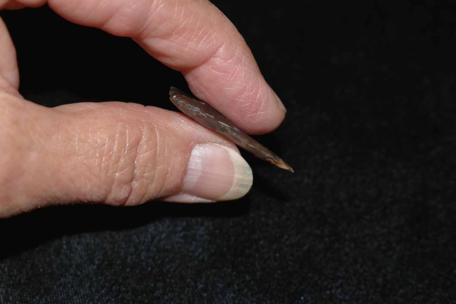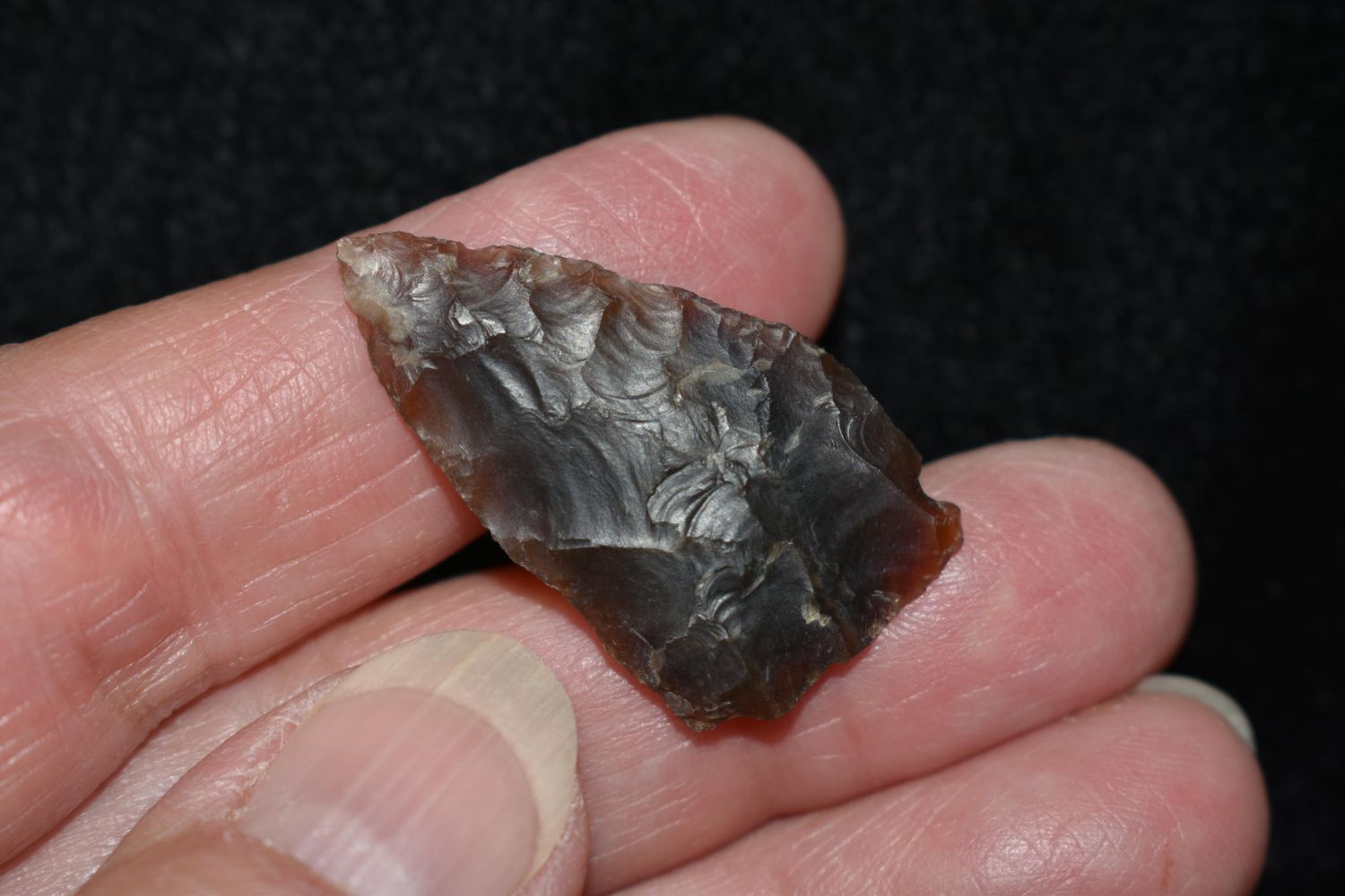 1 3/8" Bird Point made of Knife River Flint Found By Fred Kronenburg in Makoti North Dakota (Ward County)