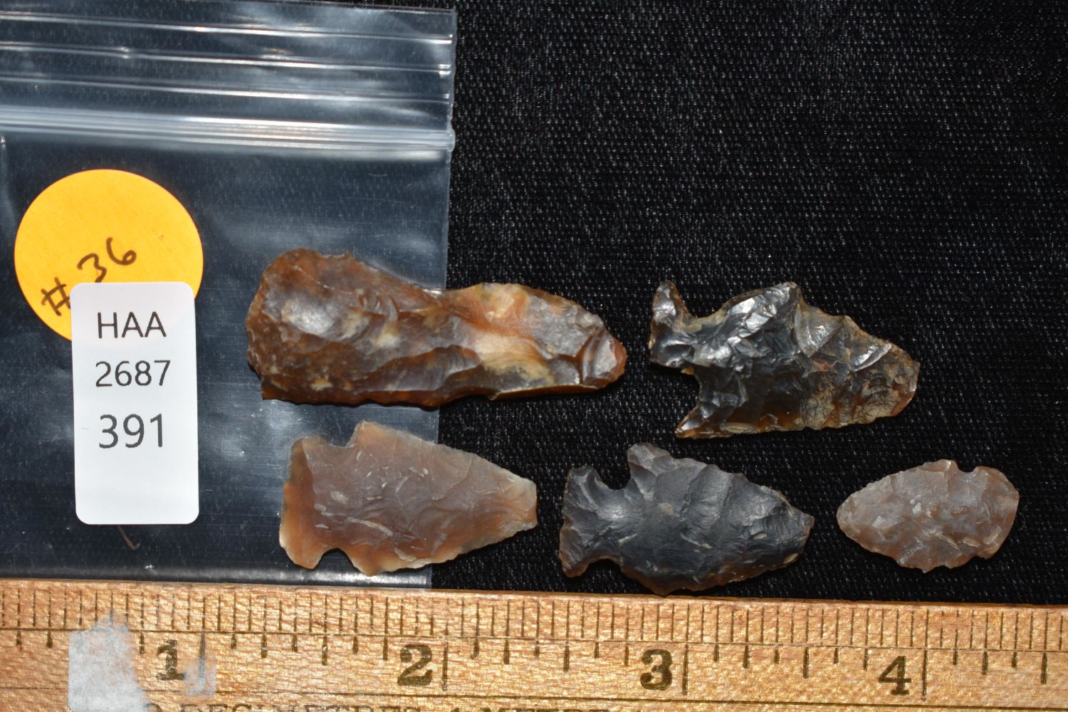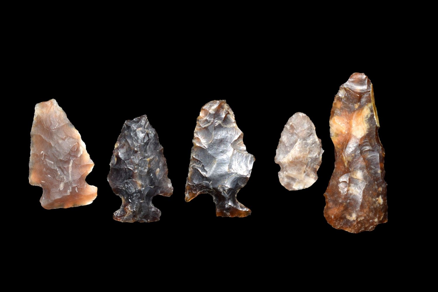 5 piece lot of points made of Knife River Flint Found