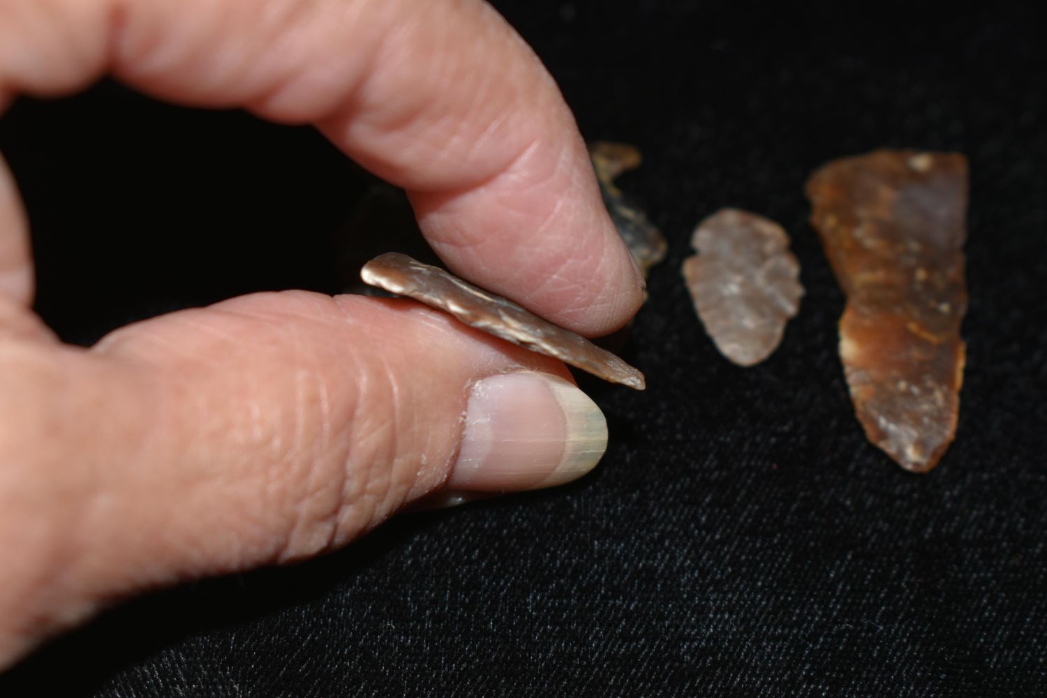 5 piece lot of points made of Knife River Flint Found By Fred Kronenburg in Makoti North Dakota (Ward County) Largest piece is 1 1/2"