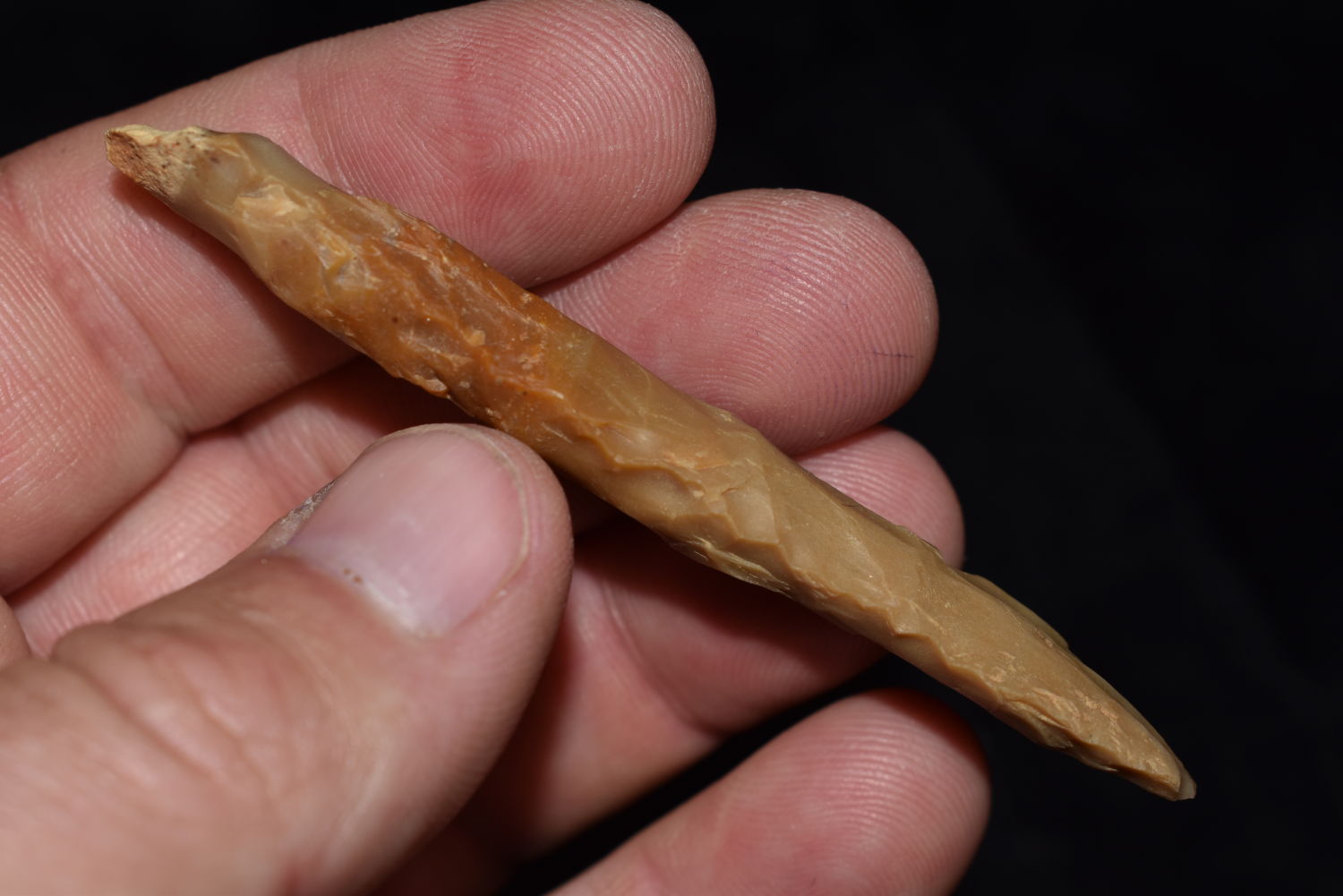 3 1/8″ Carter Cave Pencil Drill found in Clark Co., Kentucky, Authentic Native American Arrowhead