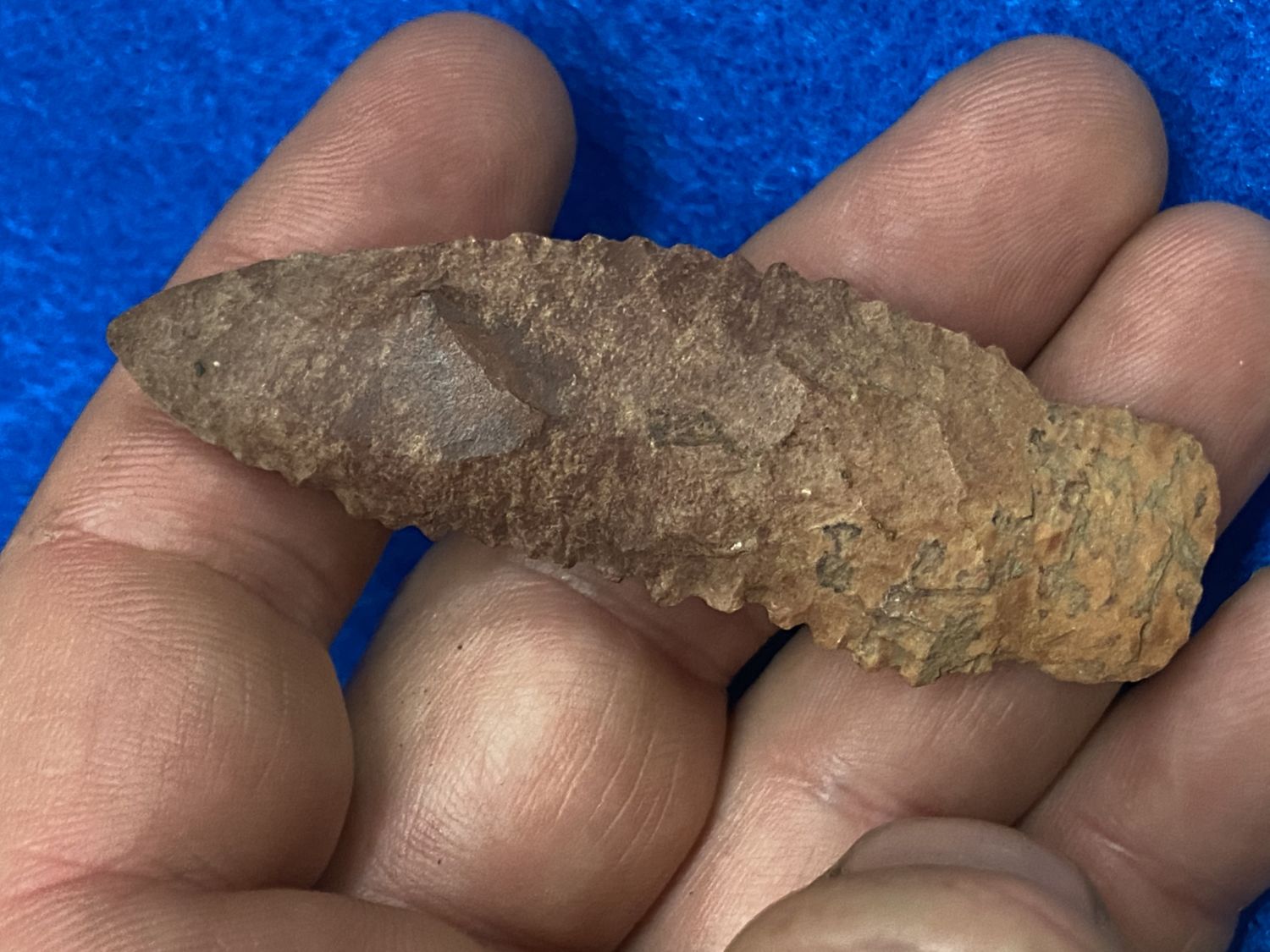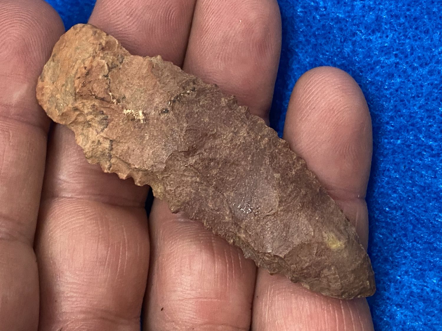 2 3/4″ Serrated Stemmed Point found in Lee Co., Mississippi, Authentic Native American Arrowhead