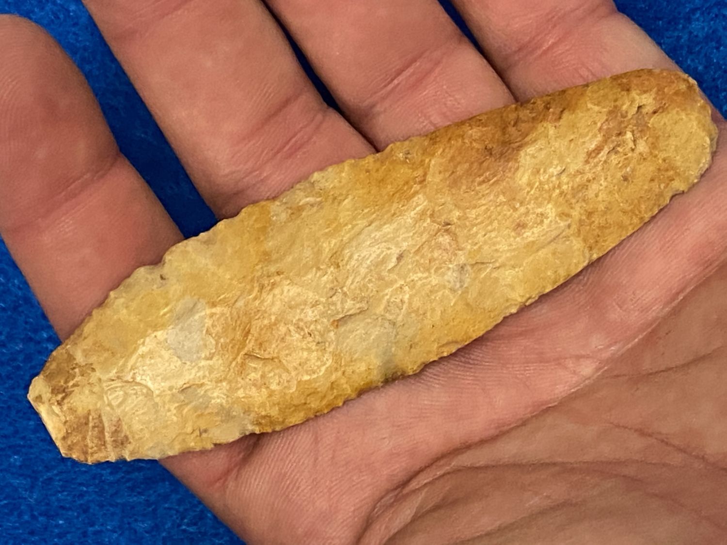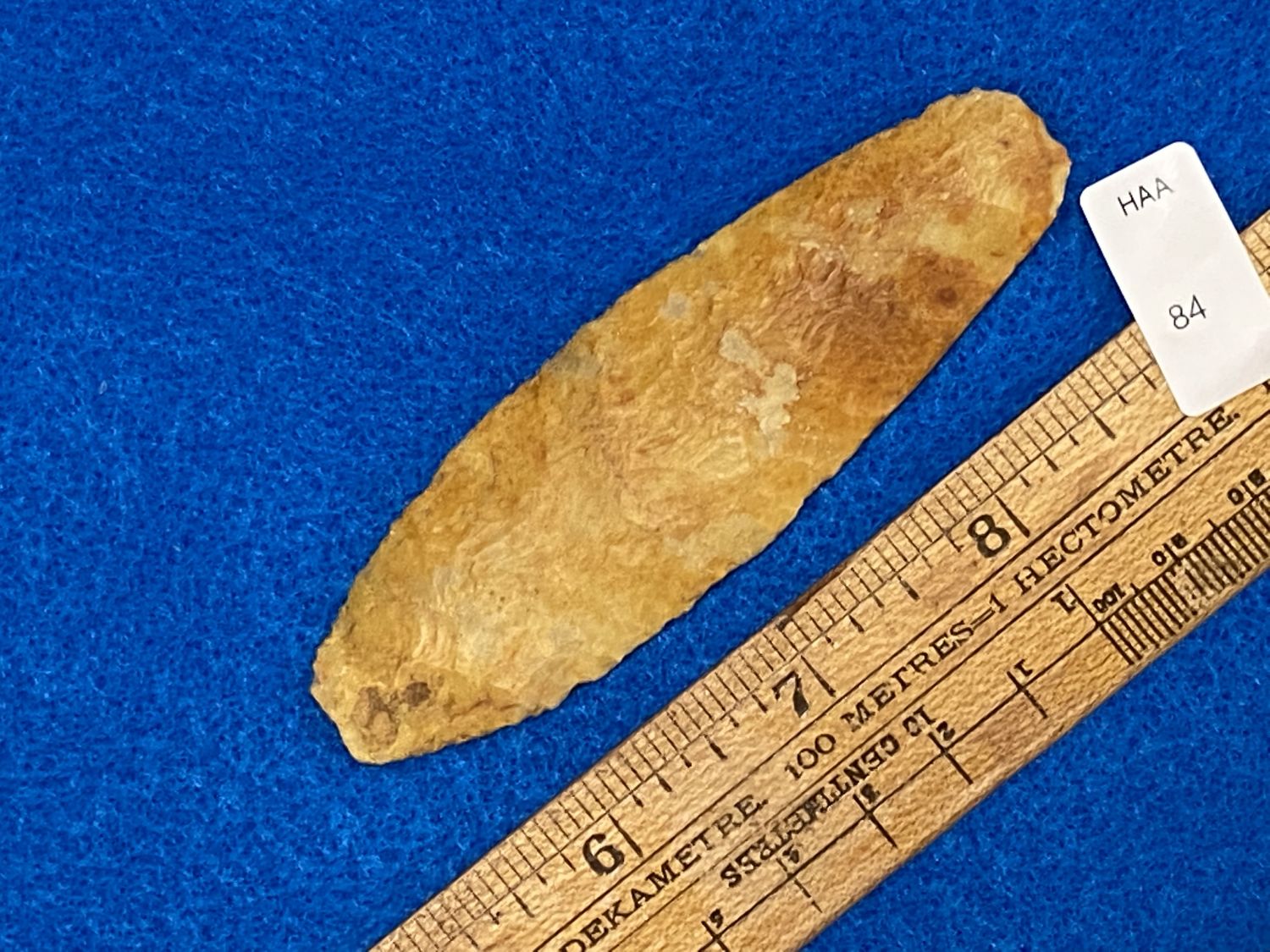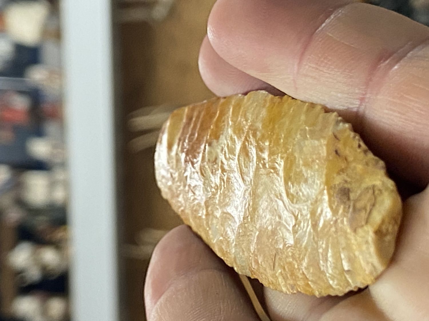 Incredibly Colored 3 7/8″ Agate Basin found by Gary Nelson in Southeast Iowa, Authentic Native American Arrowhead