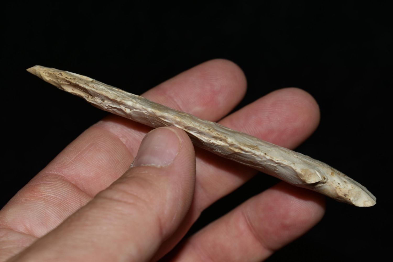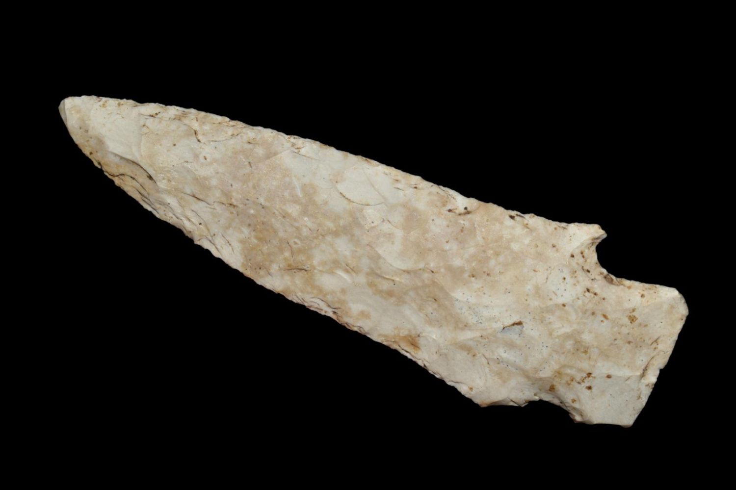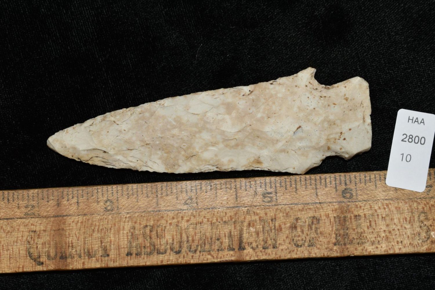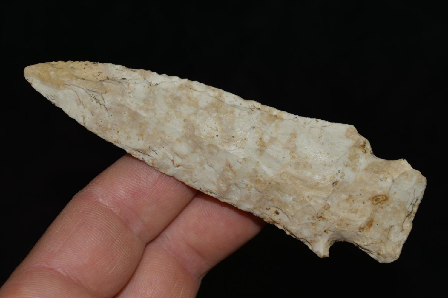 4 1/8" Hardin found in Ralls Co, Missouri, heavily patinated and lightly serrated, Authentic Native American Arrowhead