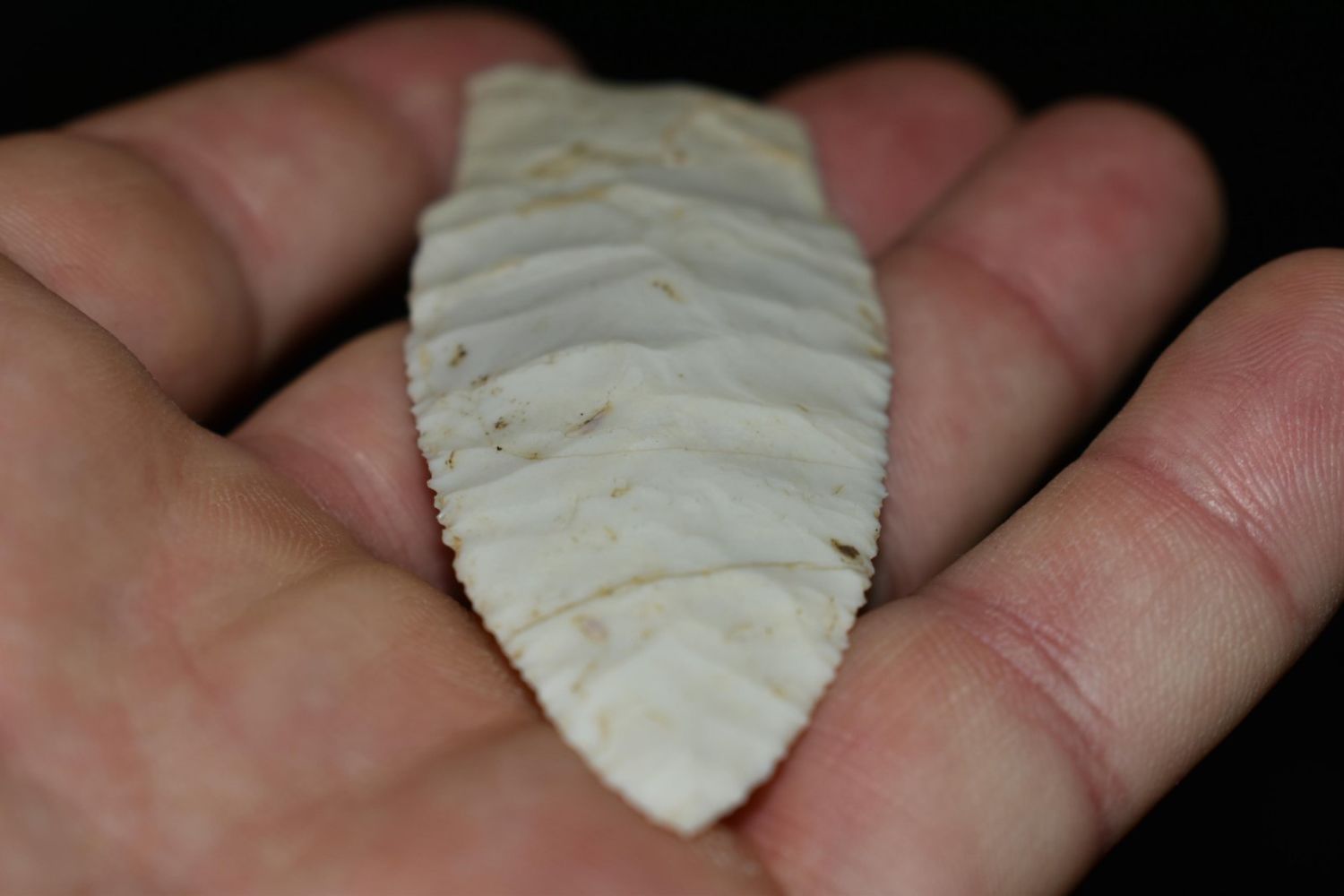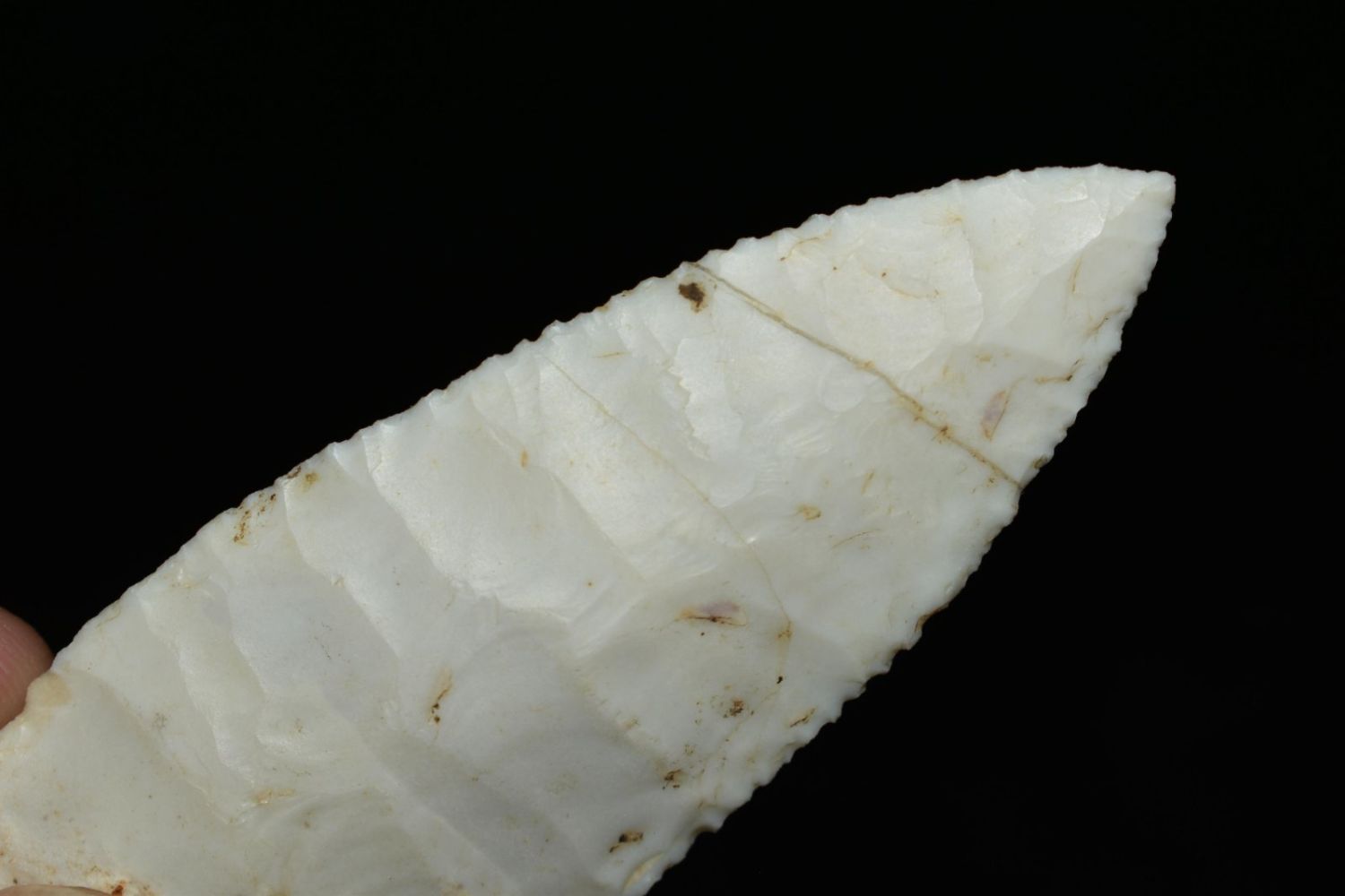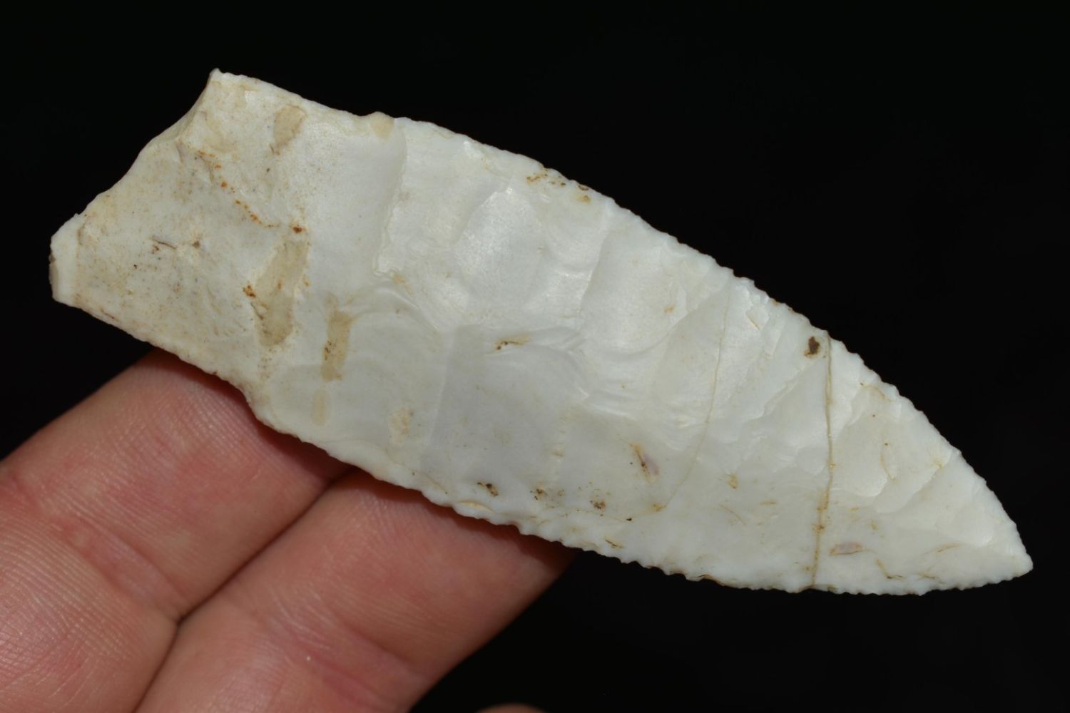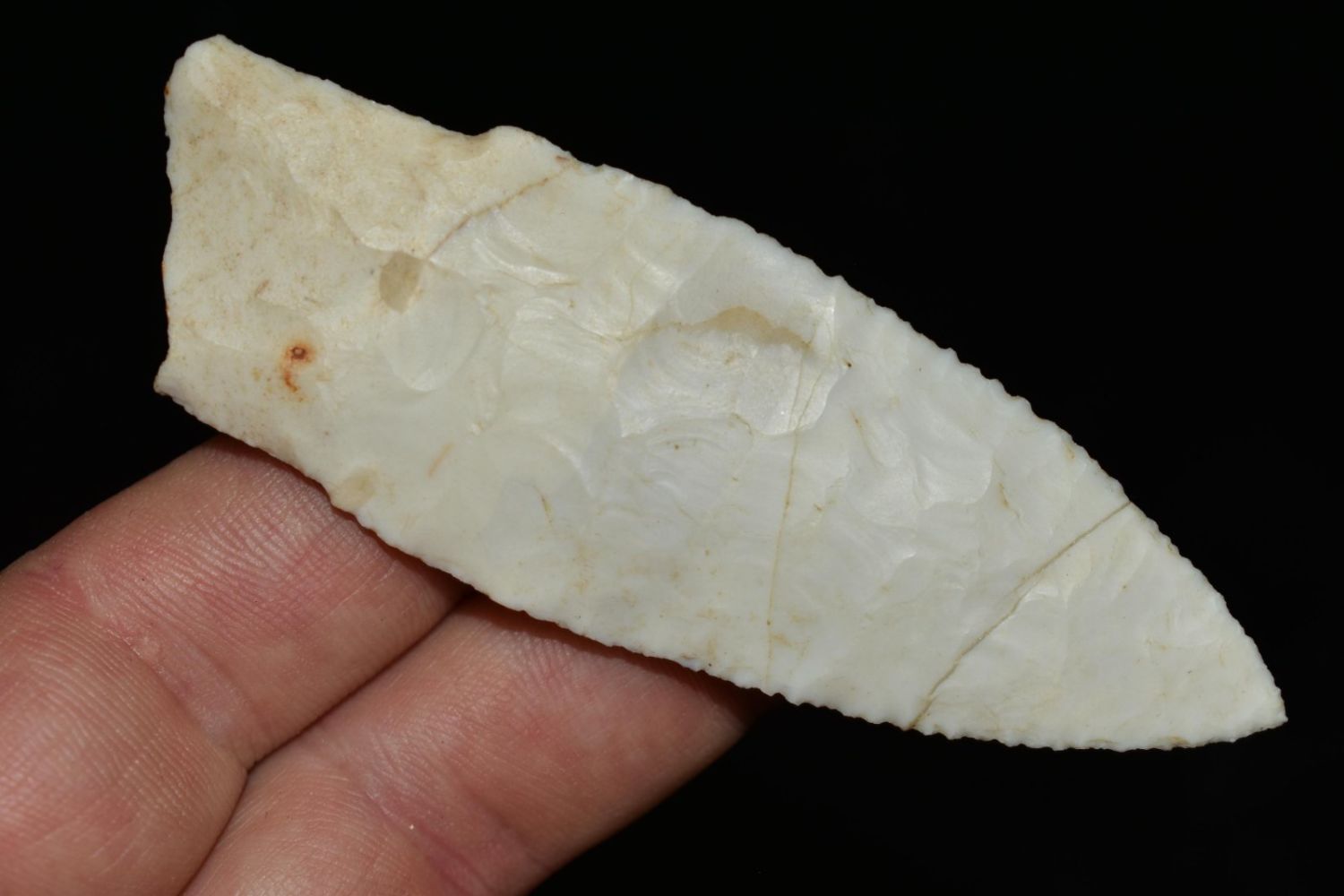 2 3/8" Amazing Holland/Scotsbluff lightly serrated median ridge, very well flaked, Authentic Native American Arrowhead