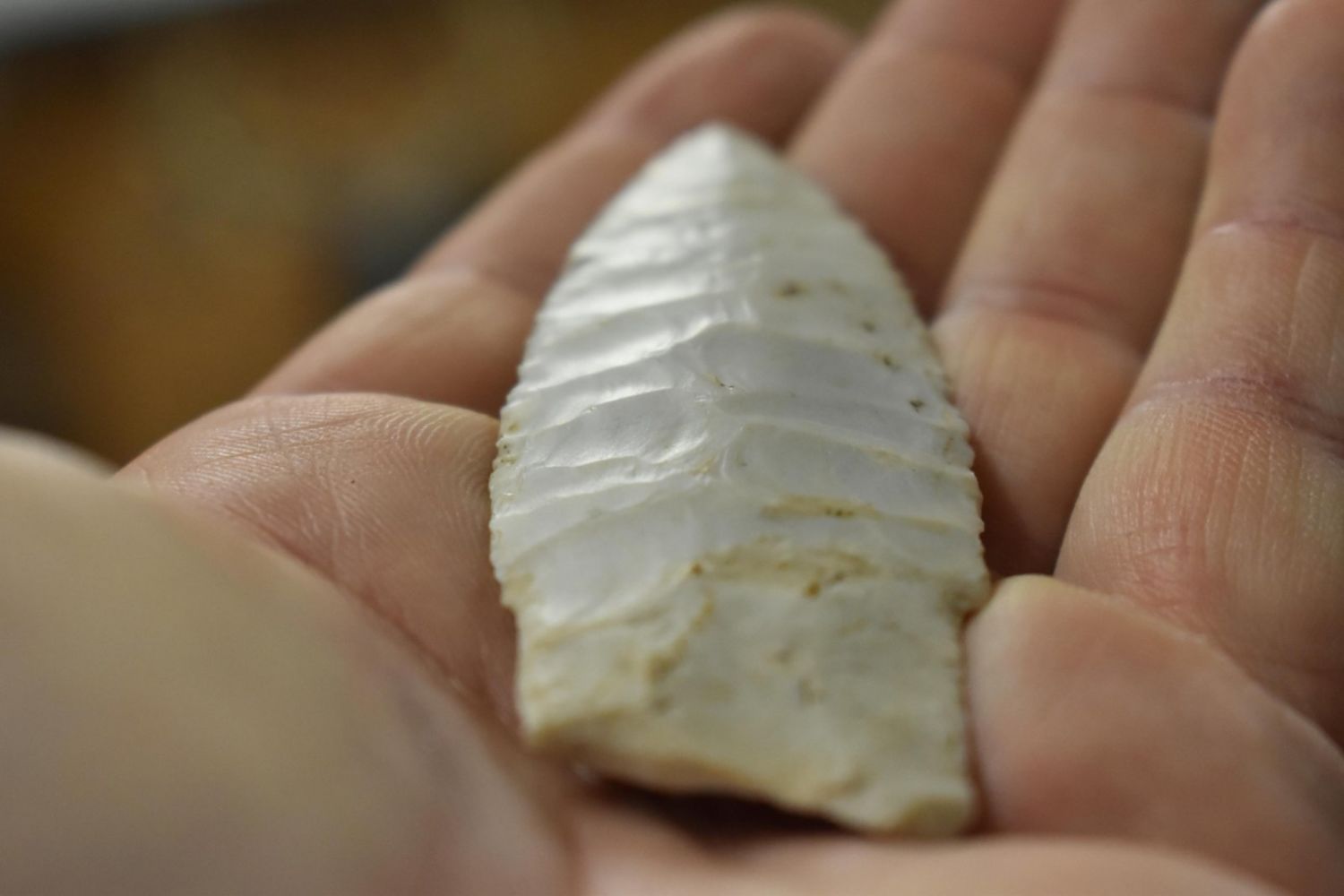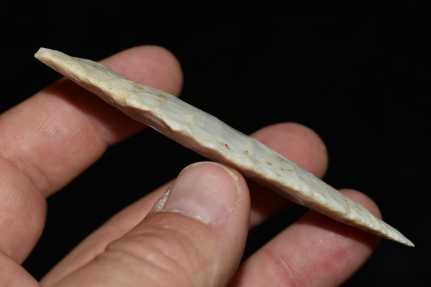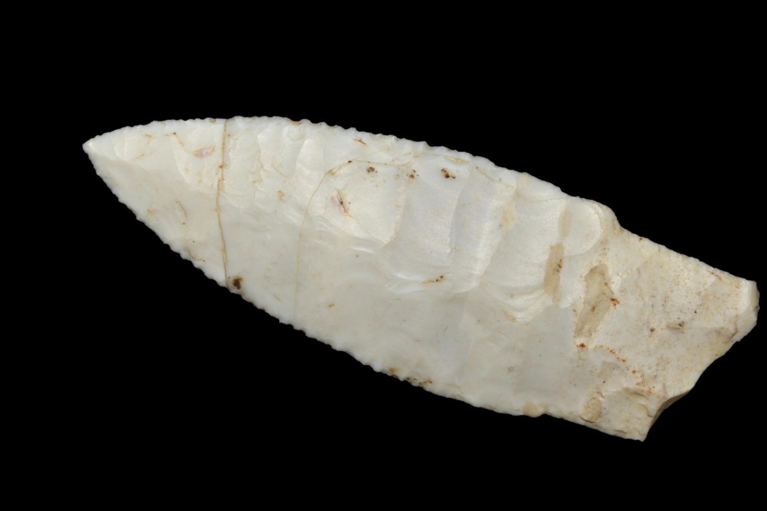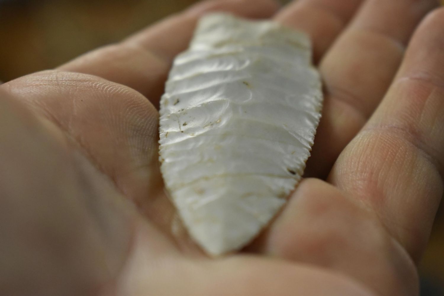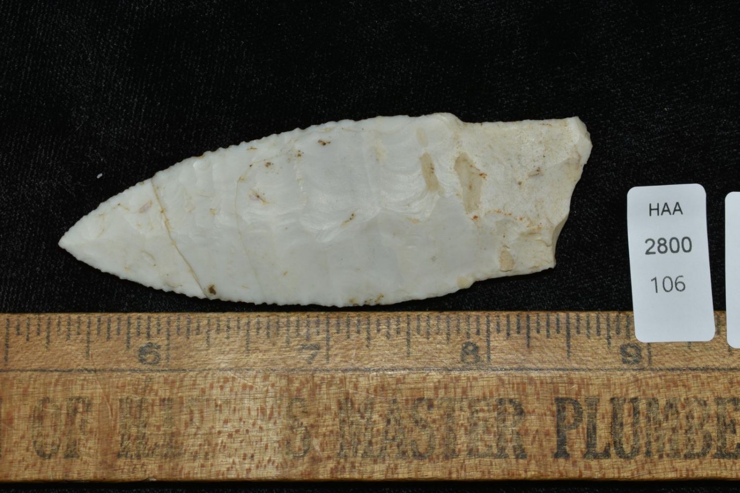 2 3/8" Amazing Holland/Scotsbluff lightly serrated median ridge, very well flaked, Authentic Native American Arrowhead