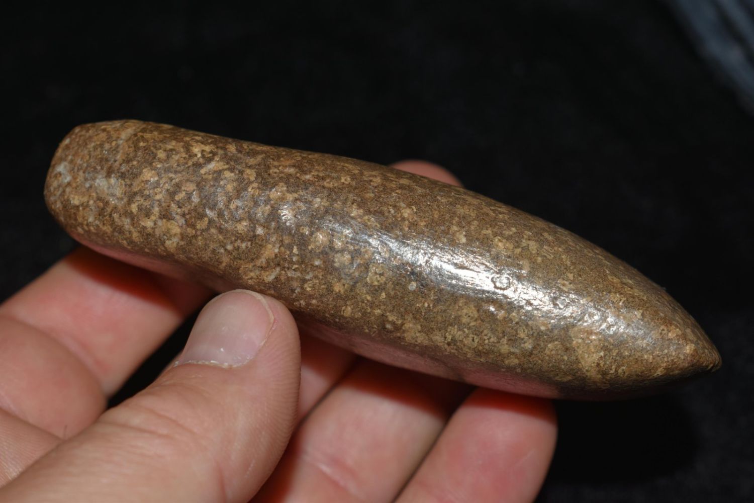 4" Porphyry Celt Found in Old Pear Orchard, West of London Mills, IL by Donald Puckett Sr. 1960s