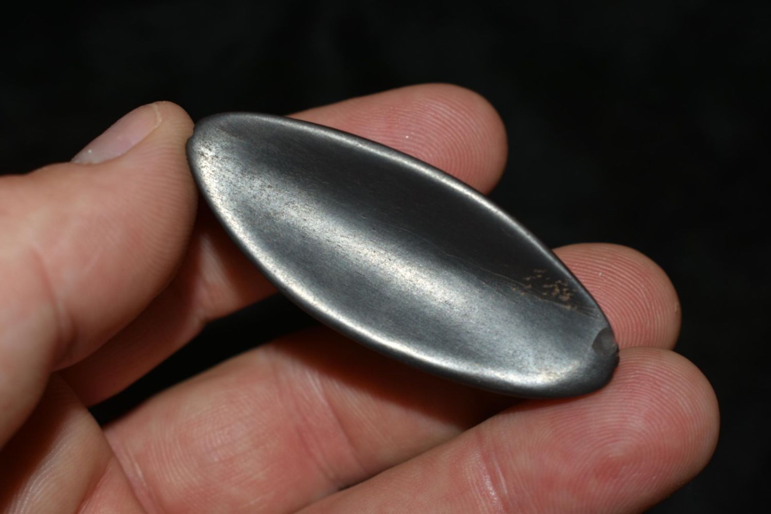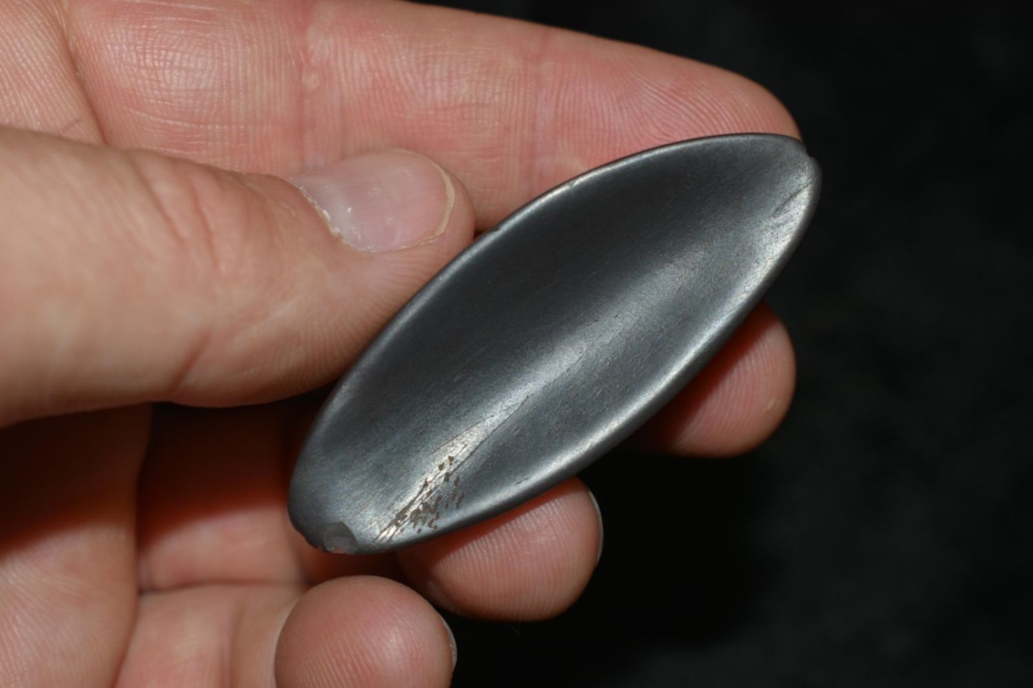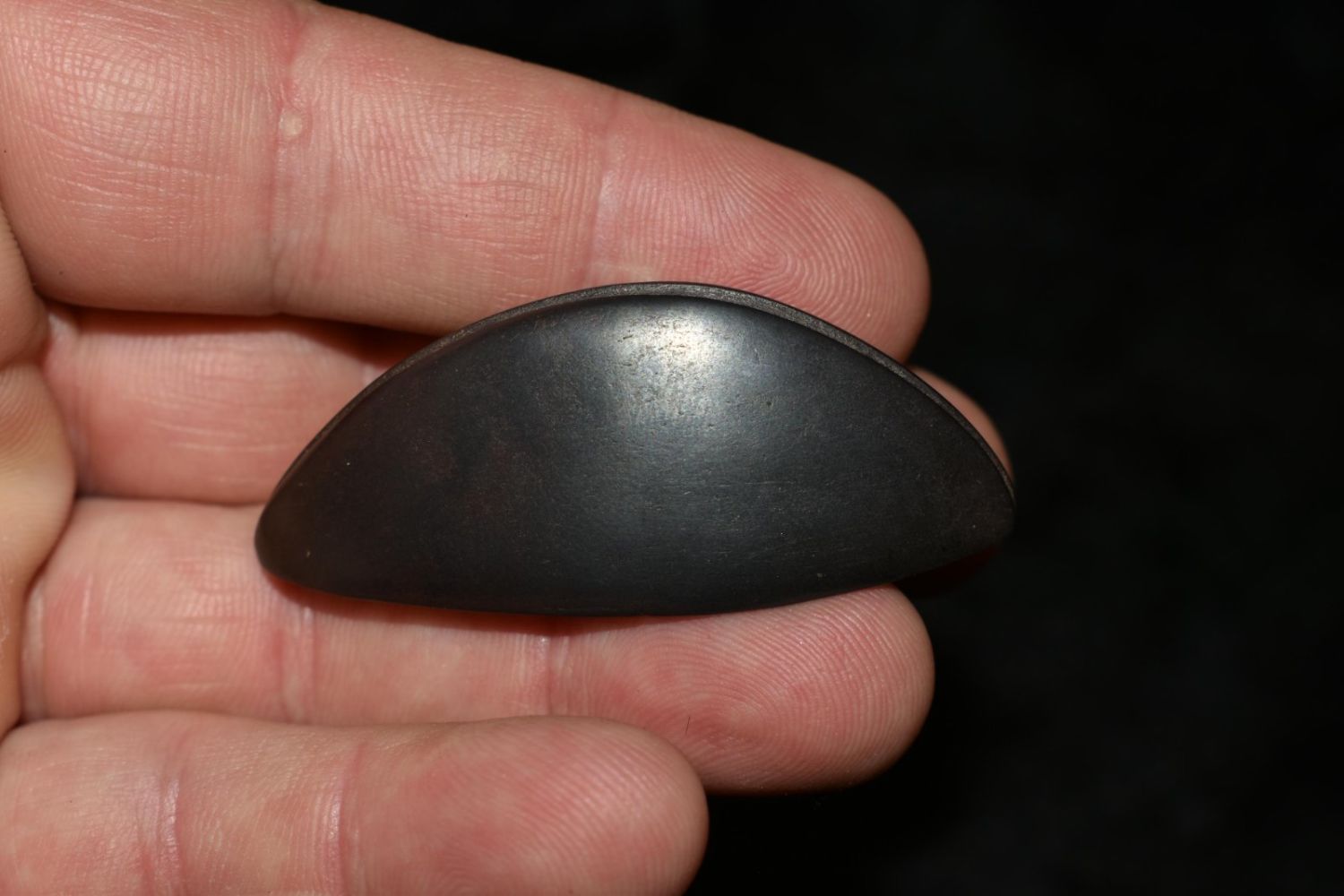 2 1/8" Very Well made Hematite Boat Stone ex Byron Knoblach, nice groove around the top