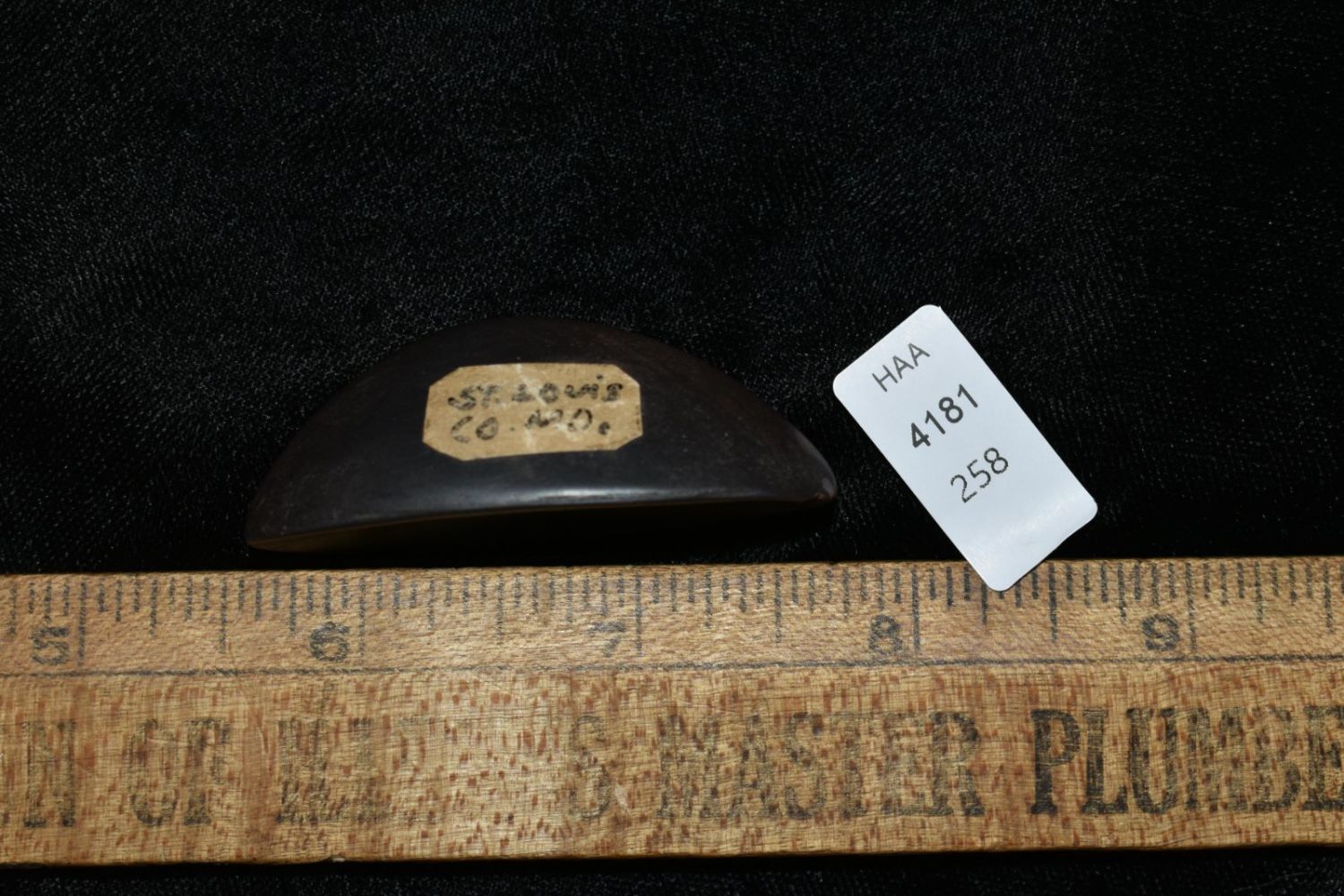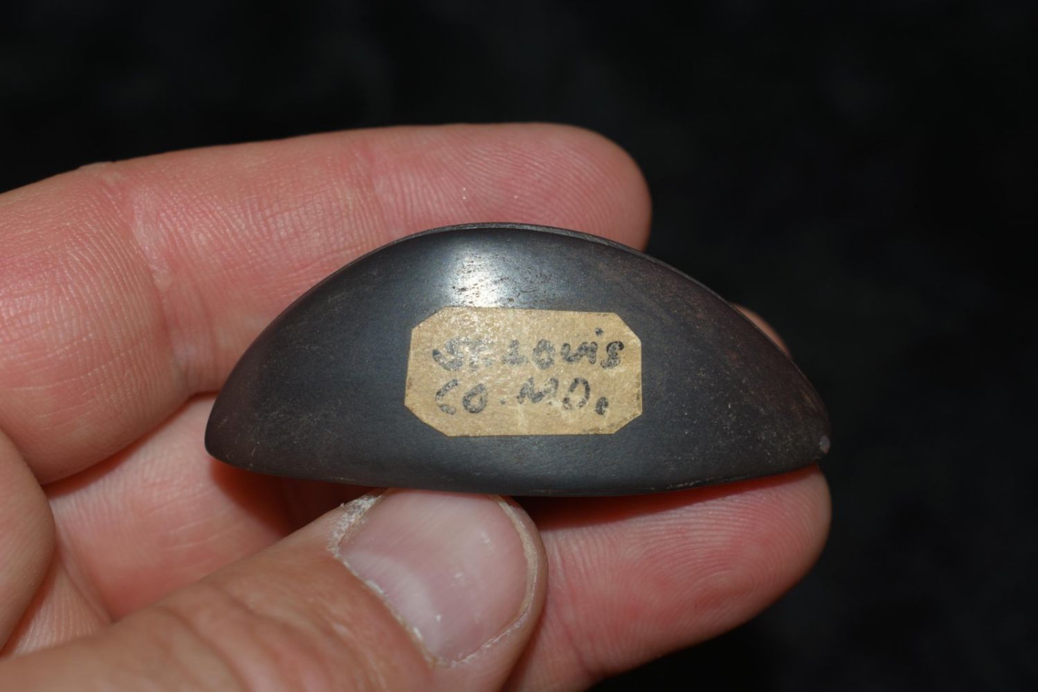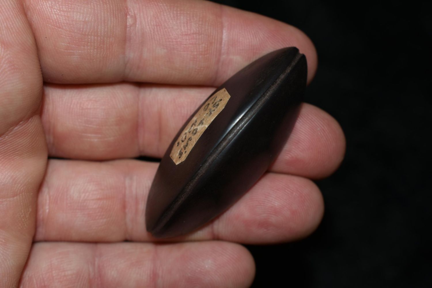 2 1/8" Very Well made Hematite Boat Stone ex Byron Knoblach, nice groove around the top