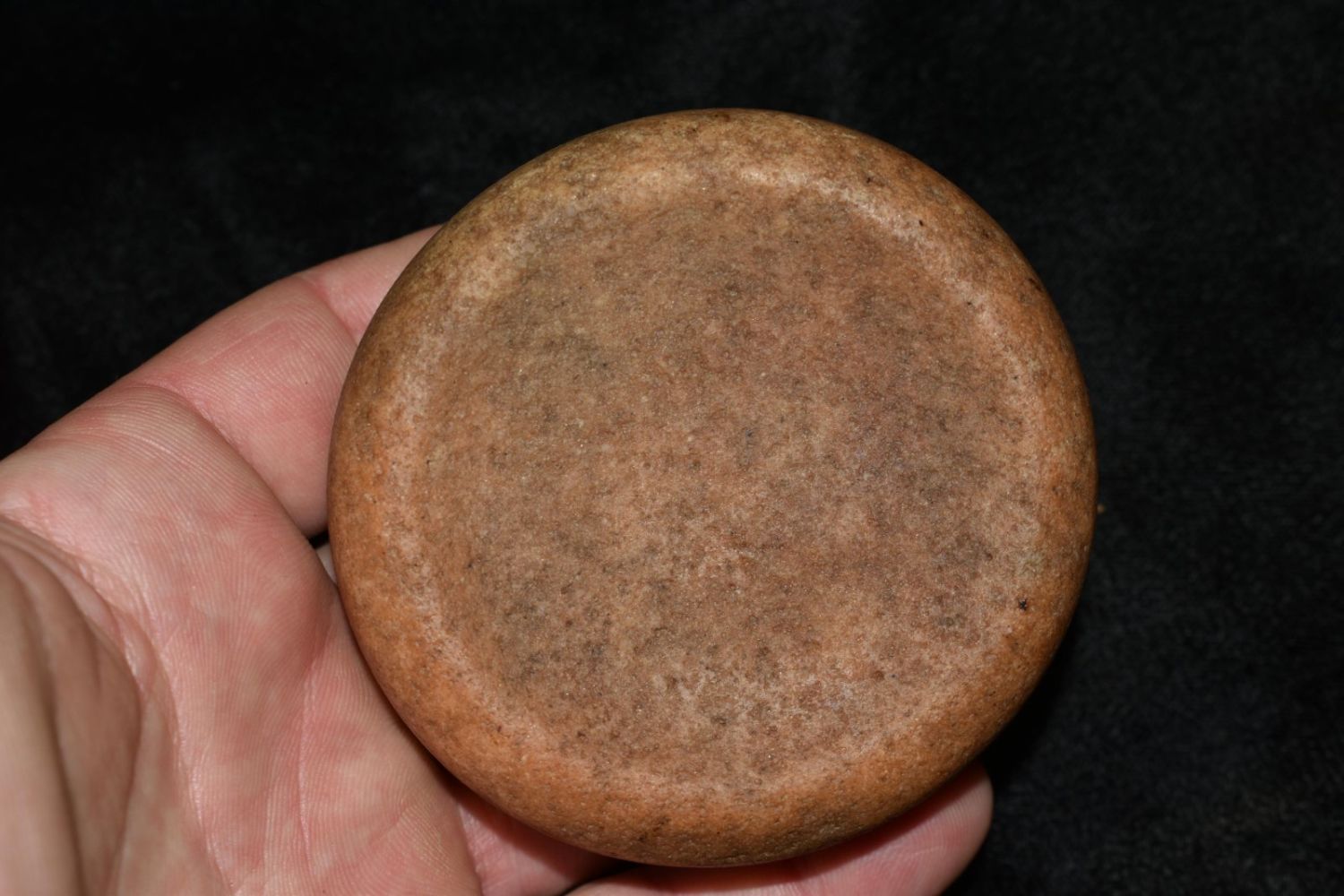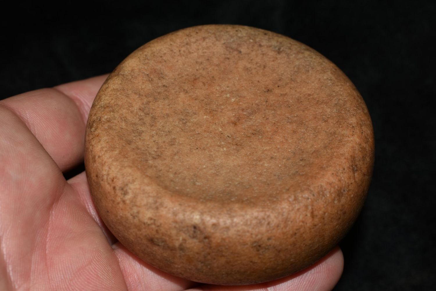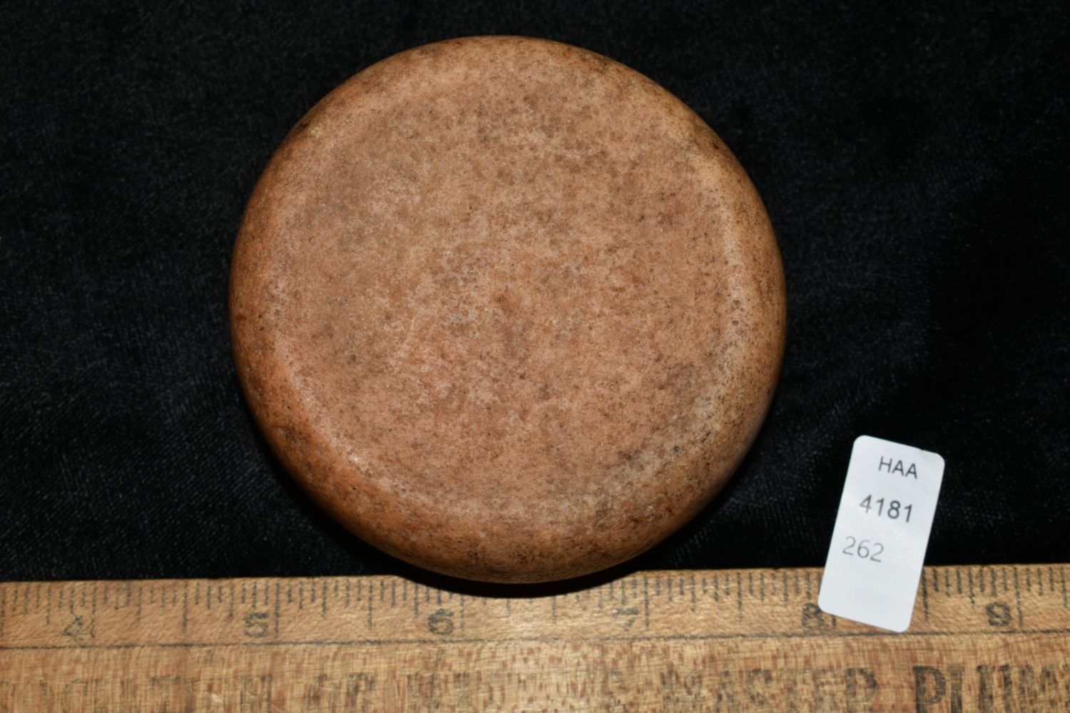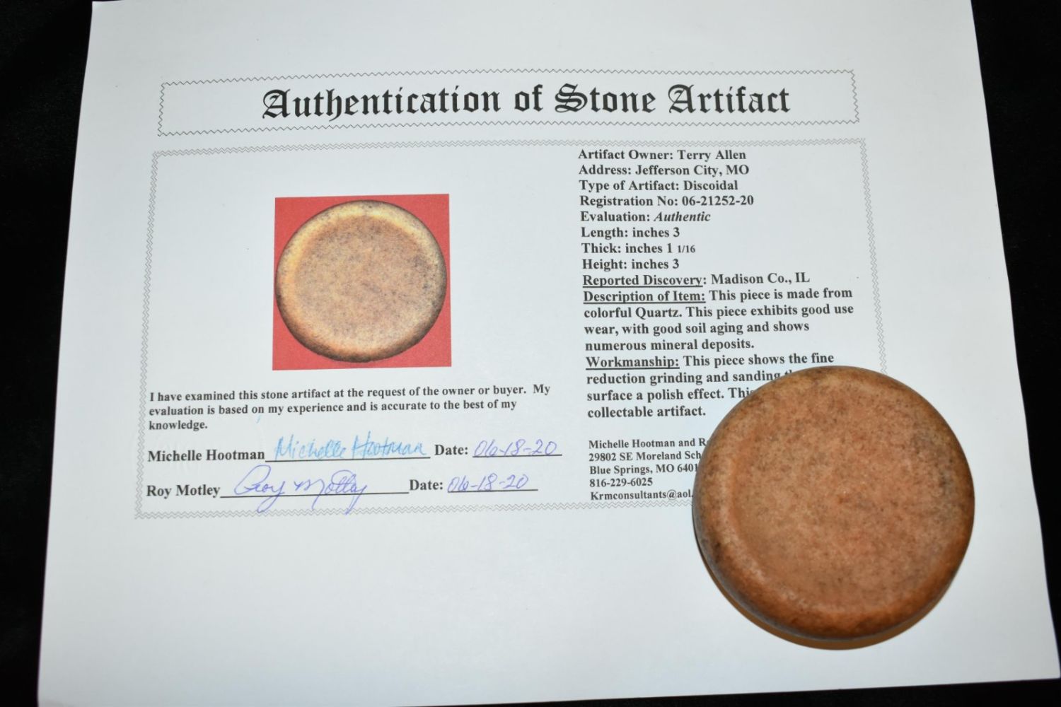 3" Cahokia Discoidal, Motley COA, found in Madison Co, Illinois made of colorful Quartz