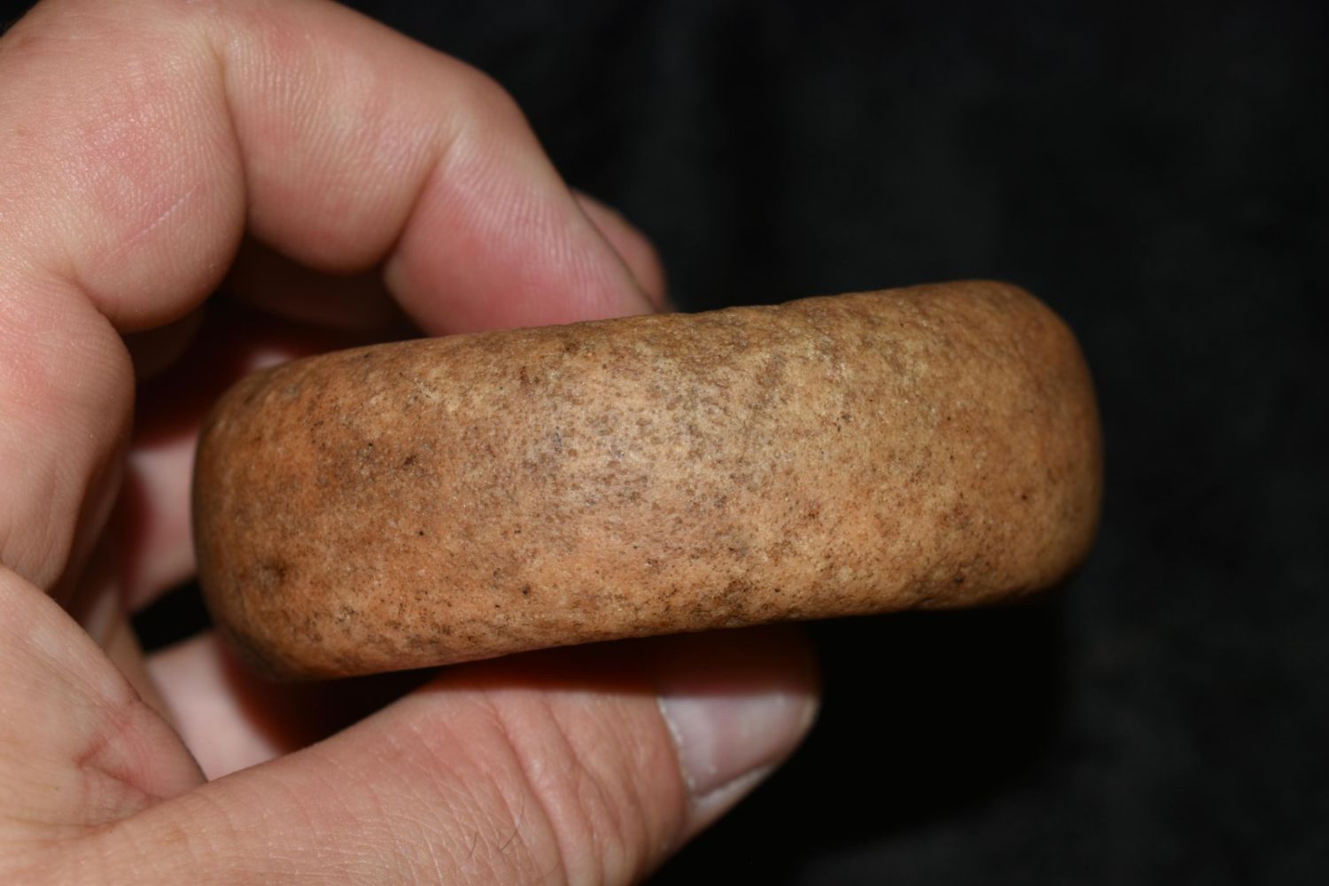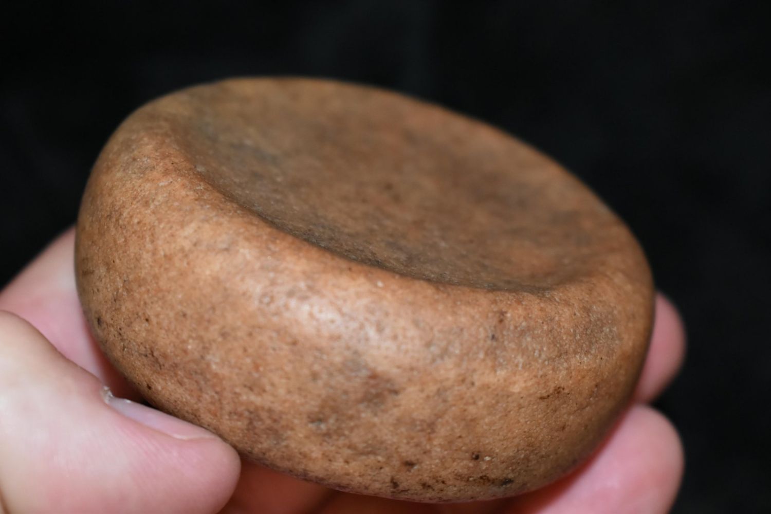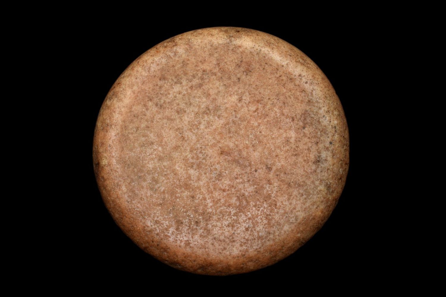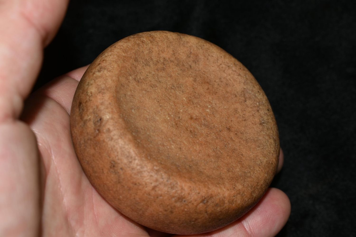 3" Cahokia Discoidal, Motley COA, found in Madison Co, Illinois made of colorful Quartz