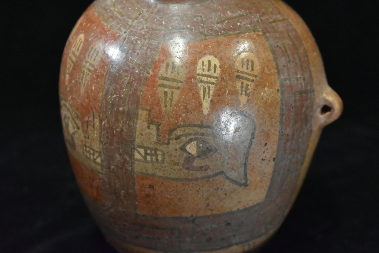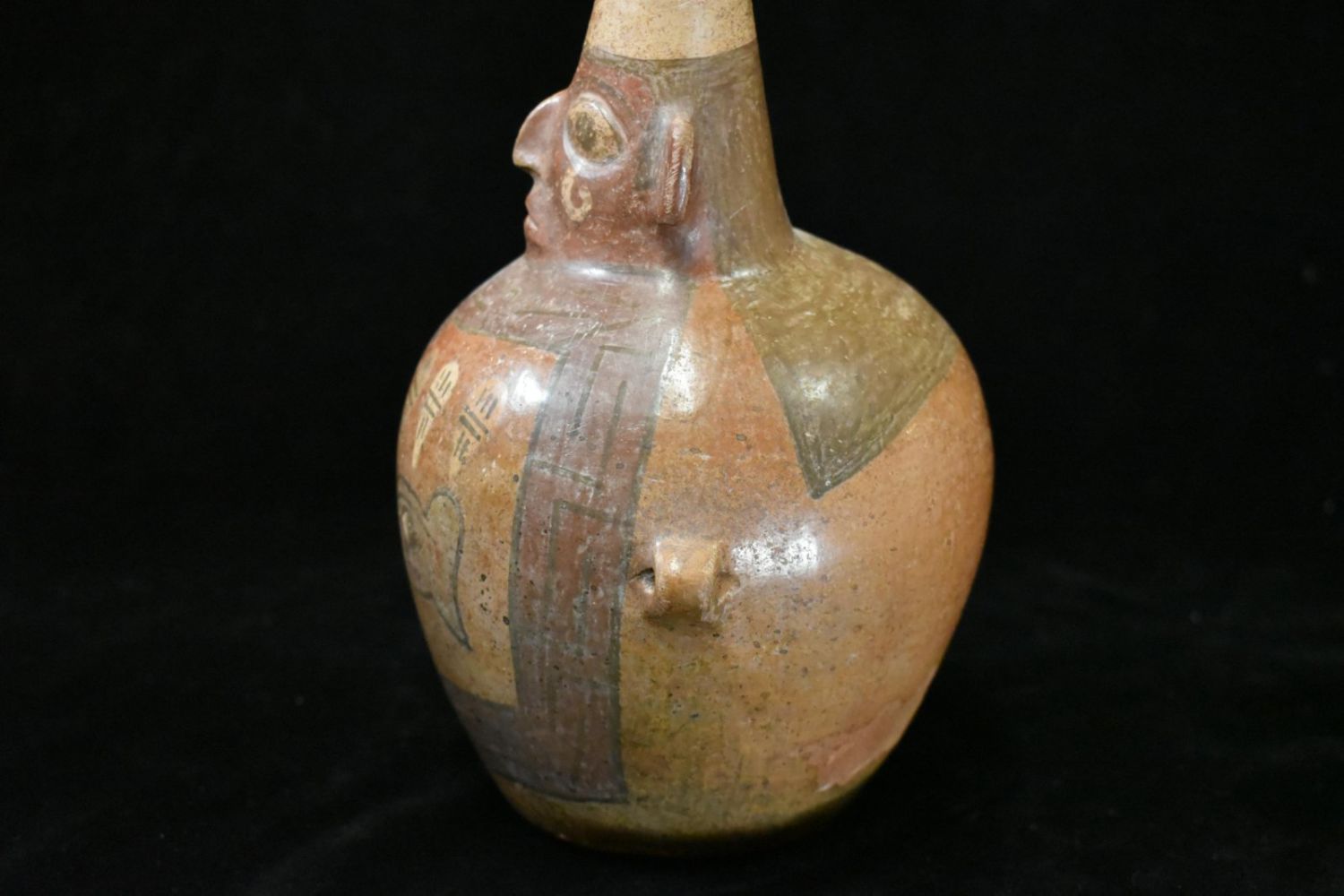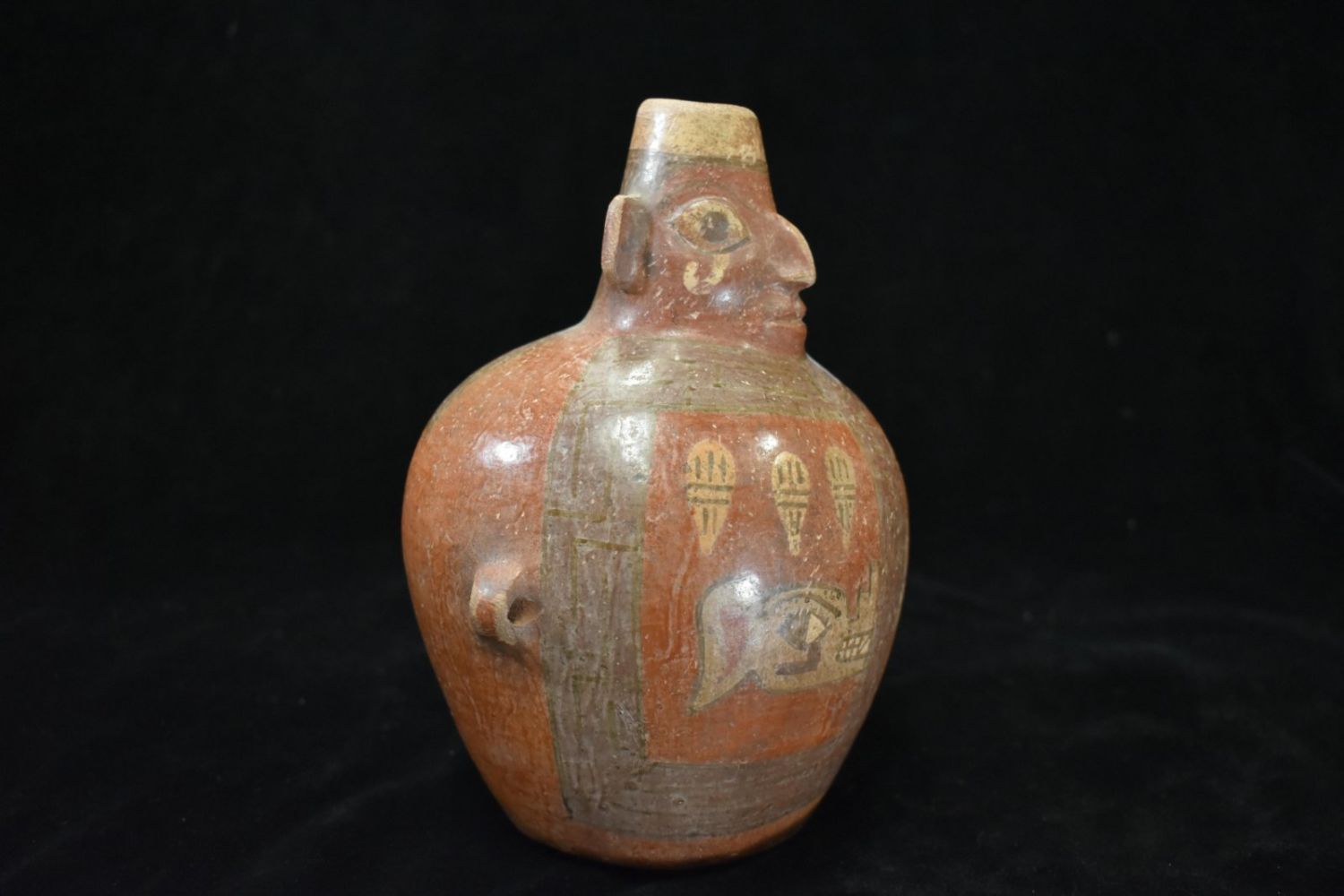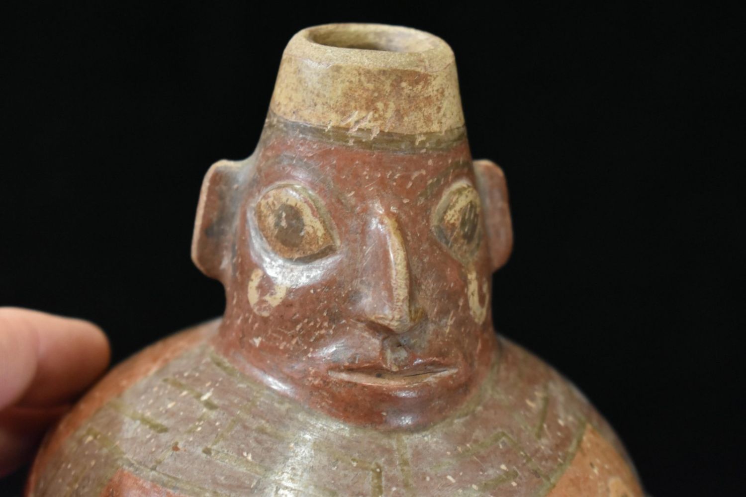 7" Tall Inca Human Effigy Pottery Vessel, Nice Paint to the front. Pre Columbian Pottery Vessel from South America