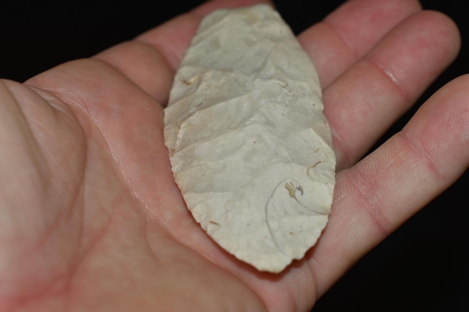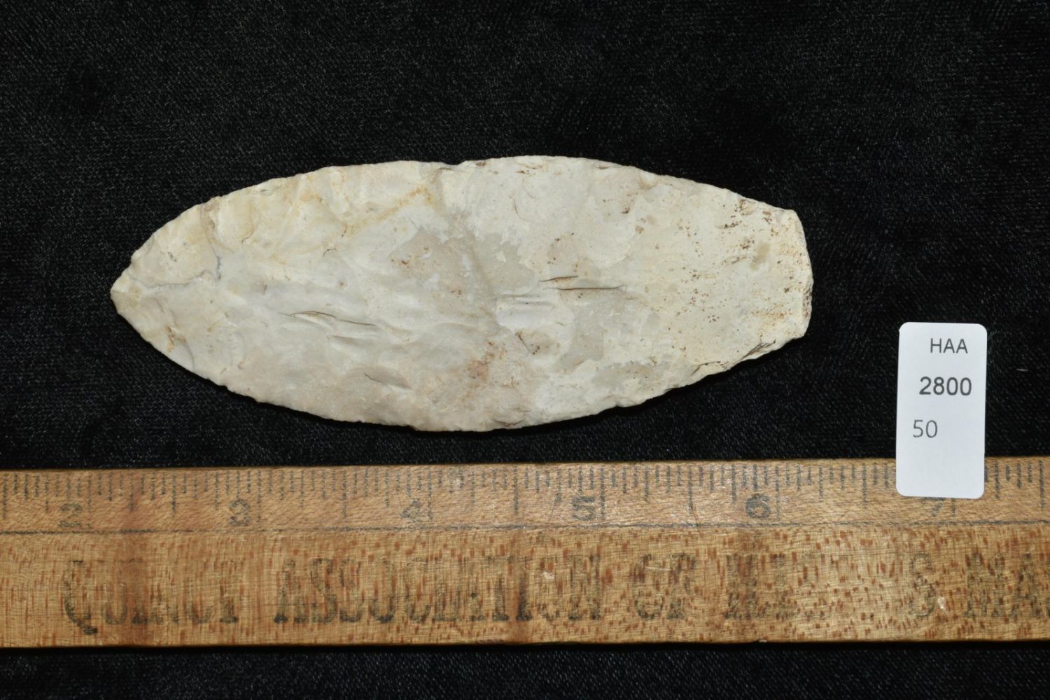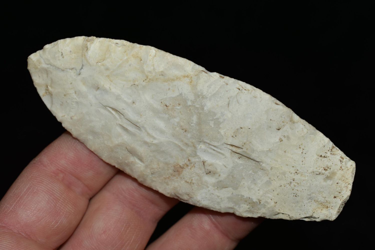 4" Agate Basin found near Galesburg, IL. Well Flaked, nice width to thickness ration, ground base, ex Gary Van Dyke, Authentic Native American Arrowhead