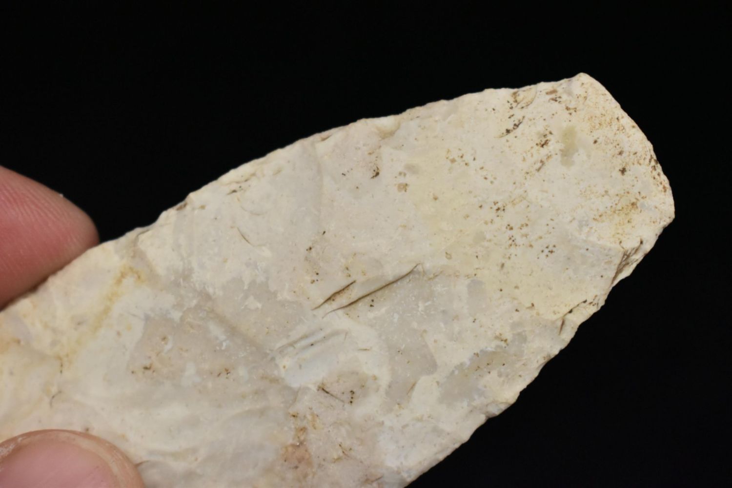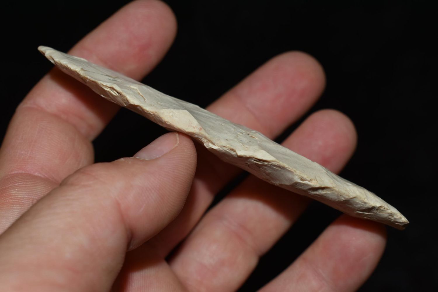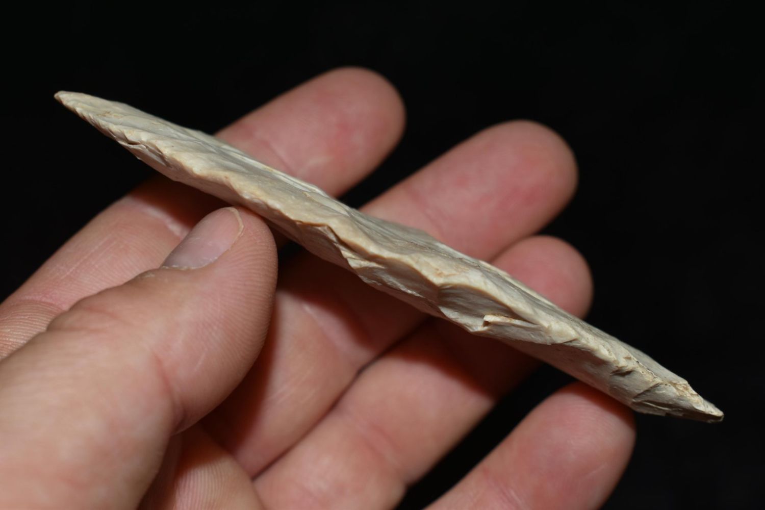 4" Agate Basin found near Galesburg, IL. Well Flaked, nice width to thickness ration, ground base, ex Gary Van Dyke, Authentic Native American Arrowhead