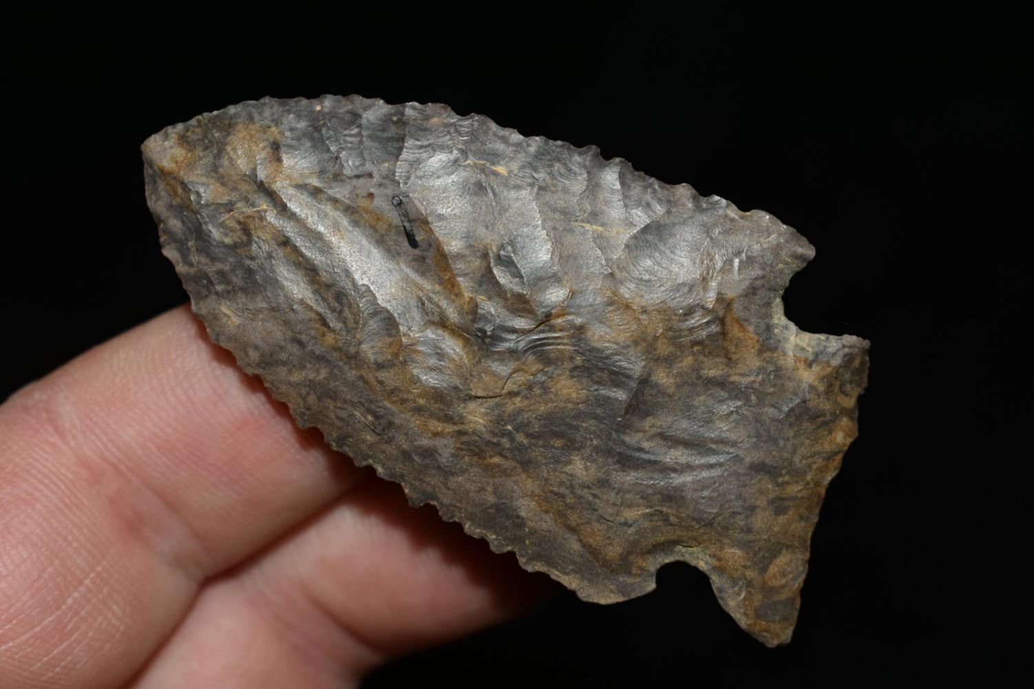 2 3/8" Serrated Stillwell, beautiful multi brown, Authentic Native American Arrowhead