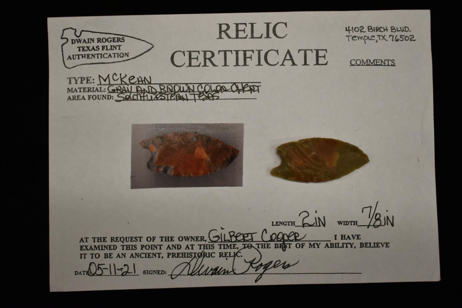 2" Mckean, Rogers COA, Southwestern Texas, very thin, Authentic Native American Arrowhead
