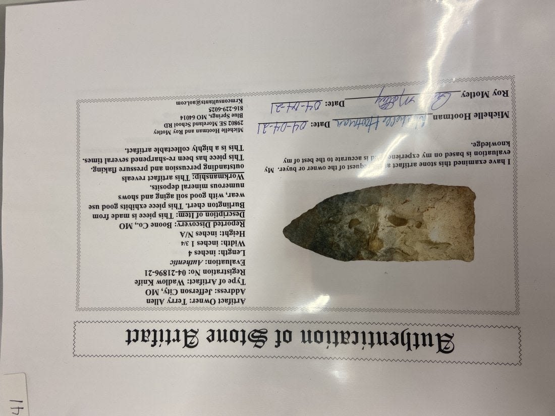 4" Wadlow Knife, Motley COA, Recovered in Boone Co.