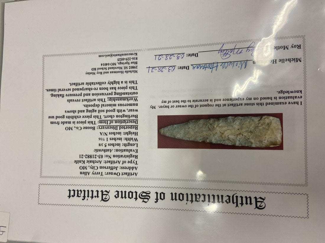 5 3/8" Archaic Knife, Motley COA, Recovered in Boone