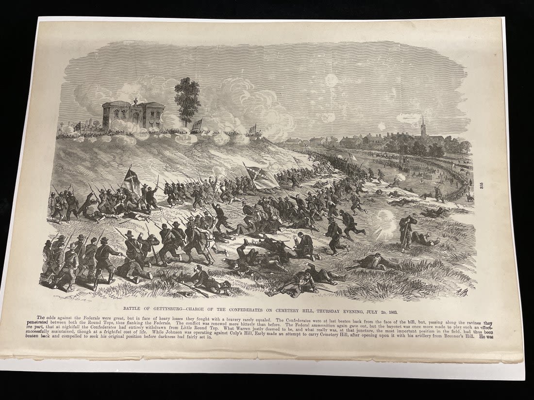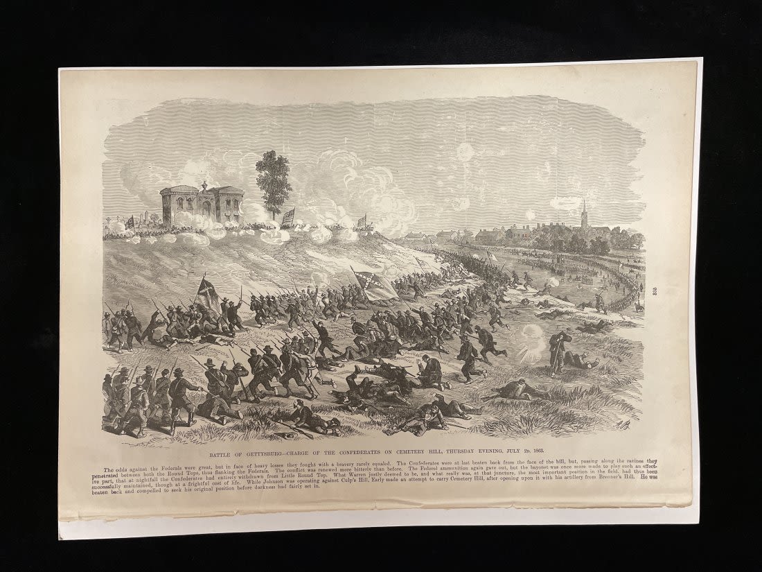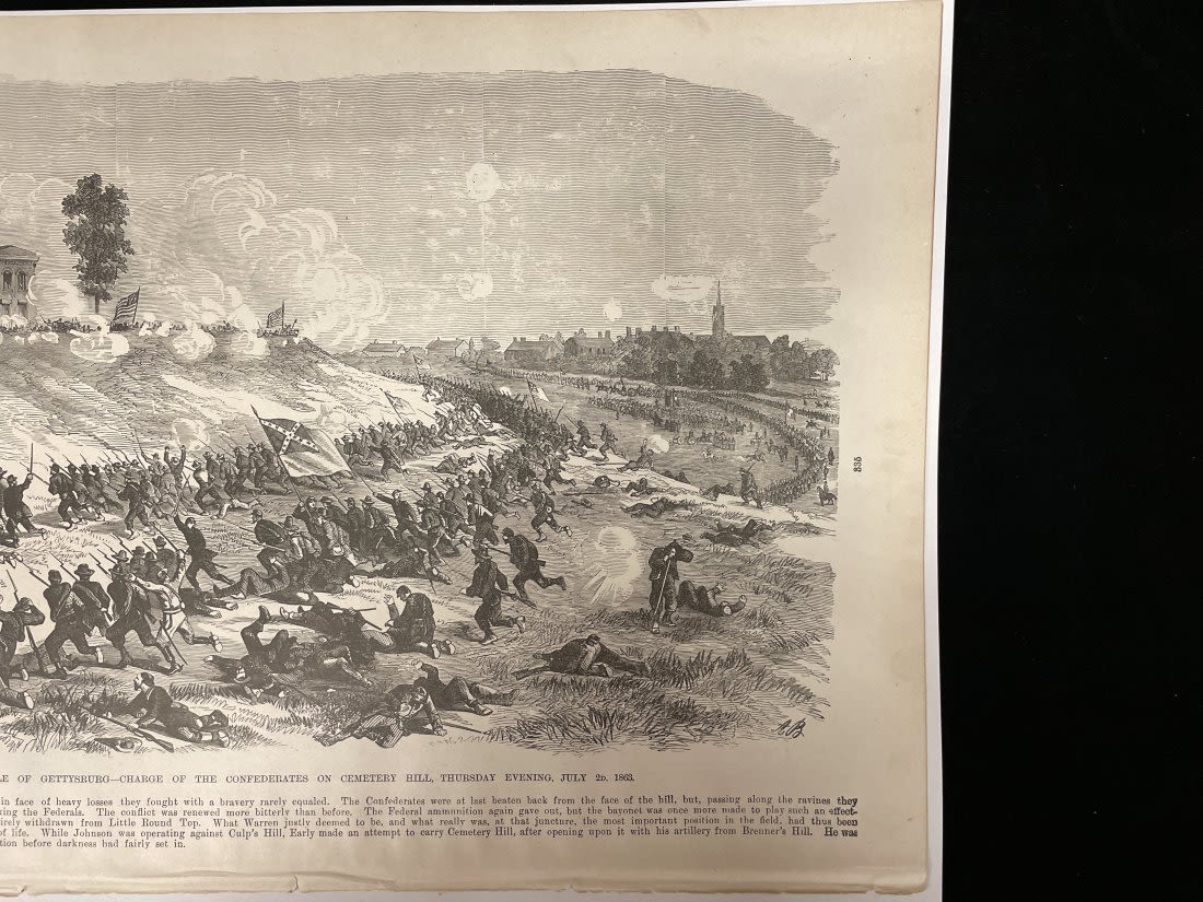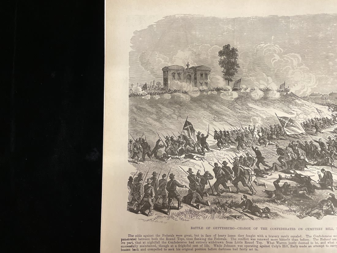 Two-Sided Picture Page "Plantation Police" and "Battle of Gettysburg" -15" x 11 1/2"