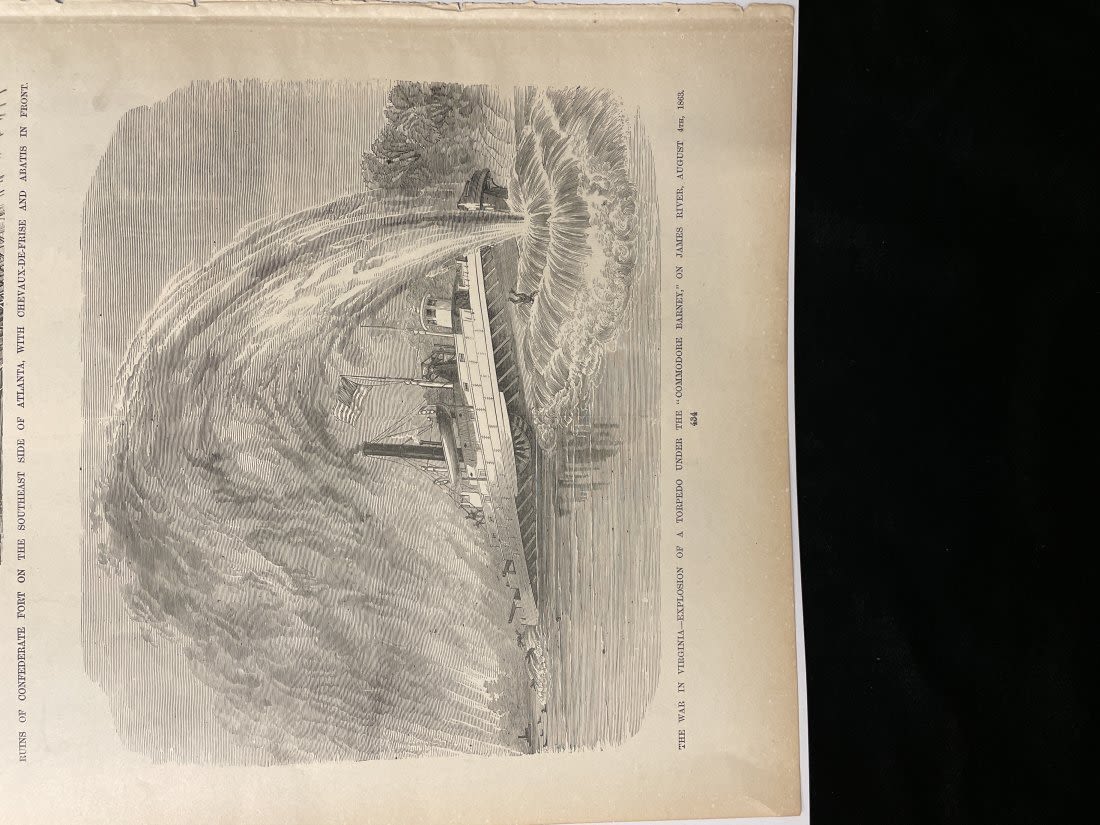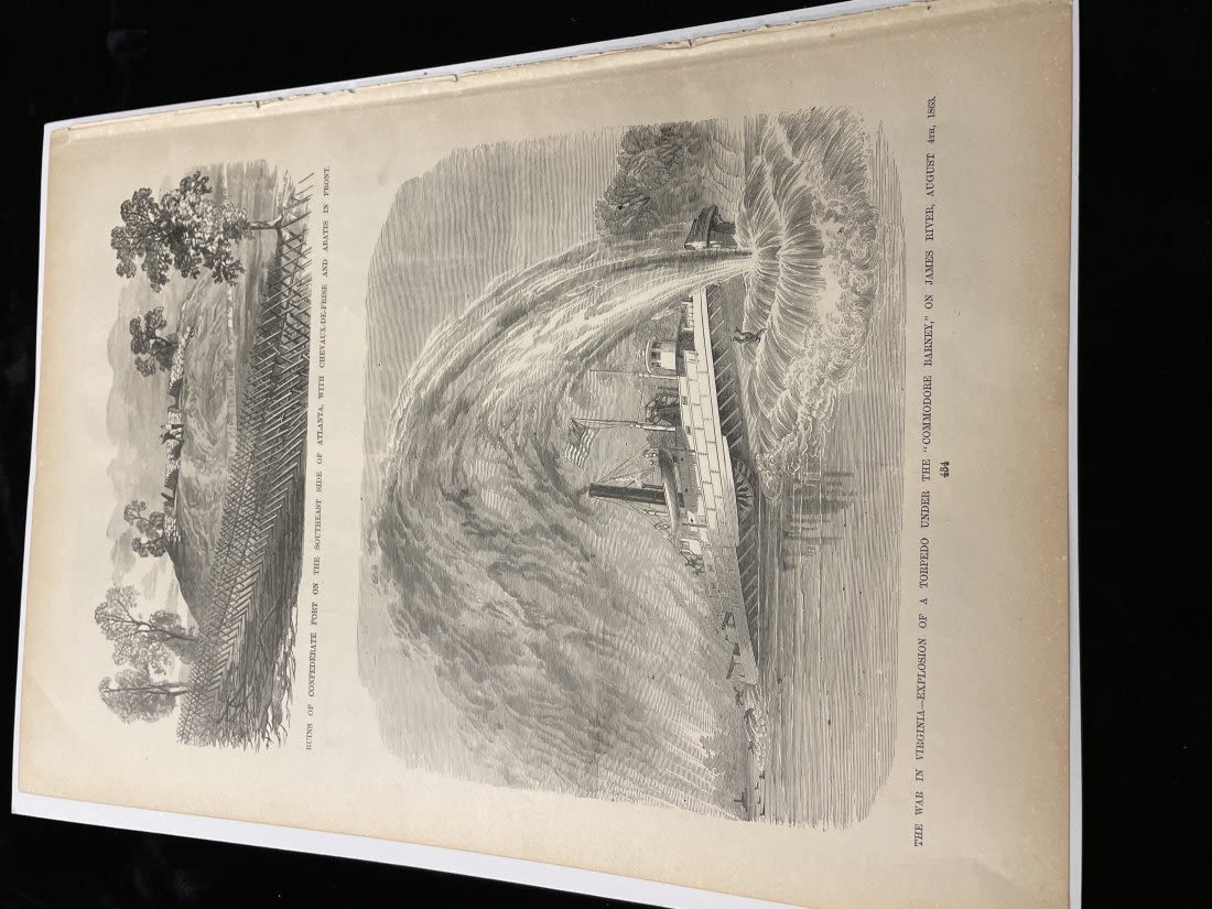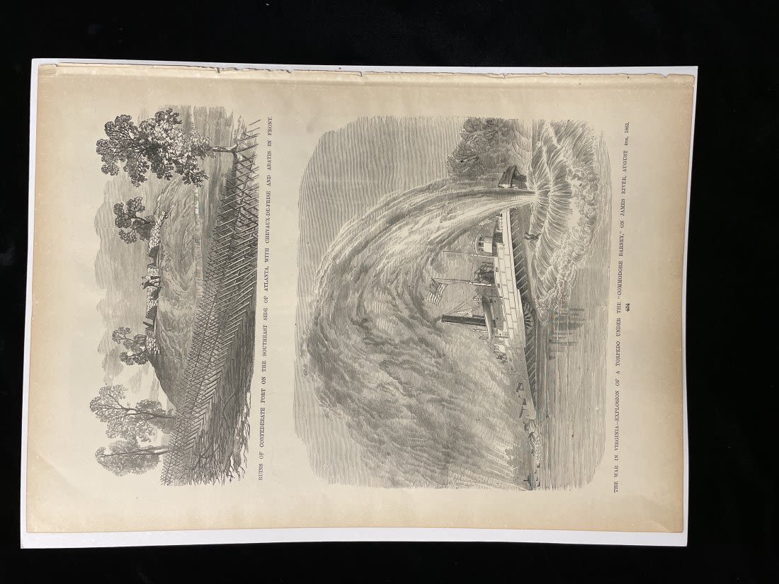 Two-Sided Picture Page "Siege of Atlanta" and "Torpedo of Commodore James Varney" -15" x 11 1/2"