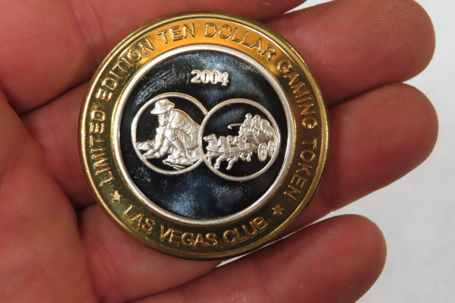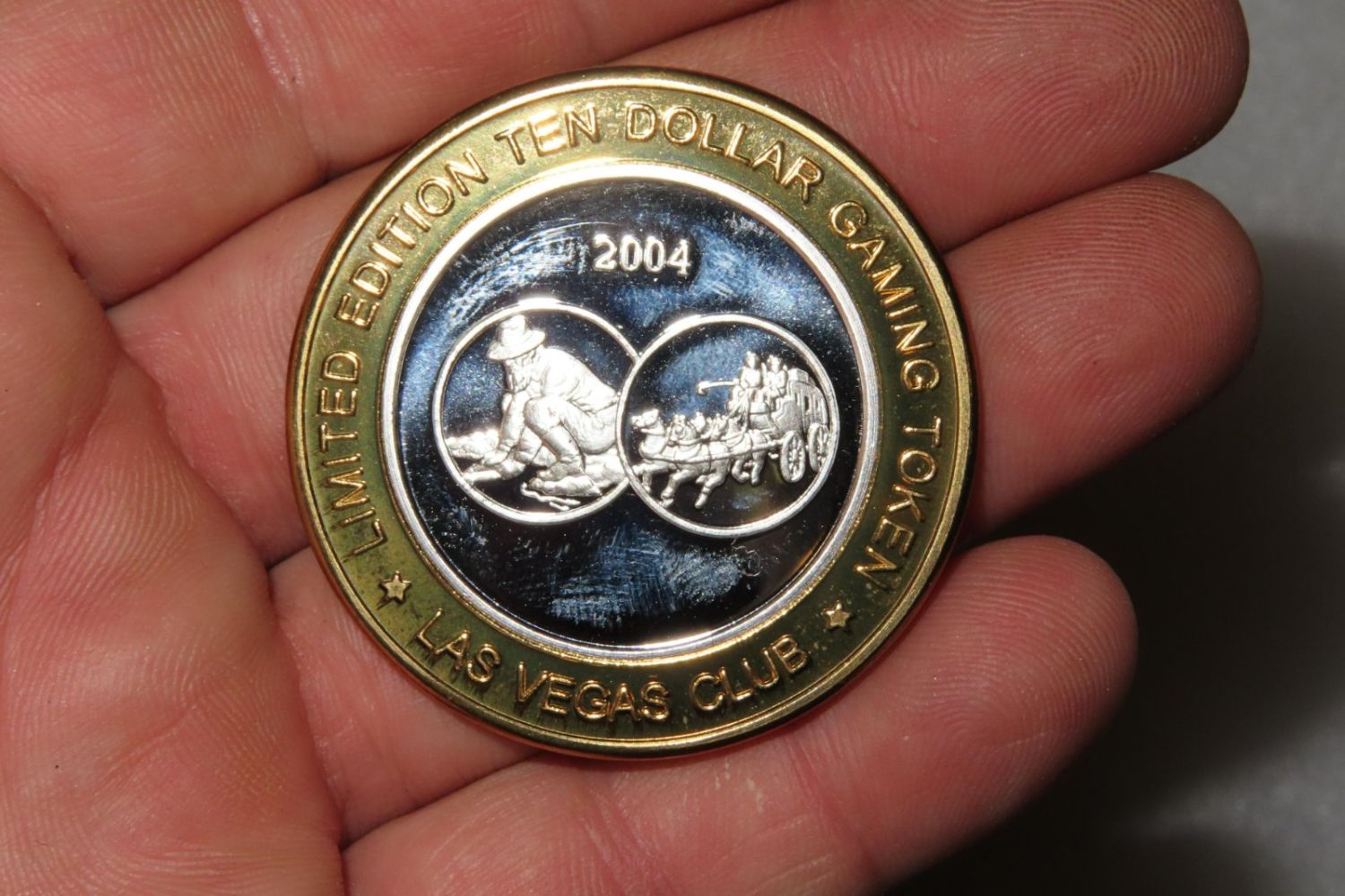 2004 Silver Gold Rush Las Vegas A Barrick Gaming Co. Las Vegas Club .999 Fine Silver $10 Ten Dollar Gaming Casino Token
