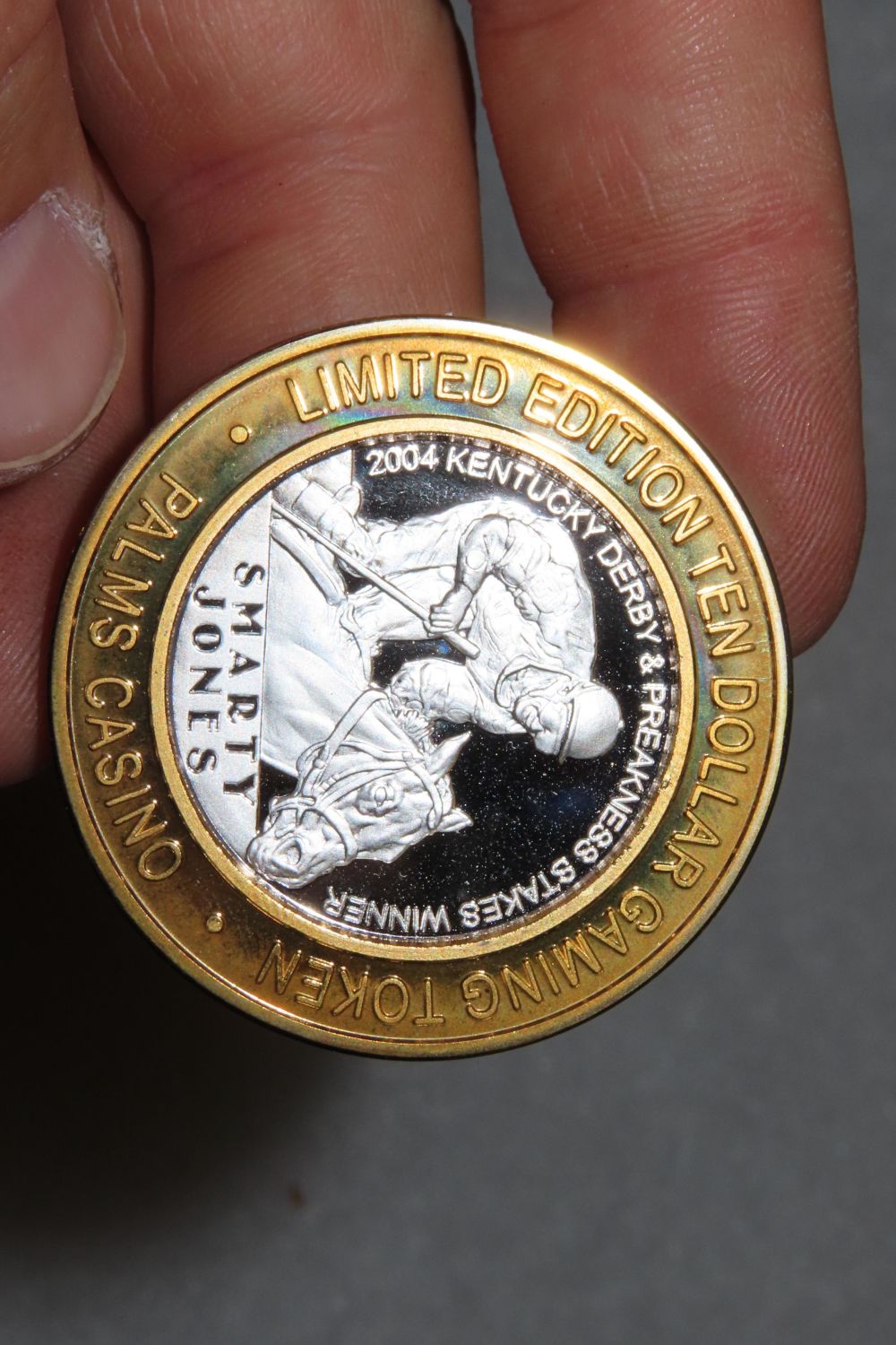 Smarty Jones Kentucky Derby Preakness Stakes Winner Palms Casino Las Vegas, NV .999 Fine Silver $10 Ten Dollar Gaming Casino Token