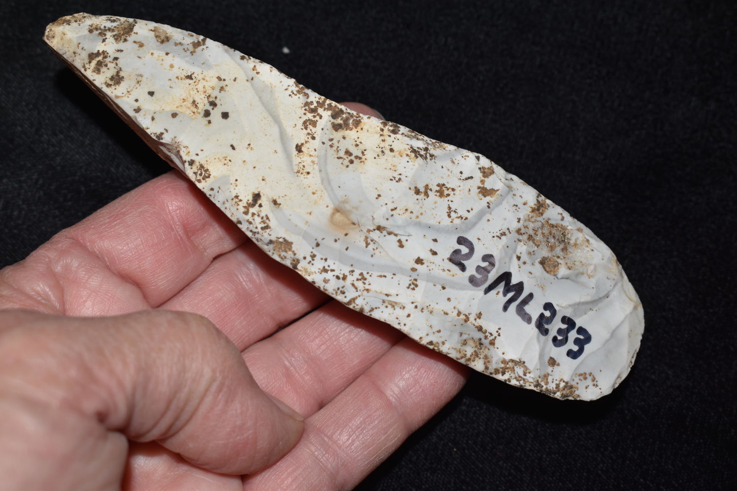 5″ Flint Celt found in Miller County Missouri on the Miller Site (23ML233) by Alan D. Miller. Authentic Native American Arrowhead