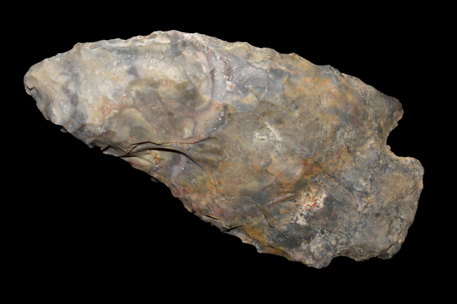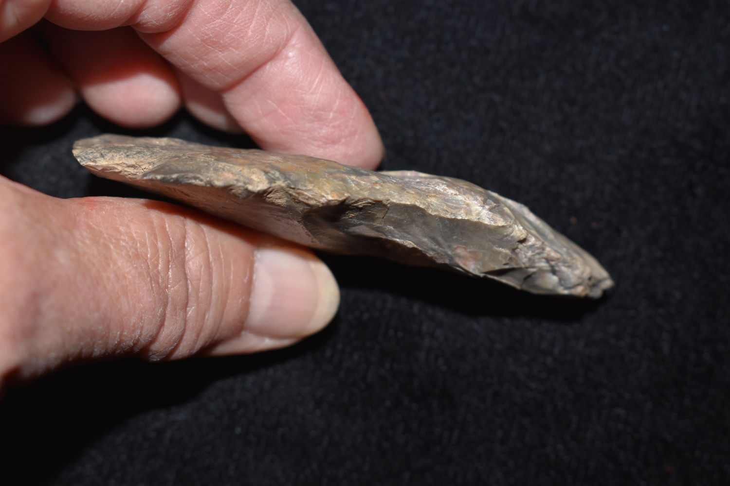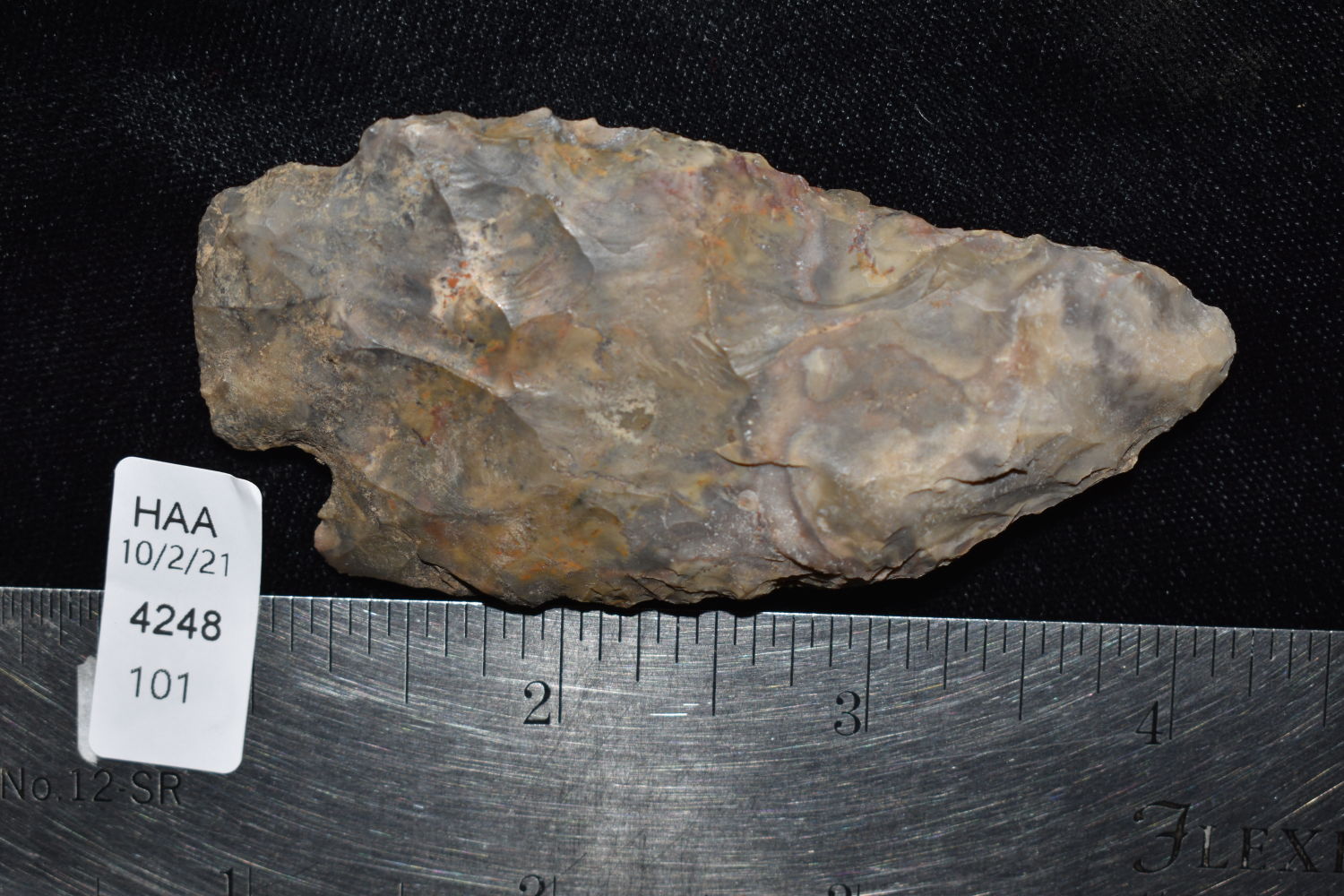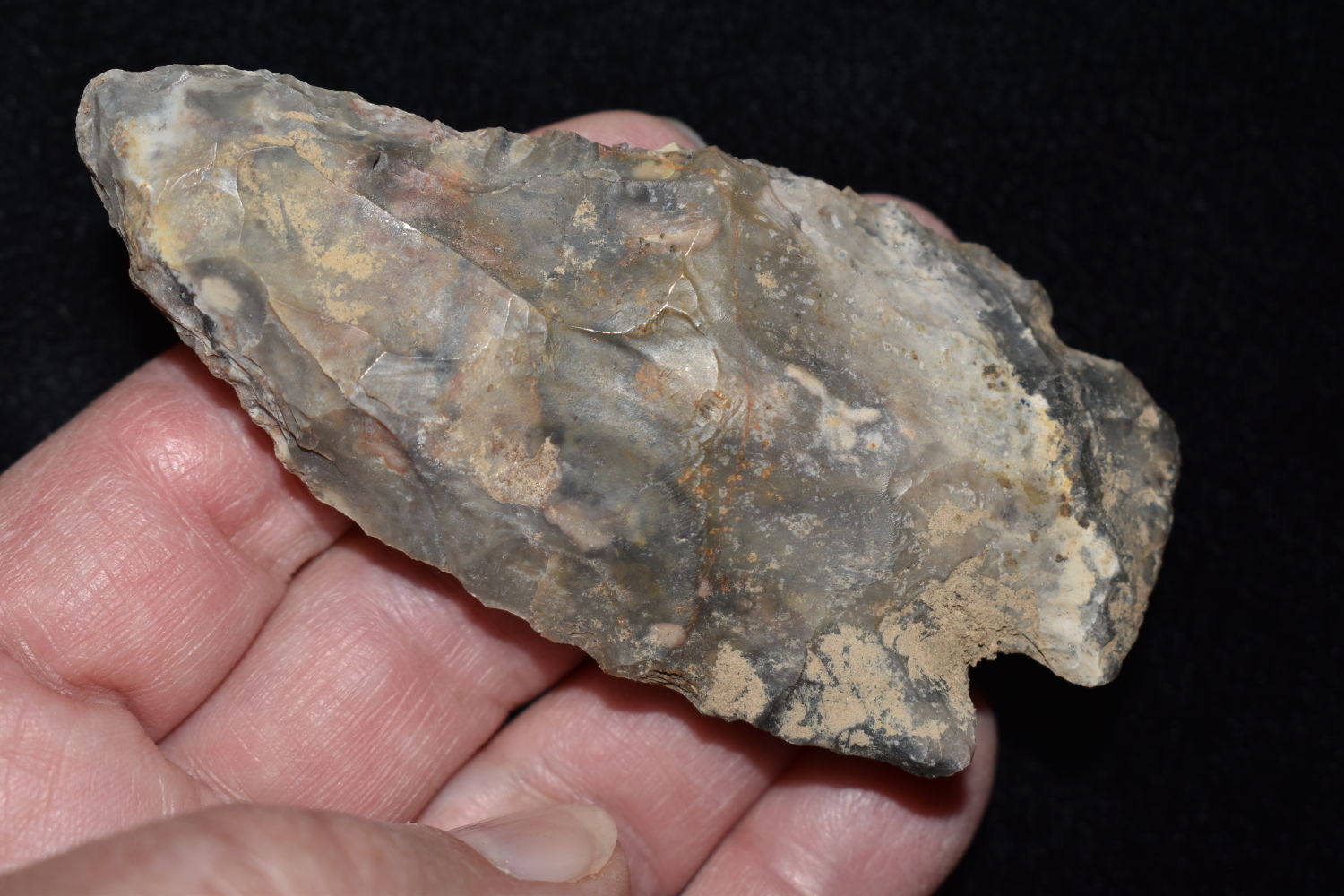 3 1/4″ Etley found in Miller County Missouri on the Miller Site (23ML233) by Alan D. Miller. Authentic Native American Arrowhead