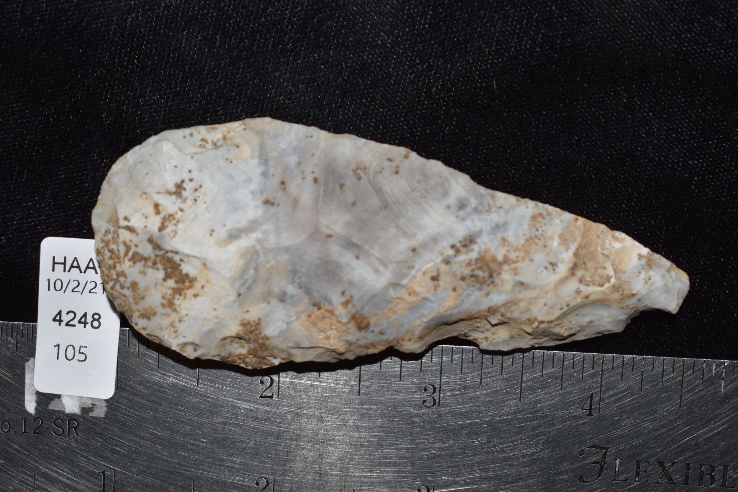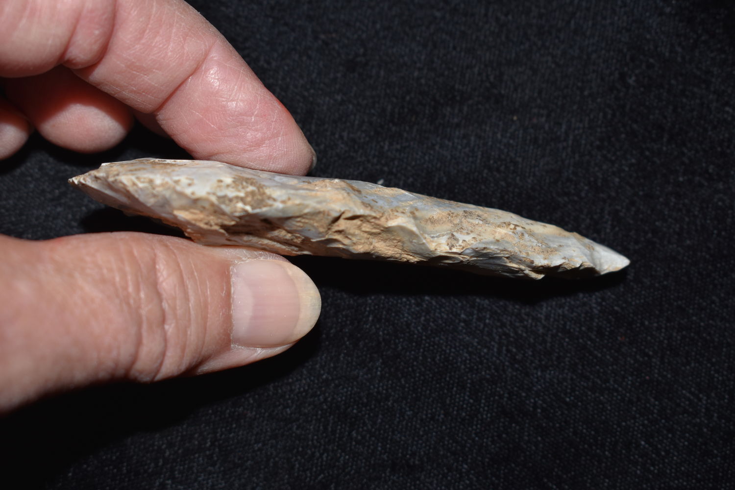 3 5/8″ Archaic Blade, found in Miller County Missouri on the Miller Site (23ML233) by Alan D. Miller. Authentic Native American Arrowhead