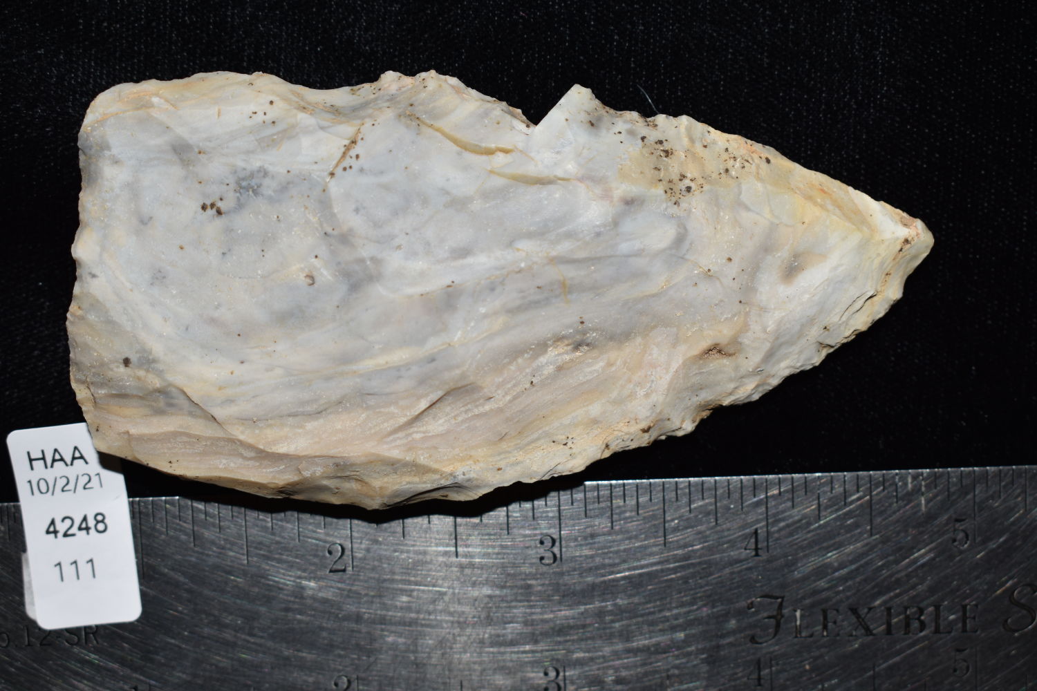 4″ Archaic Blade found in Miller County Missouri on the Miller Site (23ML233) by Alan D. Miller. Authentic Native American Arrowhead