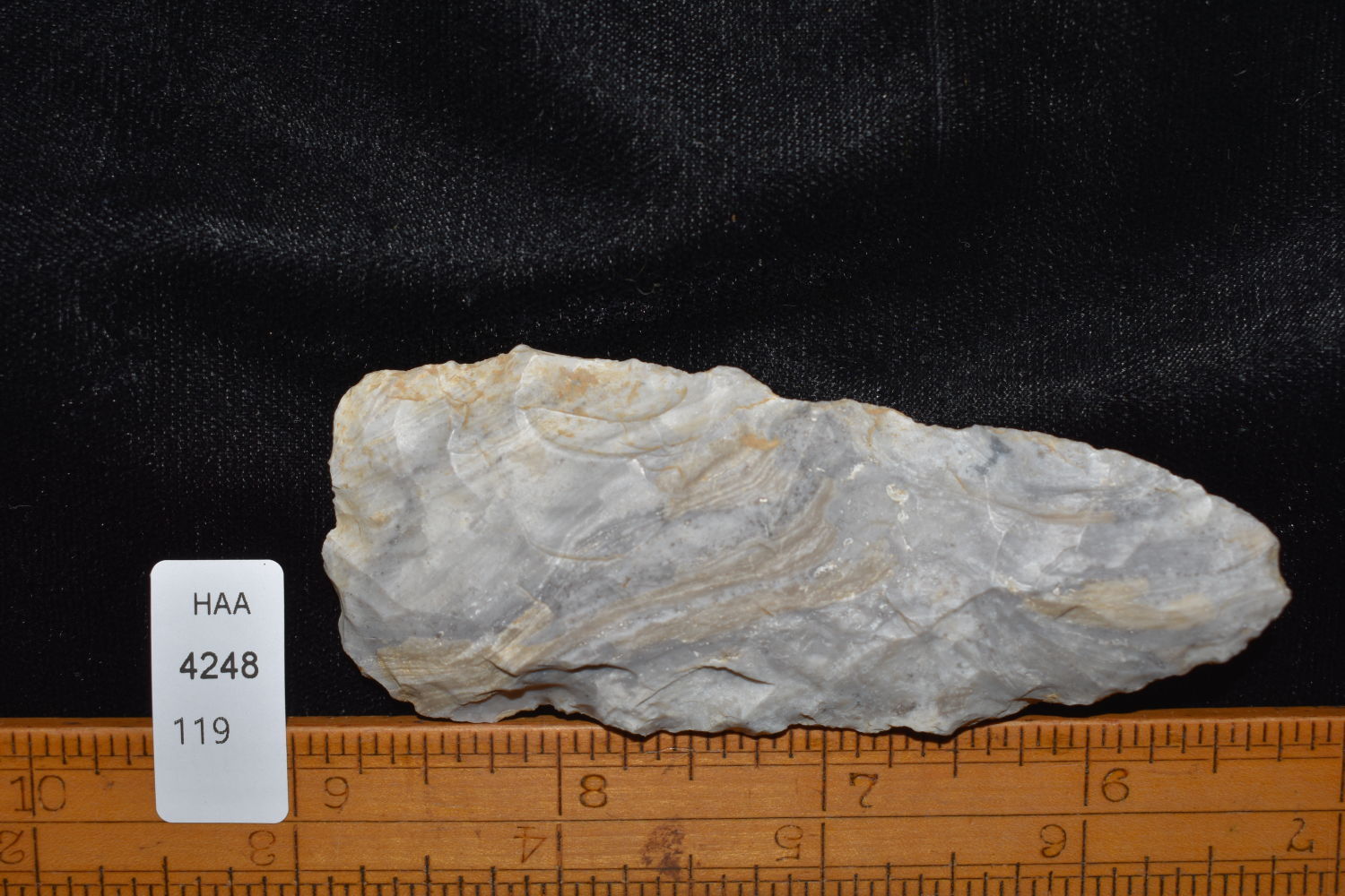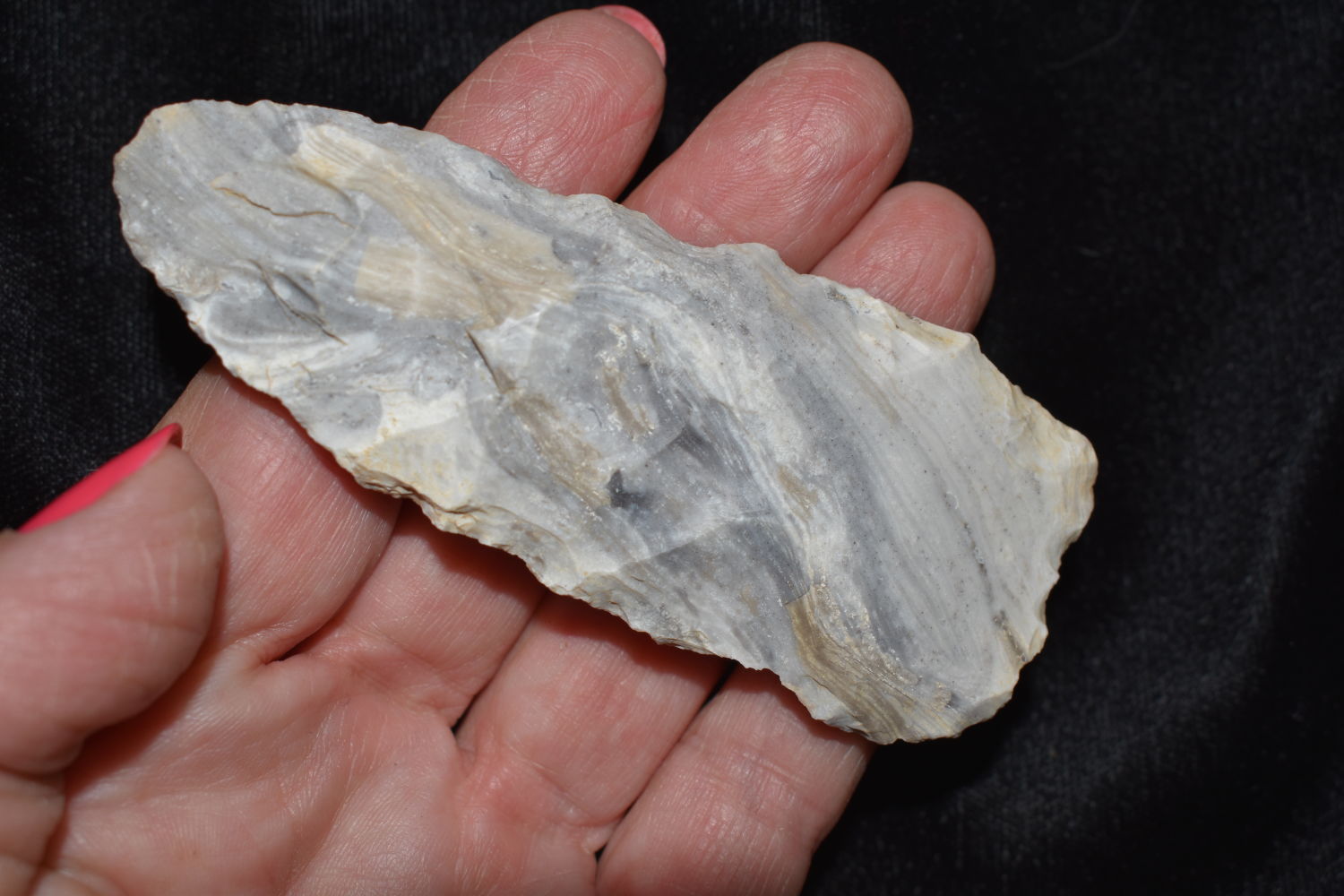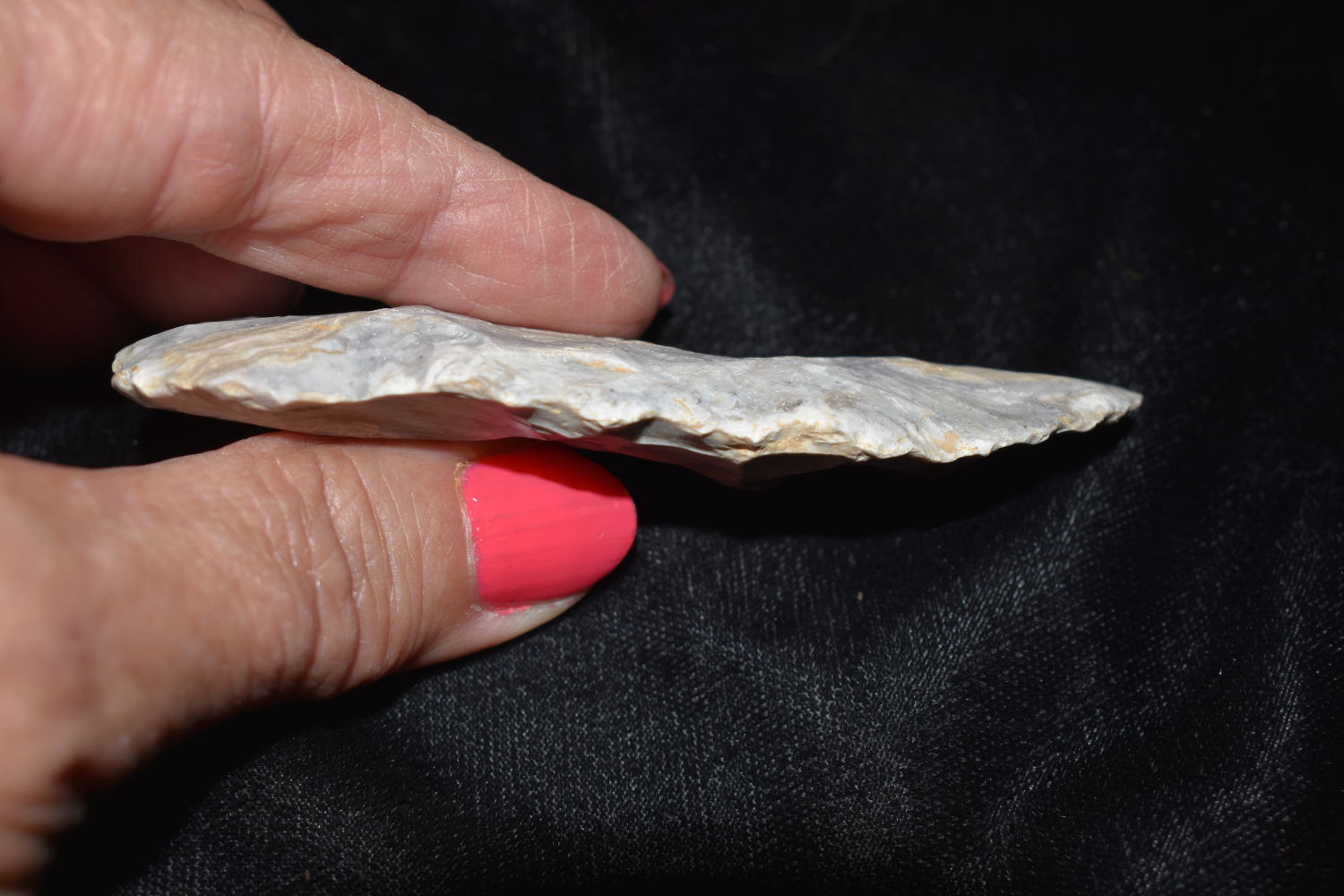 3 5/8″ Archaic Blade found in Miller County Missouri on the Miller Site (23ML233) by Alan D. Miller. Authentic Native American Arrowhead