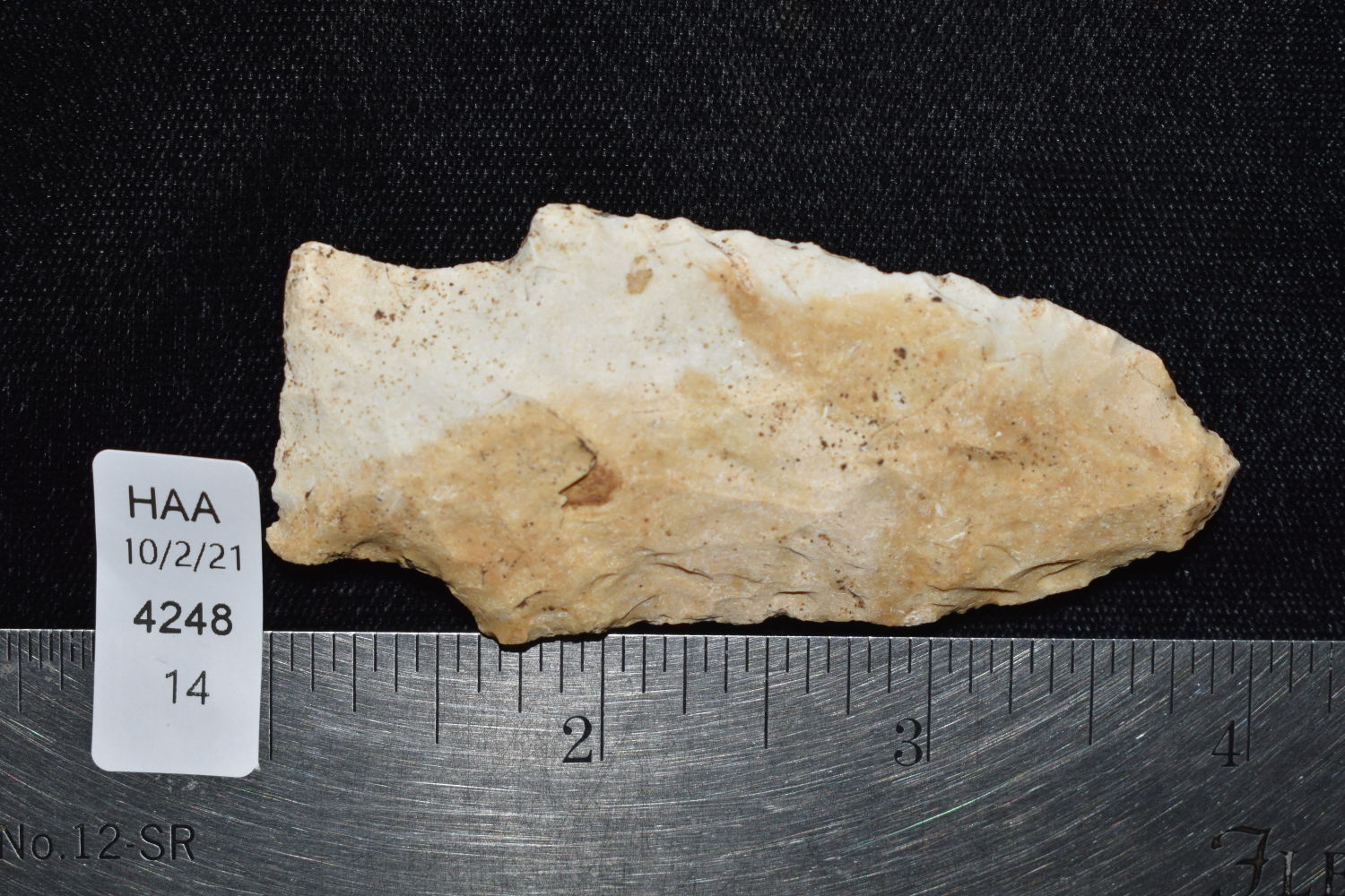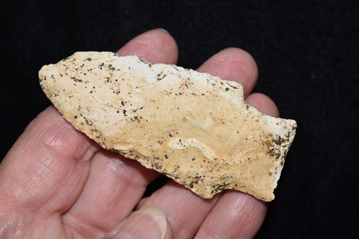 2 7/8″ Etley, found in Miller County Missouri on the Miller Site (23ML233) by Alan D. Miller. Authentic Native American Arrowhead