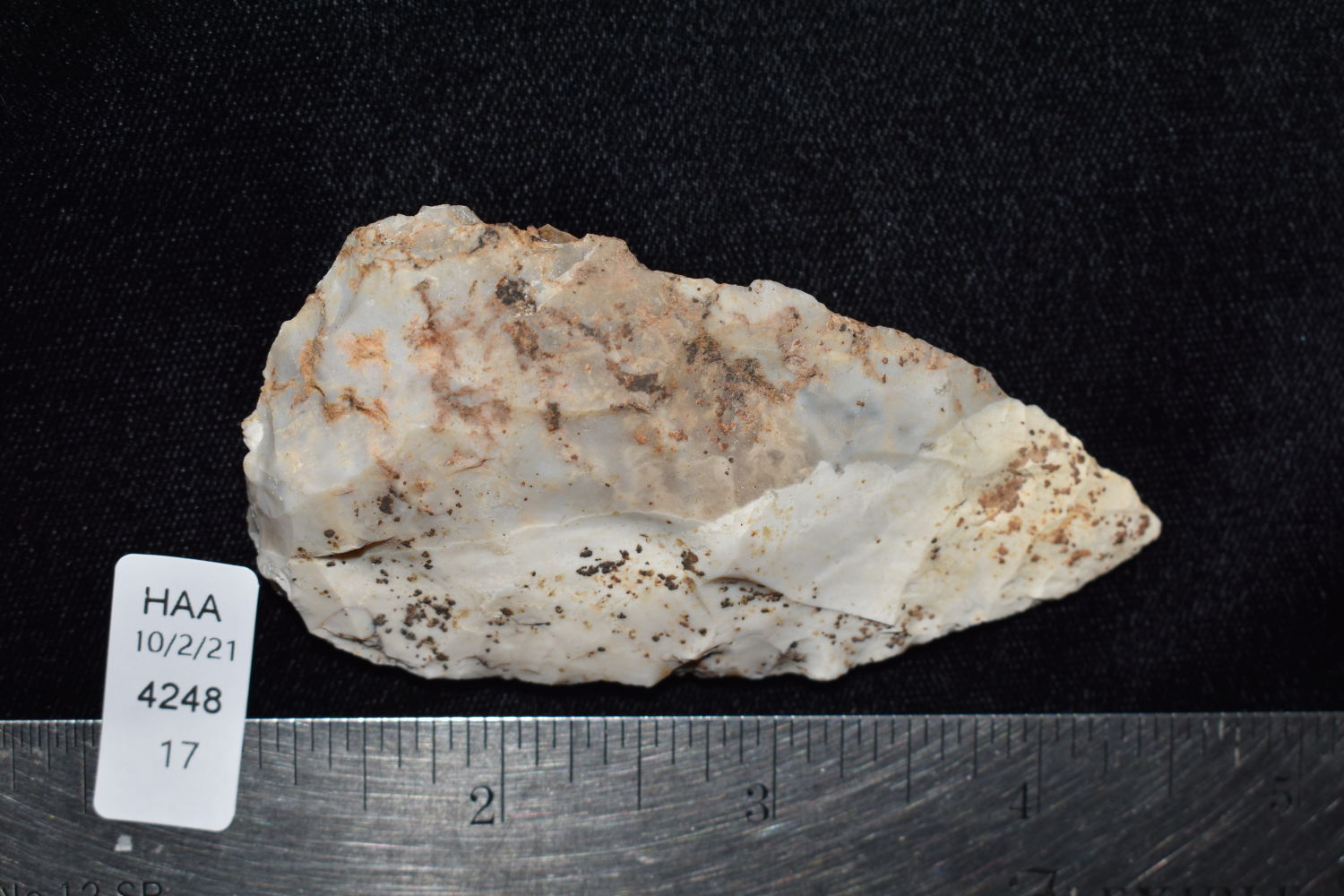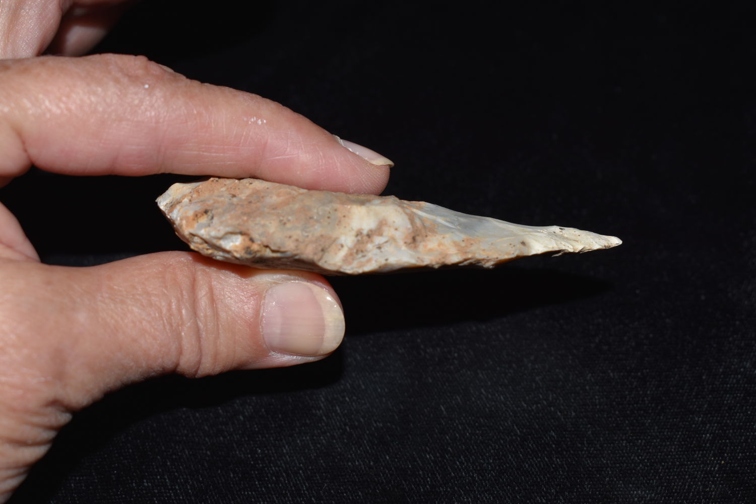 3 3/8″ Archaic Blade, found in Miller County Missouri on the Miller Site (23ML233) by Alan D. Miller. Authentic Native American Arrowhead