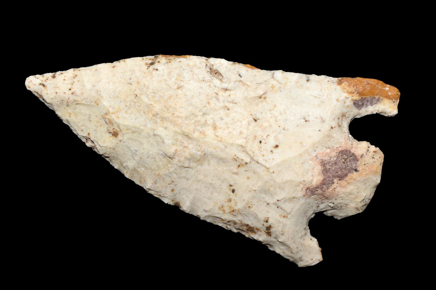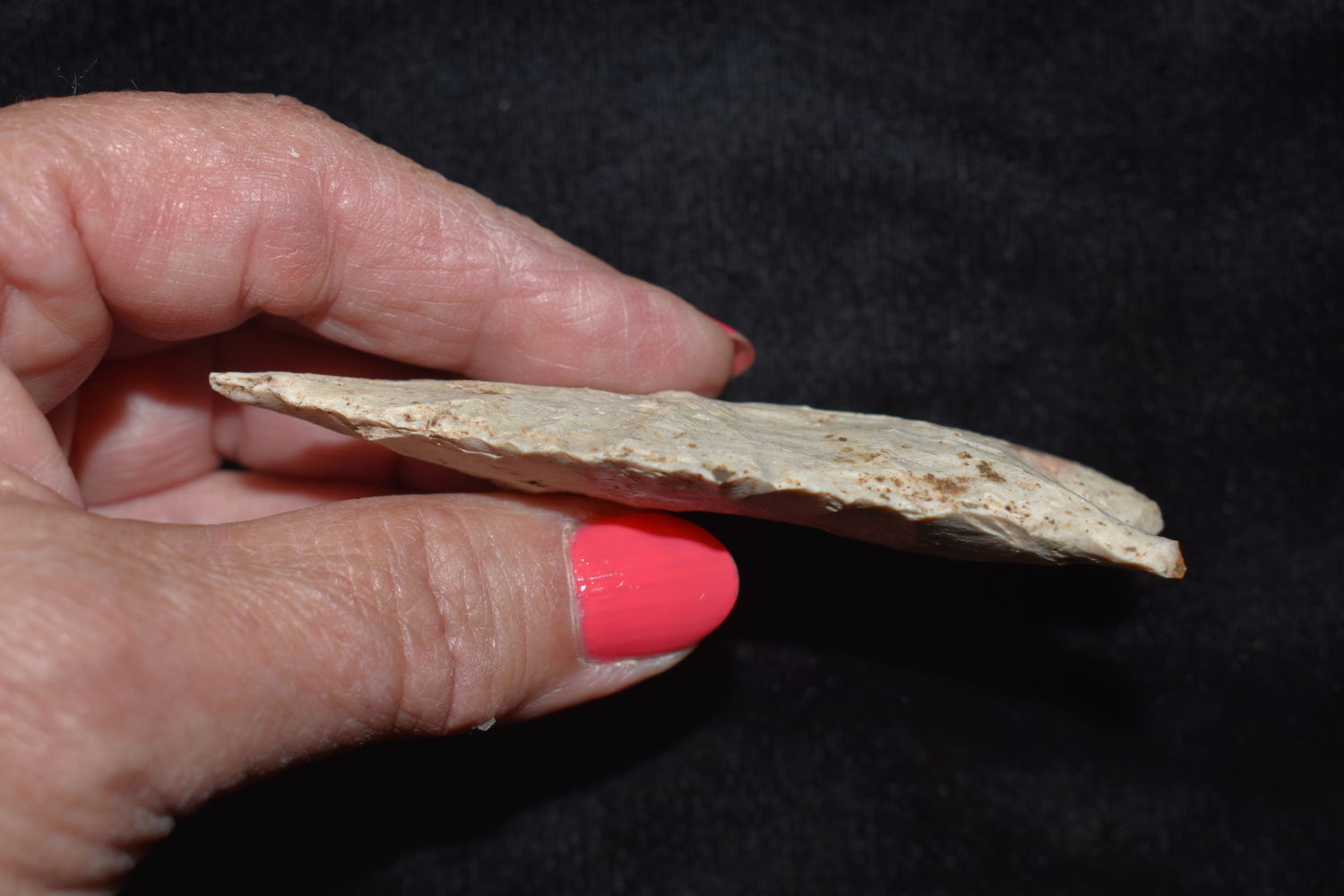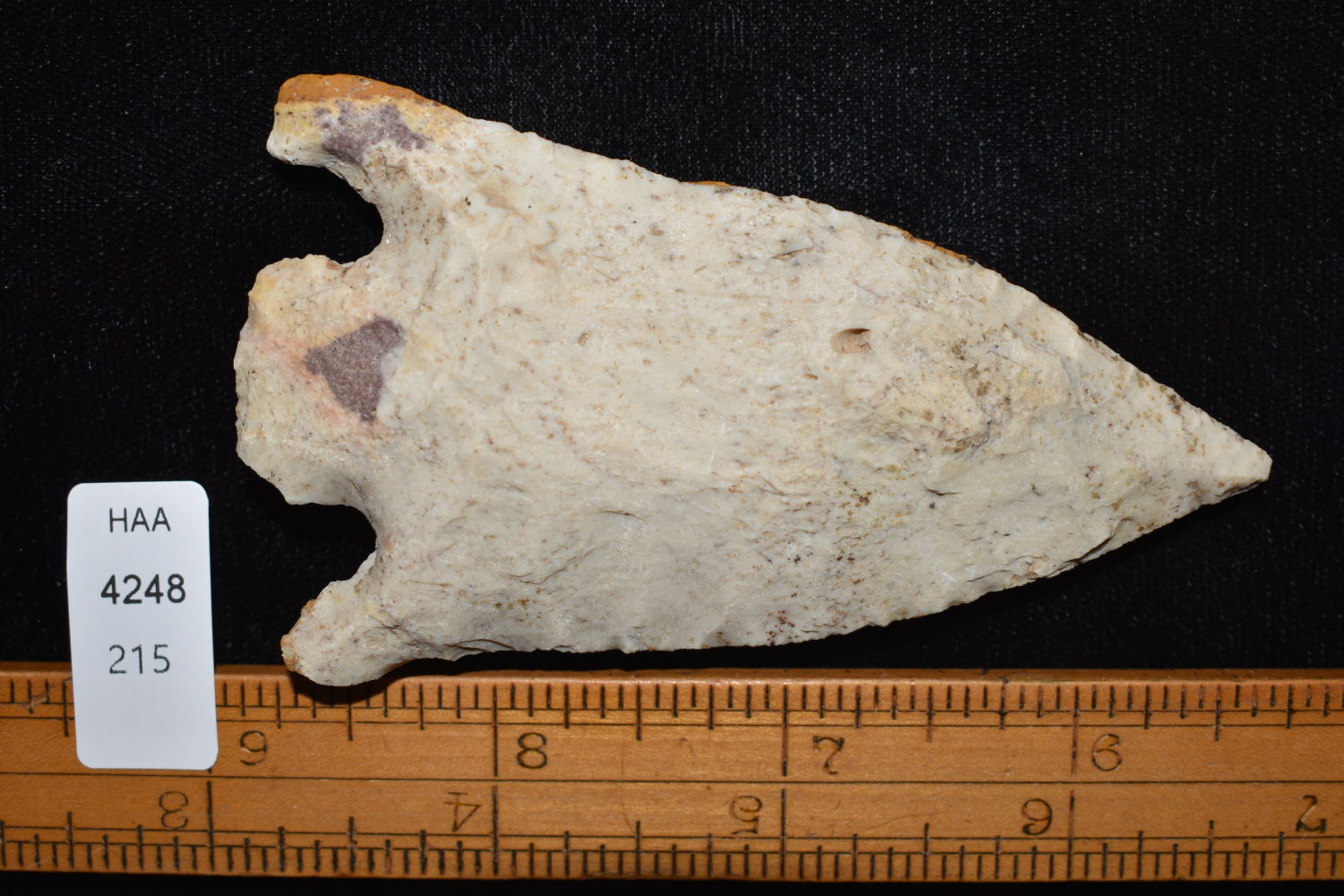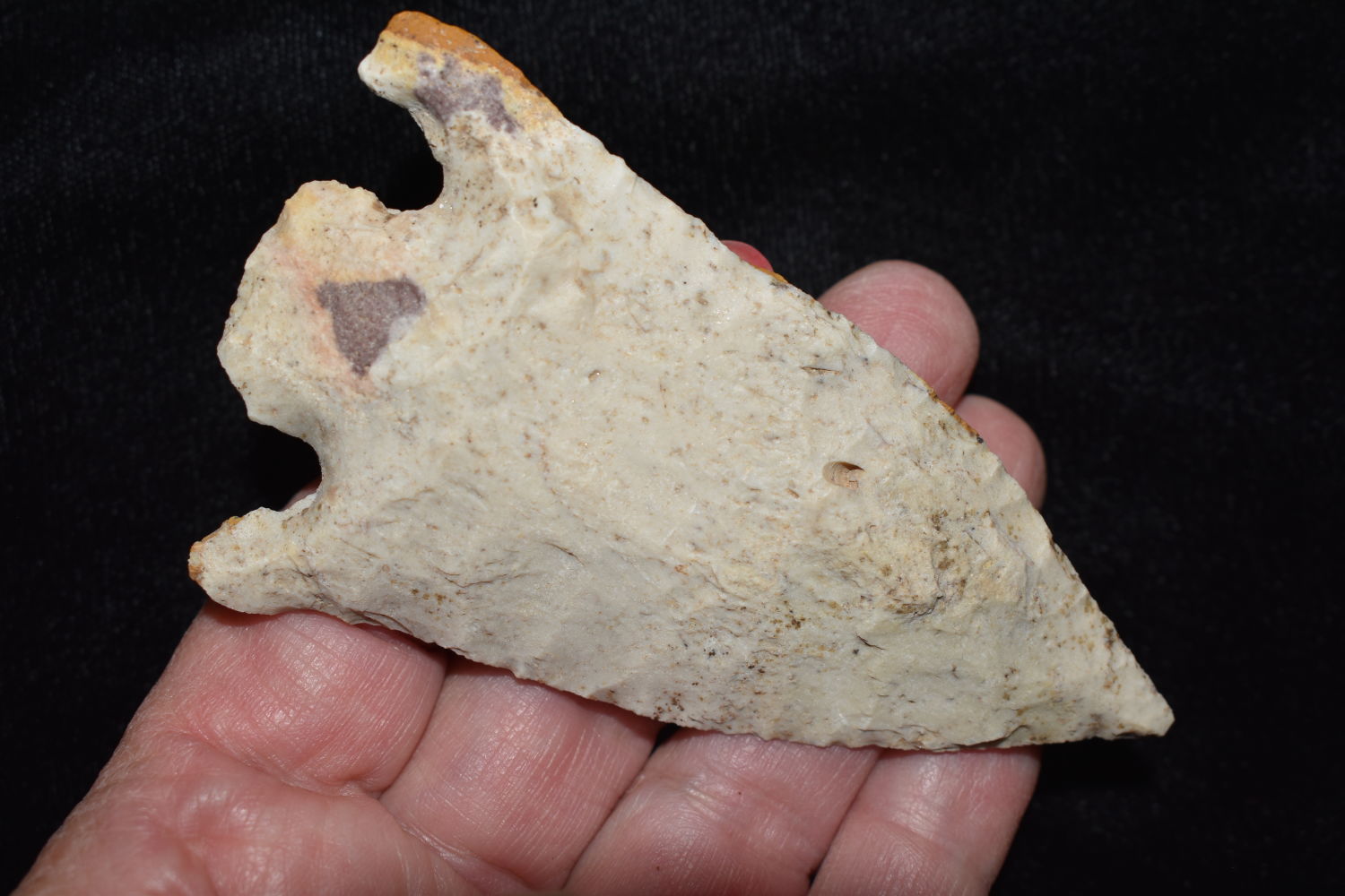 3 1/2″ Mehlville, found in Miller County Missouri on the Miller Site (23ML233) by Alan D. Miller. Authentic Native American Arrowhead