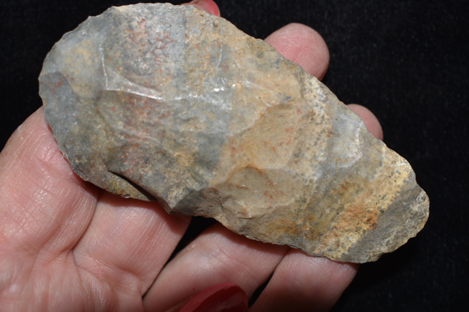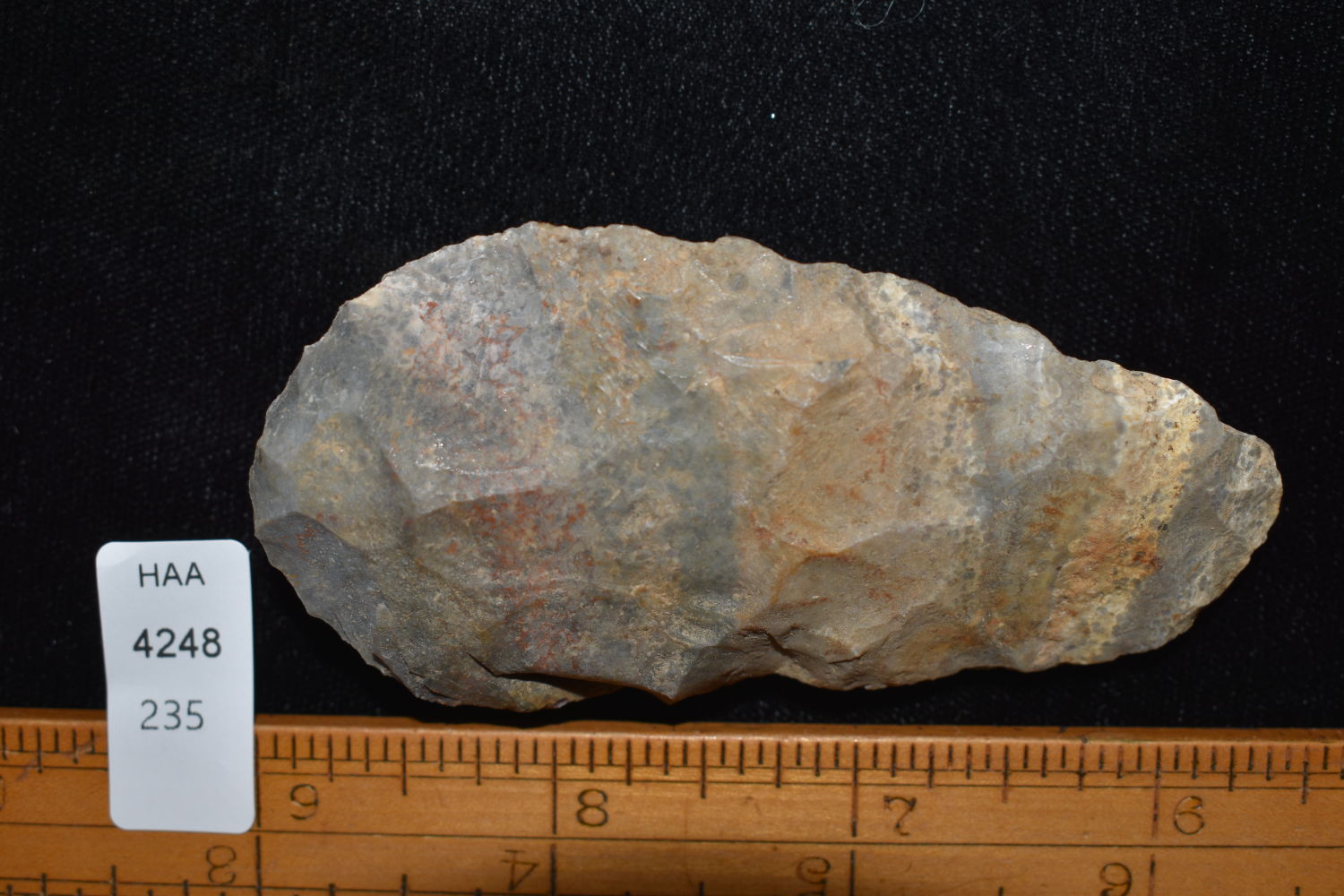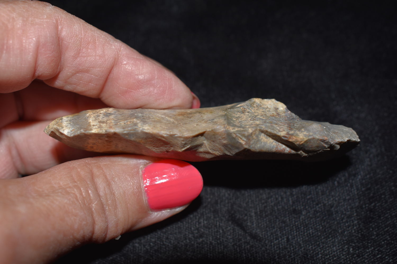 3 3/8″ Flint Celt found in Miller County Missouri on the Miller Site (23ML233) by Alan D. Miller. Authentic Native American Arrowhead