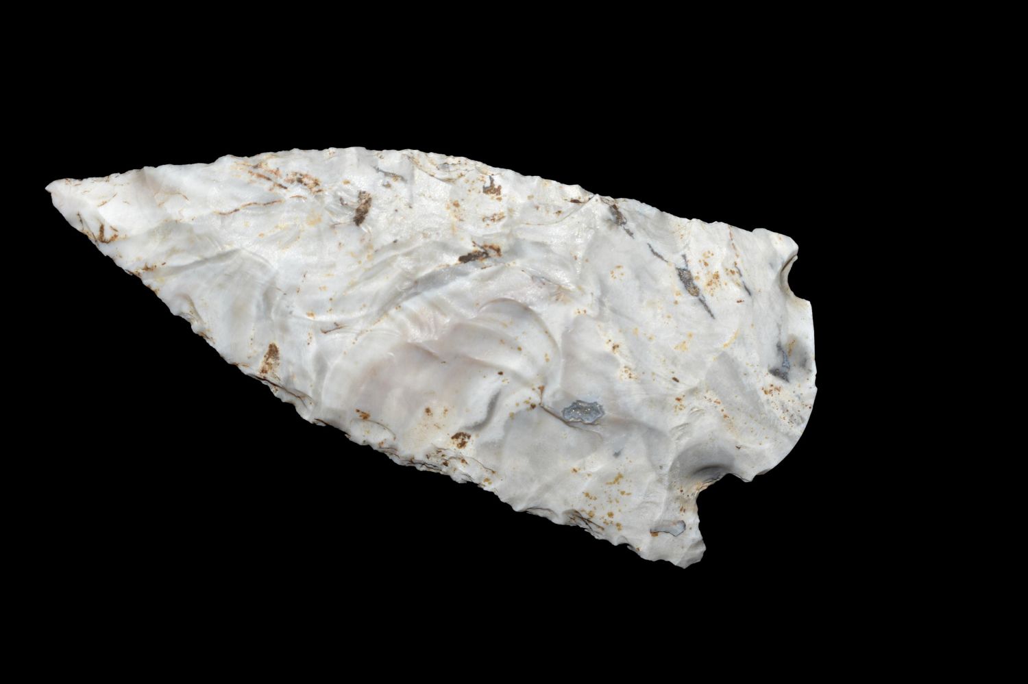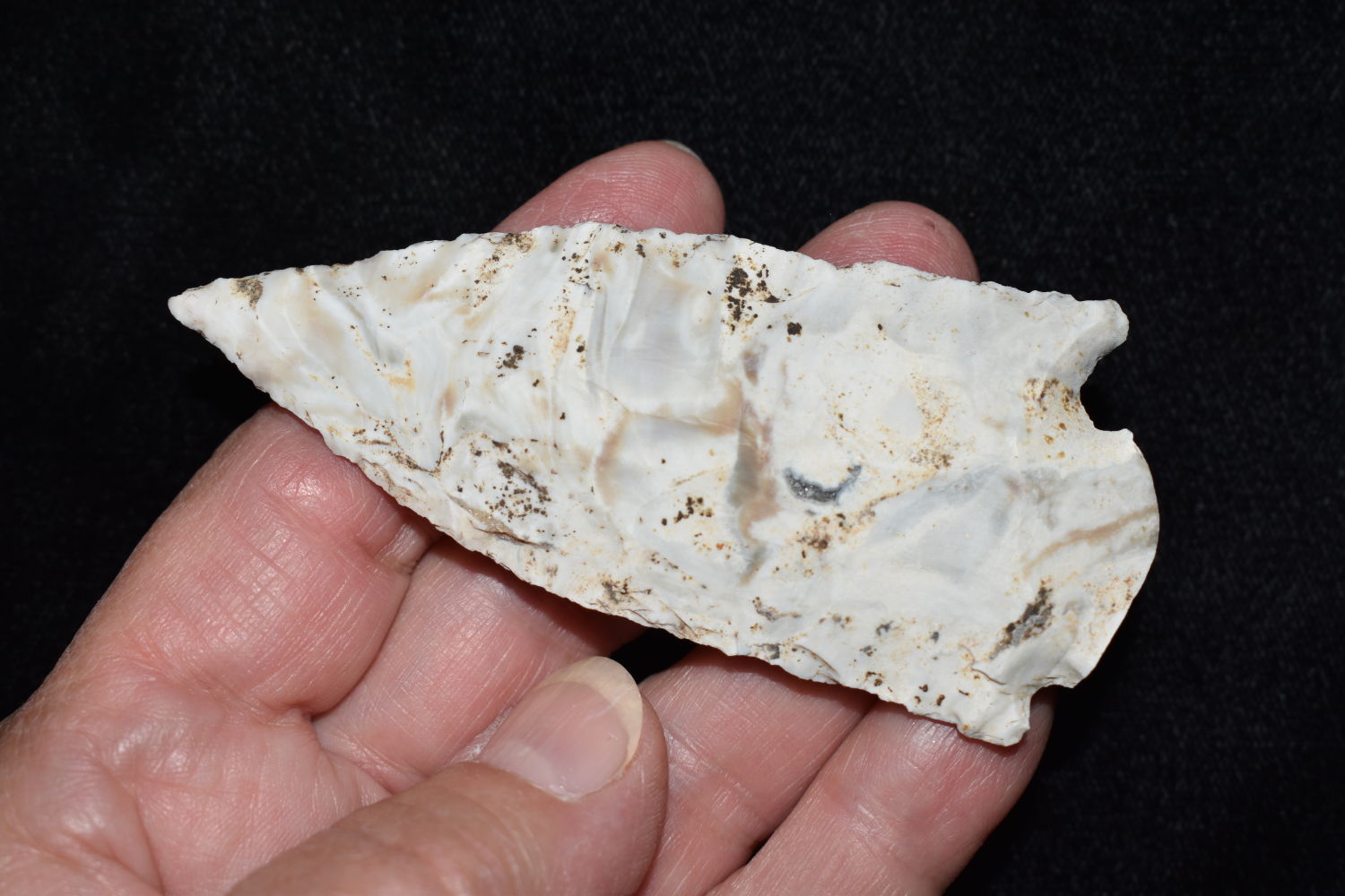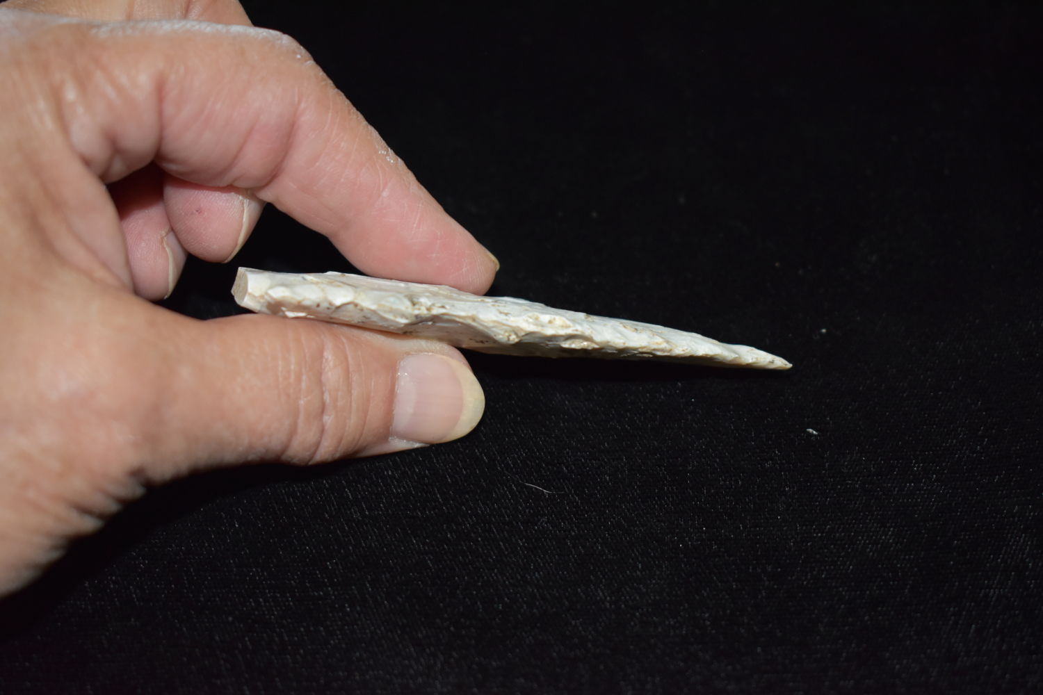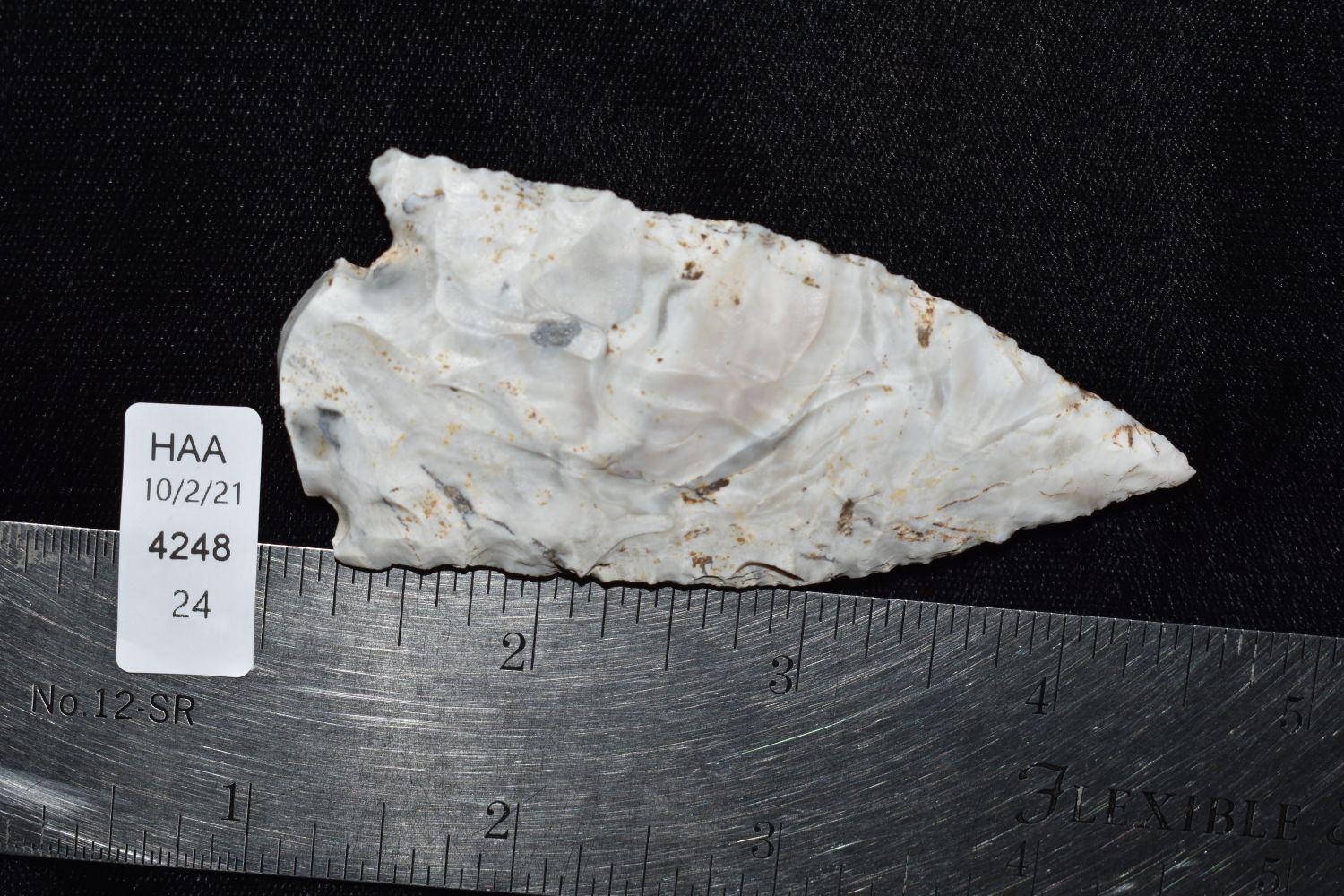 3 1/2″ Etley, found in Miller County Missouri on the Miller Site (23ML233) by Alan D. Miller. Authentic Native American Arrowhead