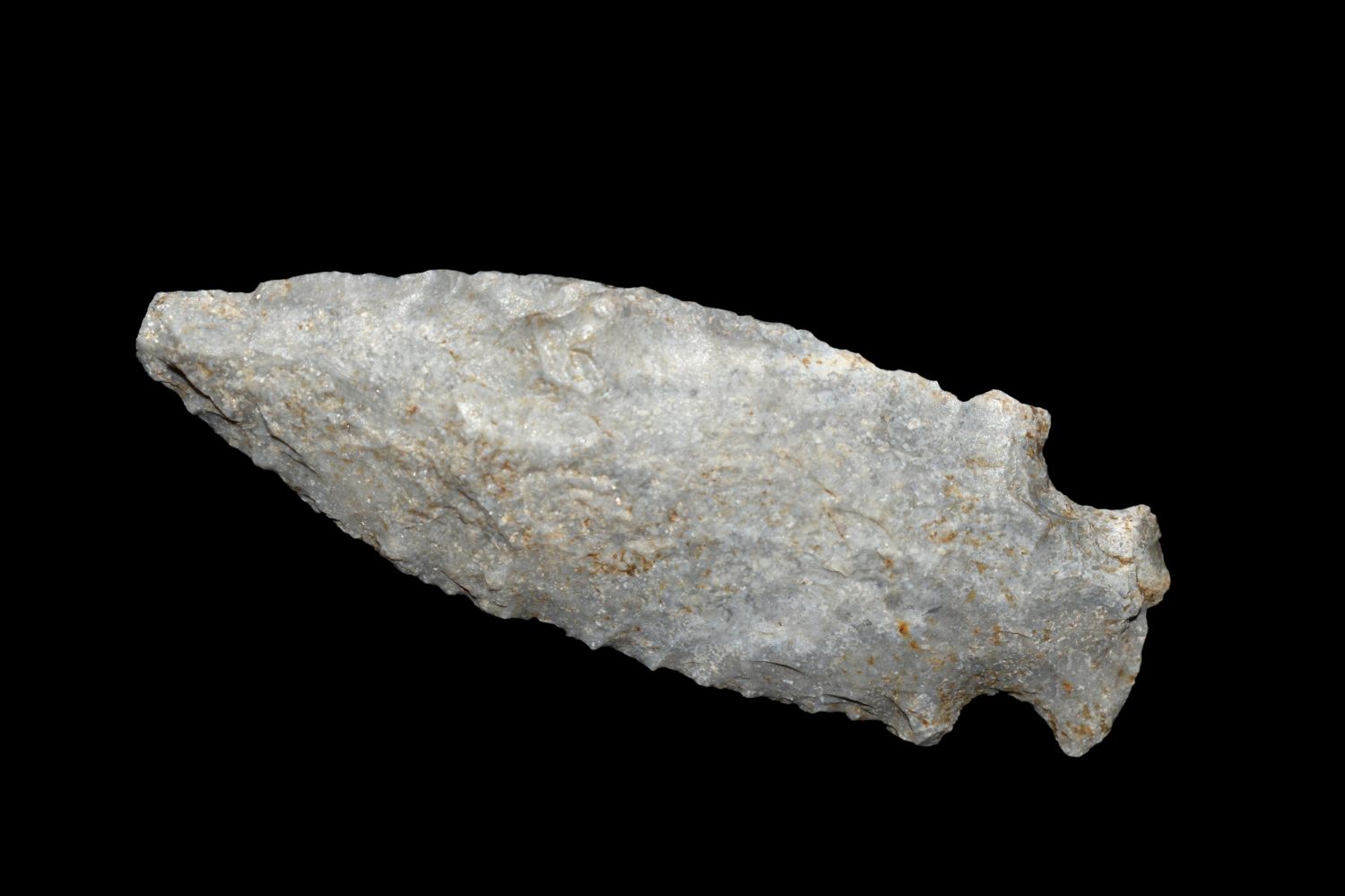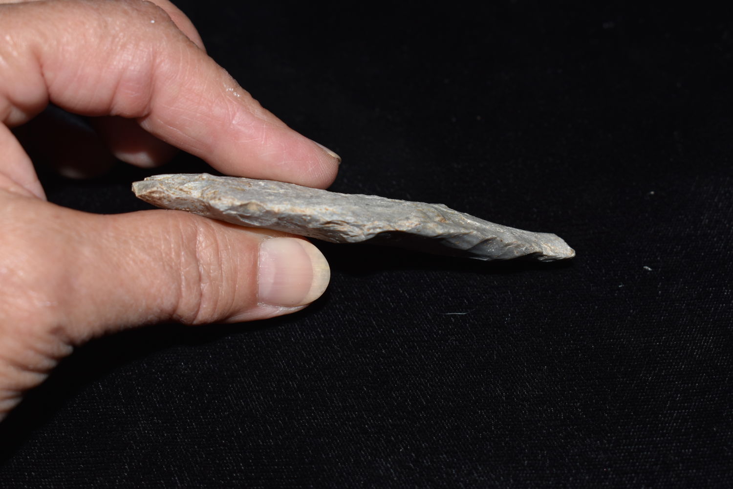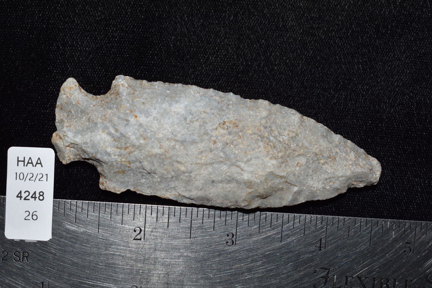 3 1/2″ Etley, found in Miller County Missouri on the Miller Site (23ML233) by Alan D. Miller. Authentic Native American Arrowhead